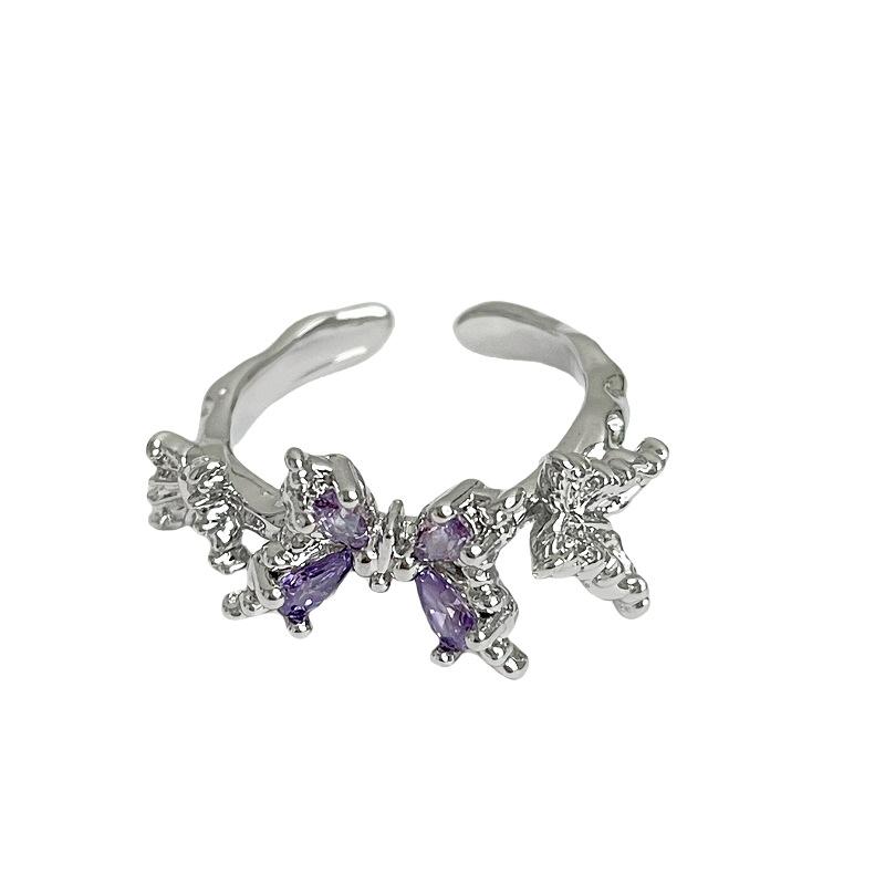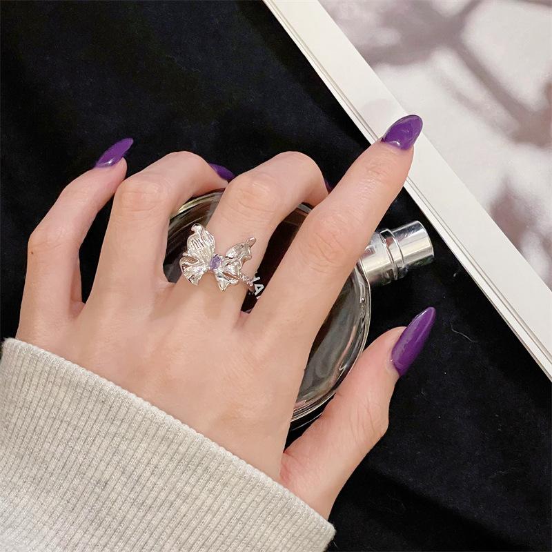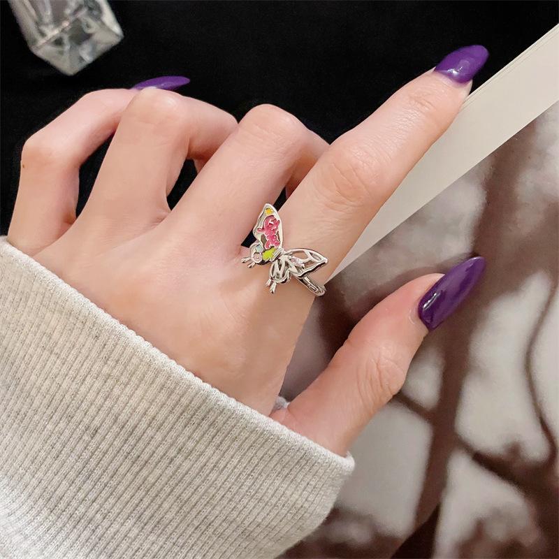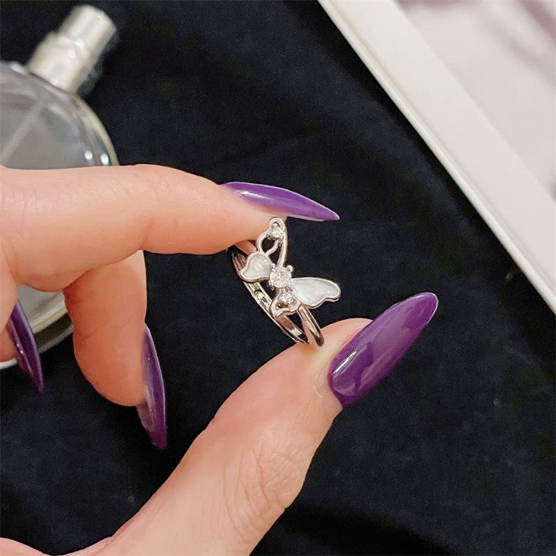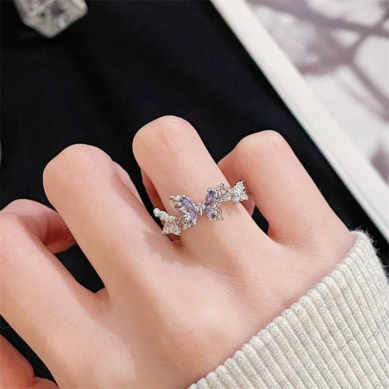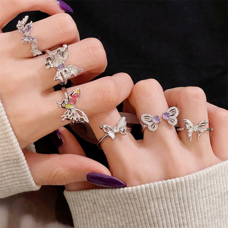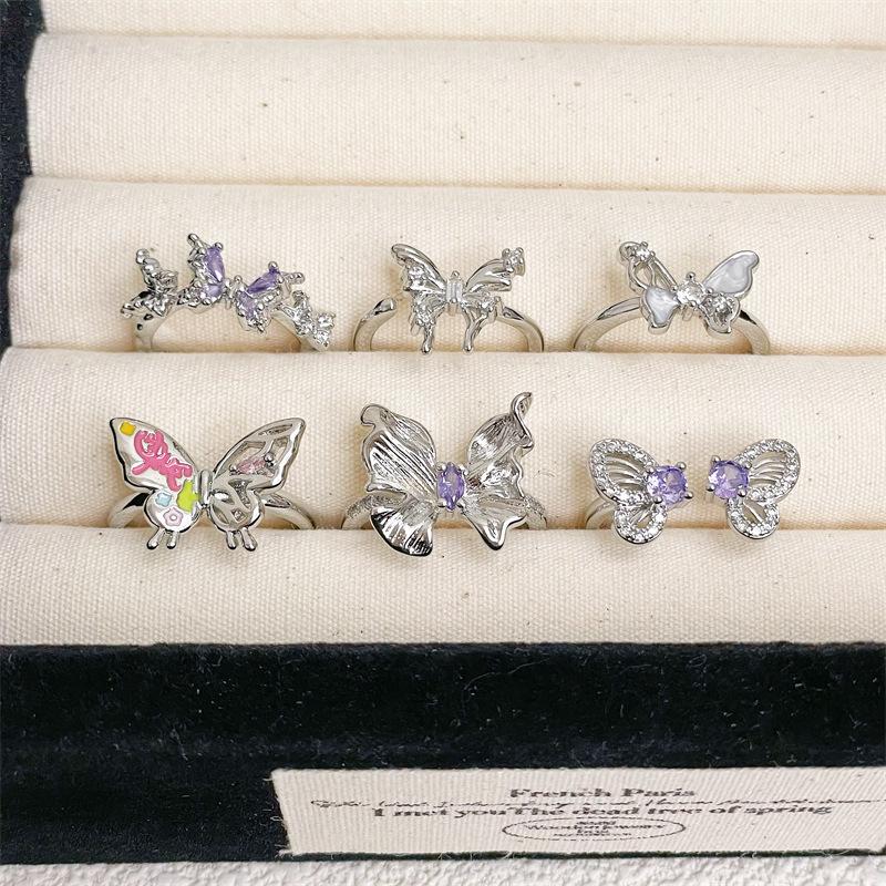 Nuevo Anillo Nicho Mariposa Zircón Apertura Ajustable Joyería Goteo de Aceite Lujo Ligero Moda Personalizada Accesorios con Sentido de Alta Gama