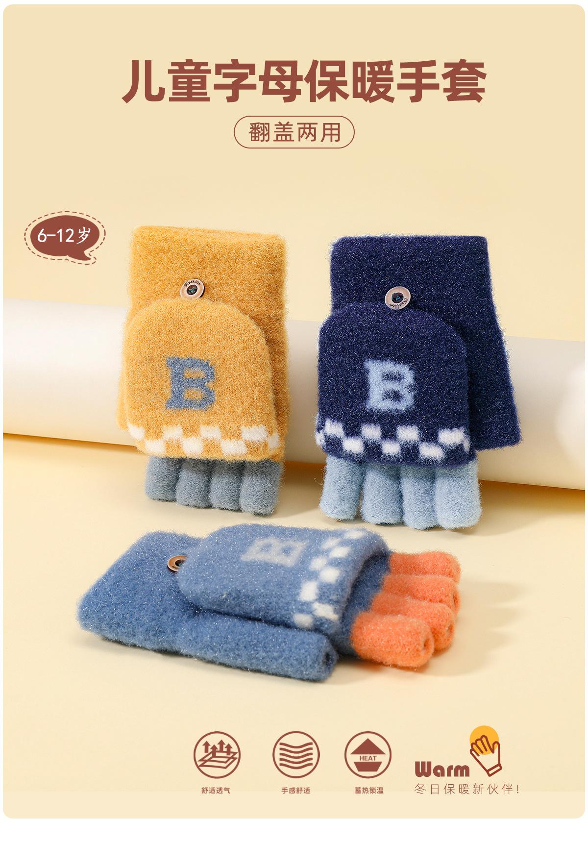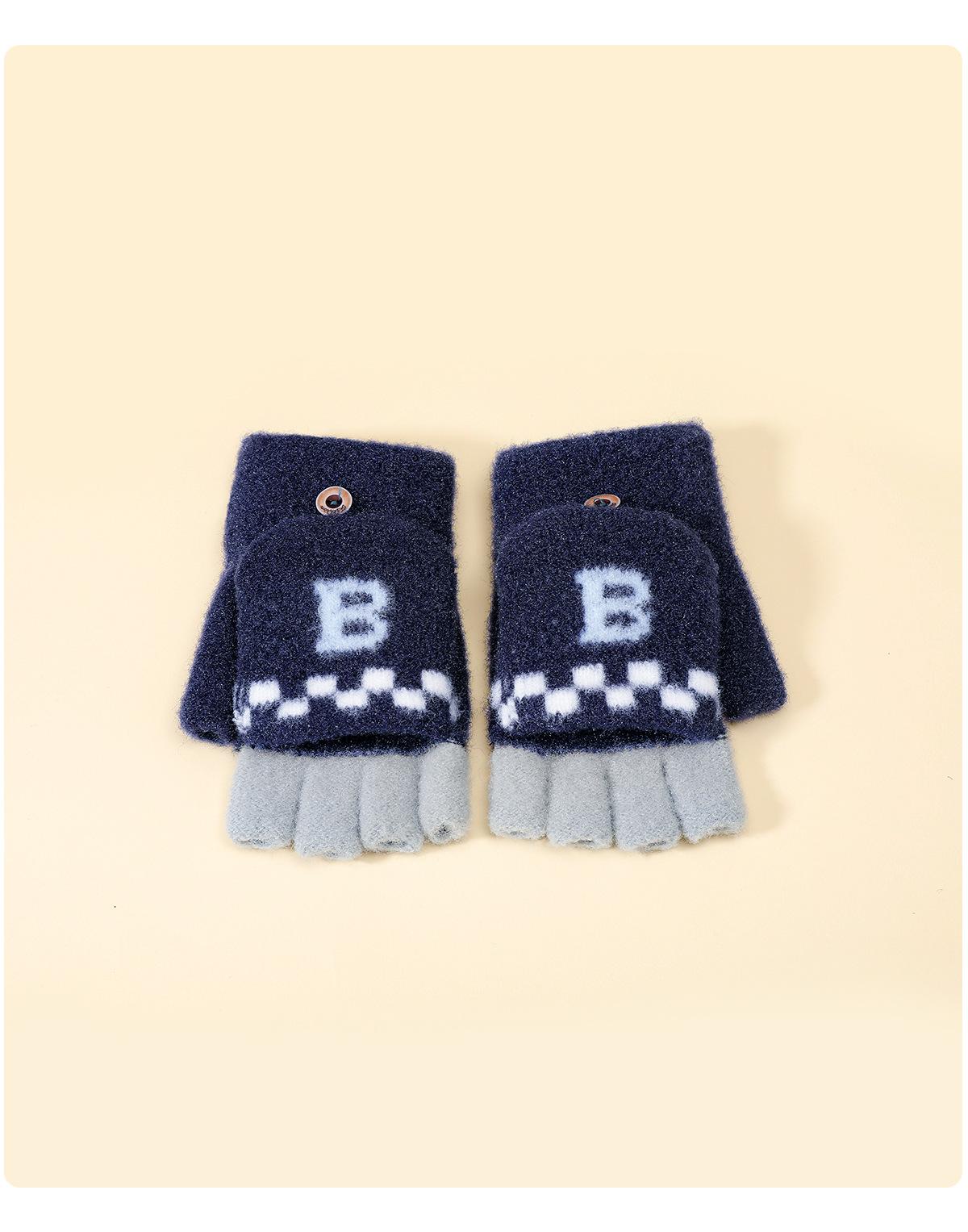 Guantes de invierno para niños, de medio dedo, con tapa abatible, cálidos, para estudiantes, para escribir, de doble uso