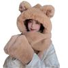 Set de Gorro y Bufanda de Oso de Invierno para Mujer, Invierno Cálido y Lindo Felpa Protección para las Orejas Ciclismo Set de Tres Piezas con Guantes y Calentador de Cuello