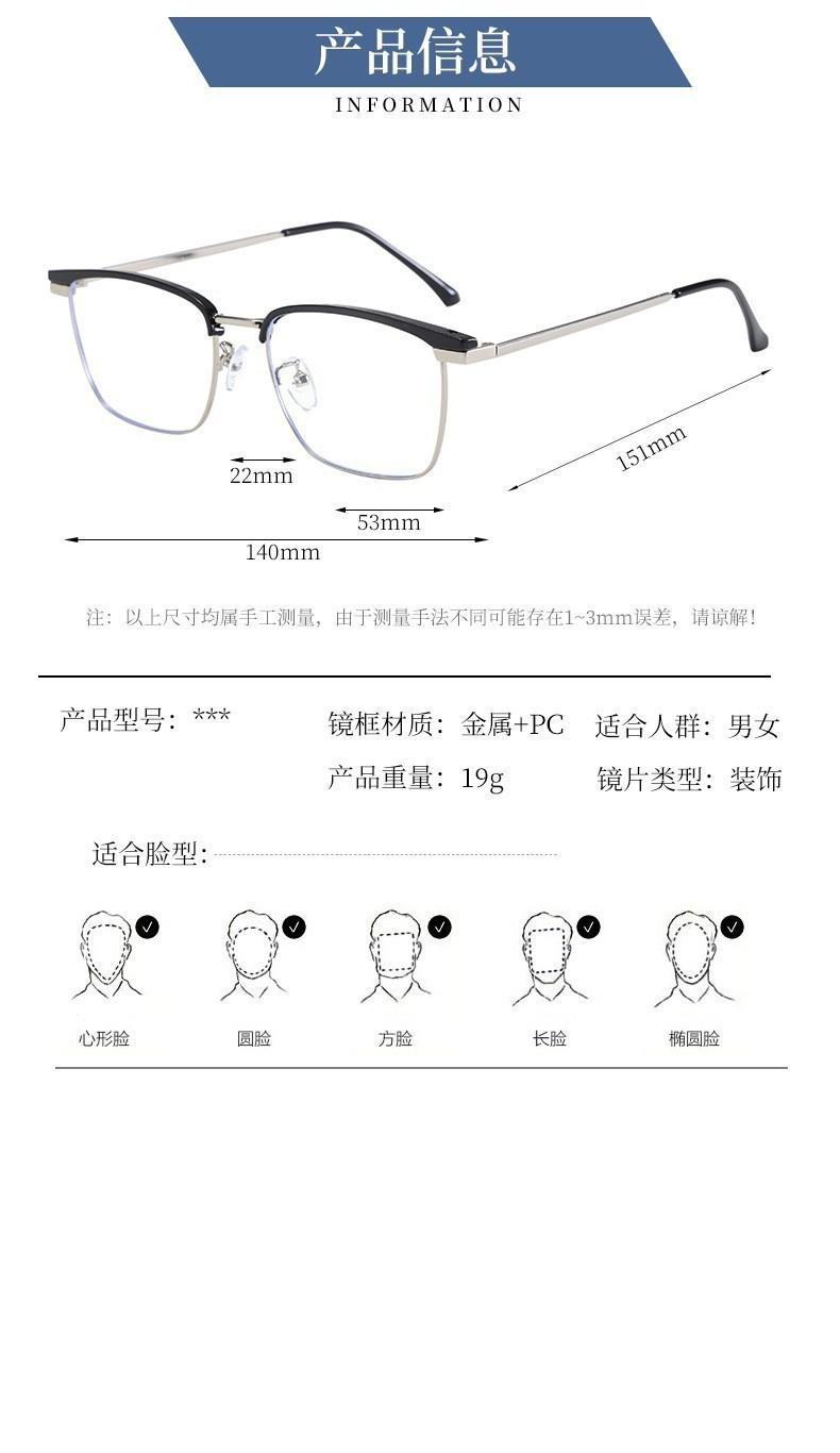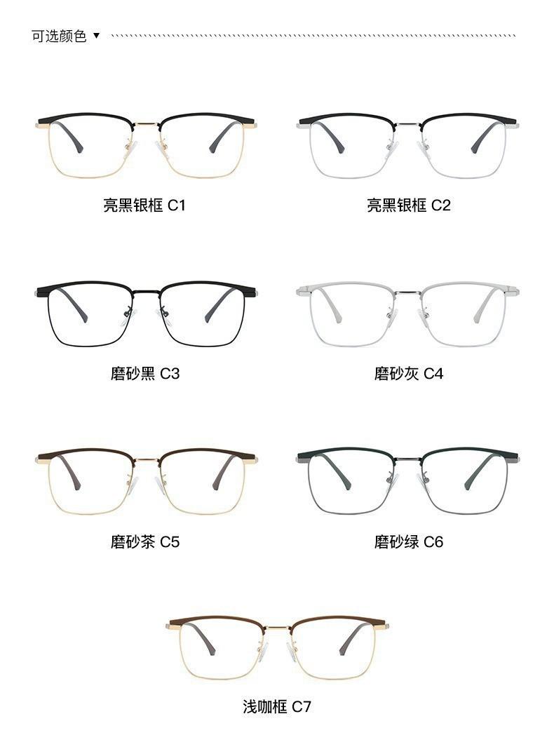 Bright black silver frame, Matt black black frame, Bright black gold frame, Frosted gray silver frame, Light coffee gold frame