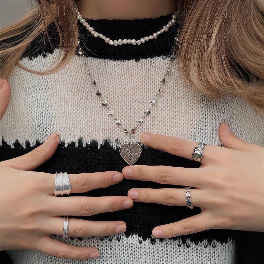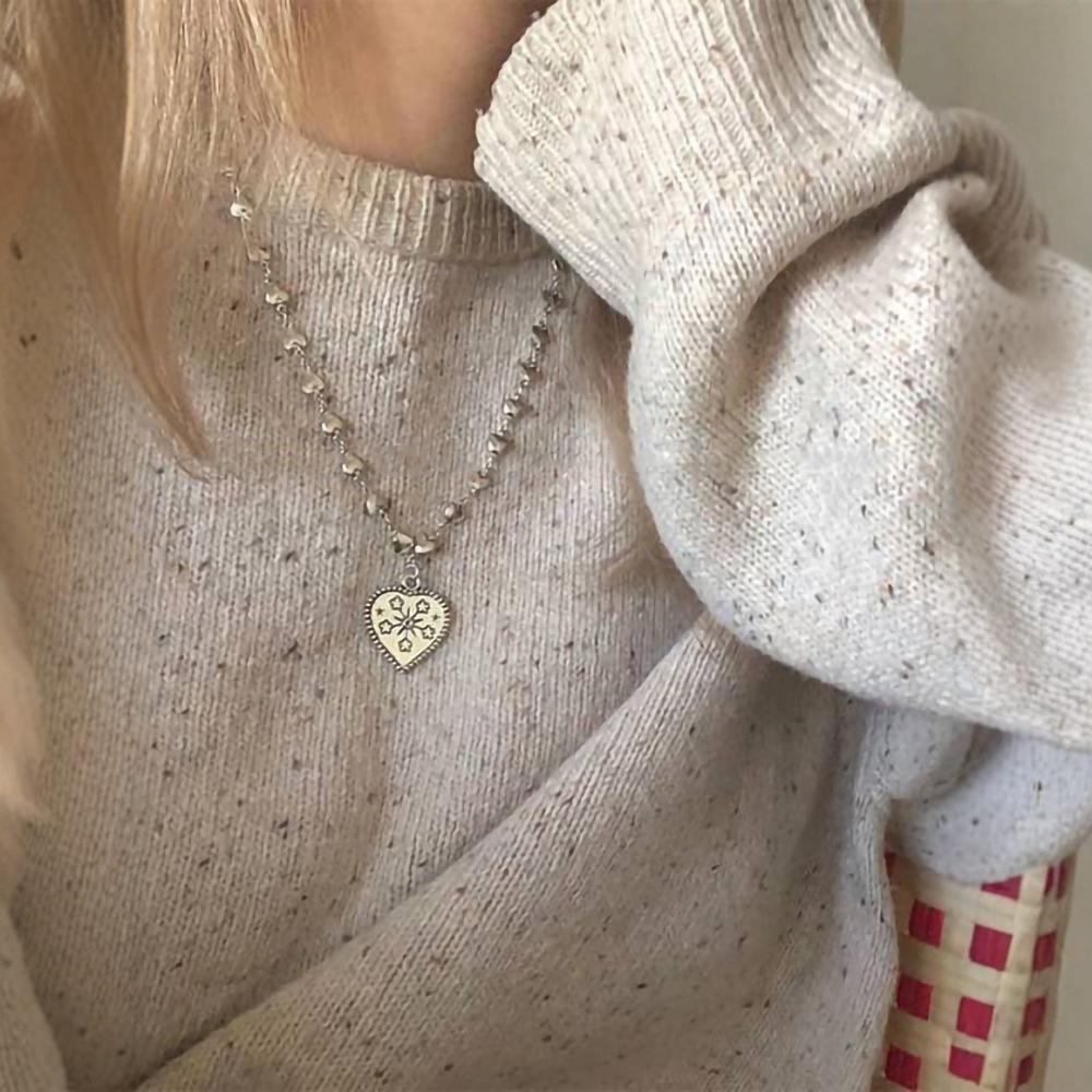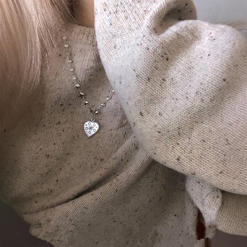 Collar de acero de titanio antiguo tallado con copos de nieve de estilo coreano, simple, dulce y fresco, collar de nicho vintage para mujer, cadena de collar que combina con todo.