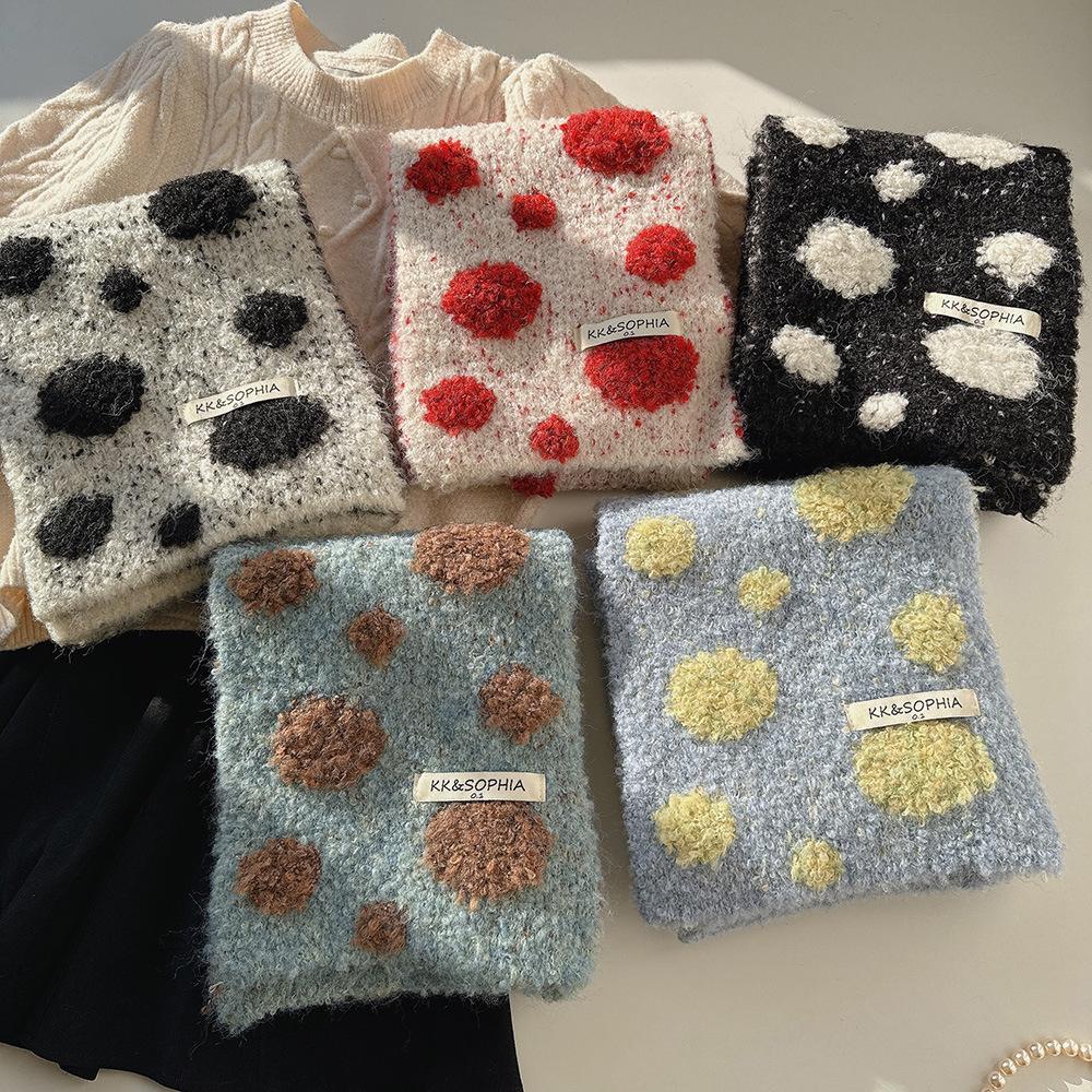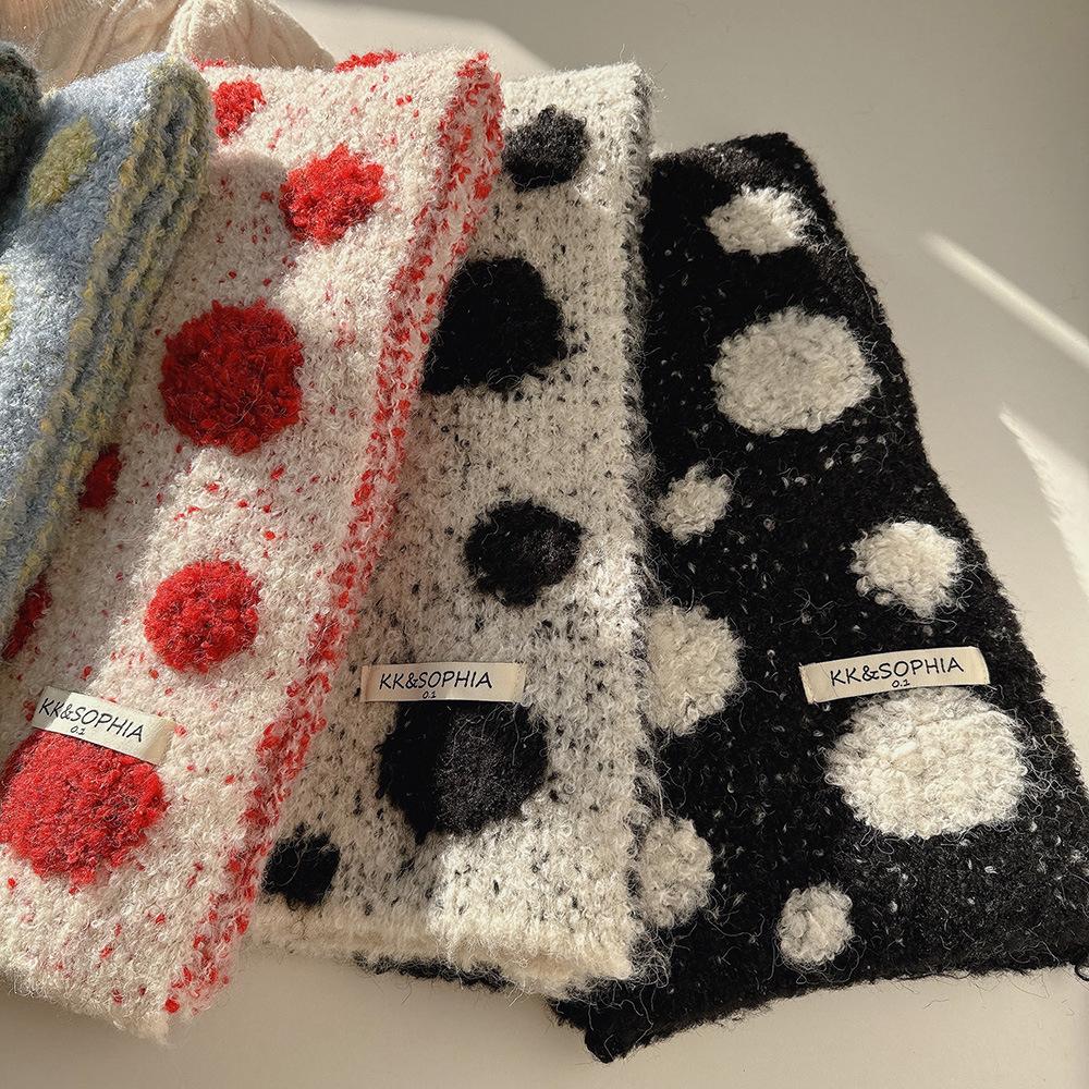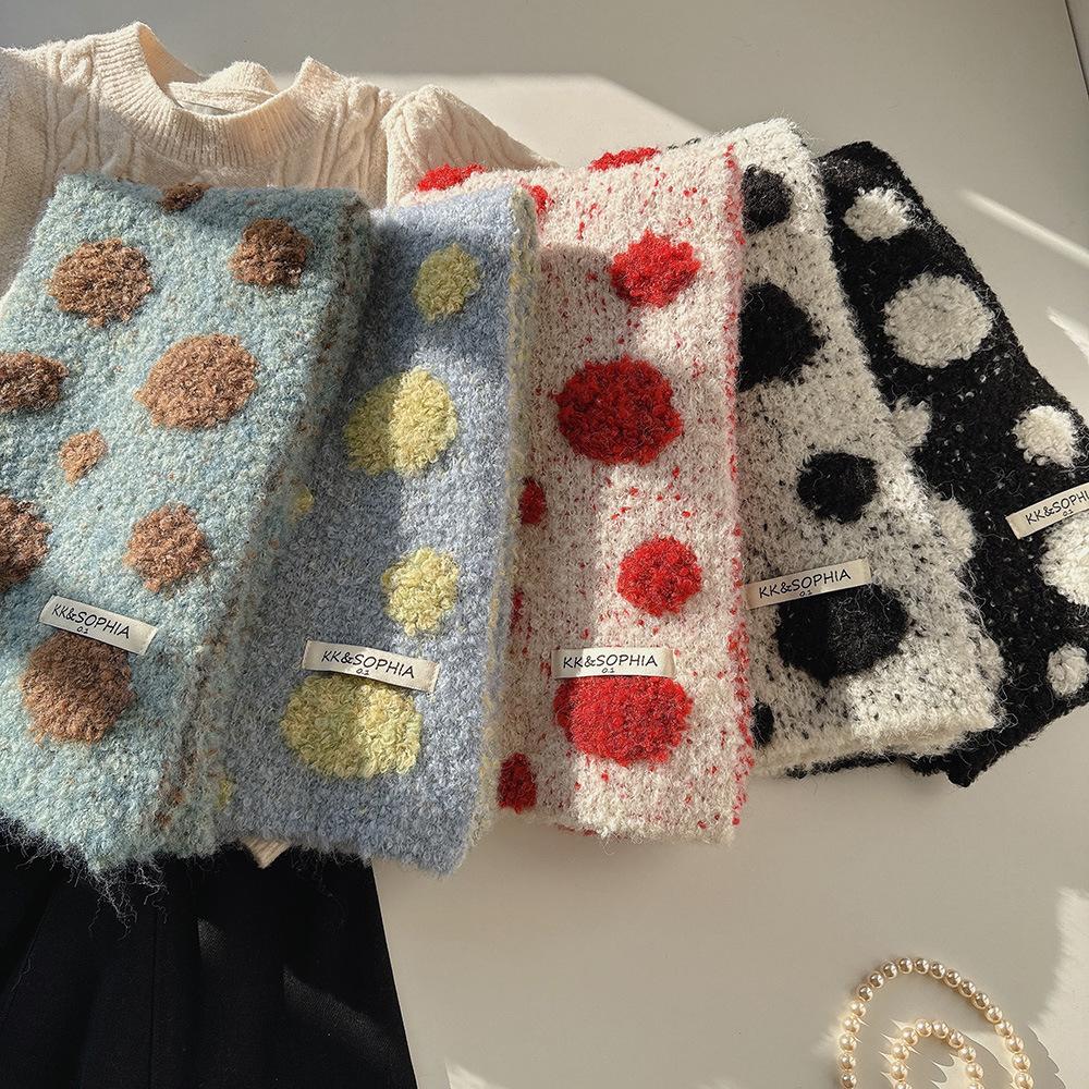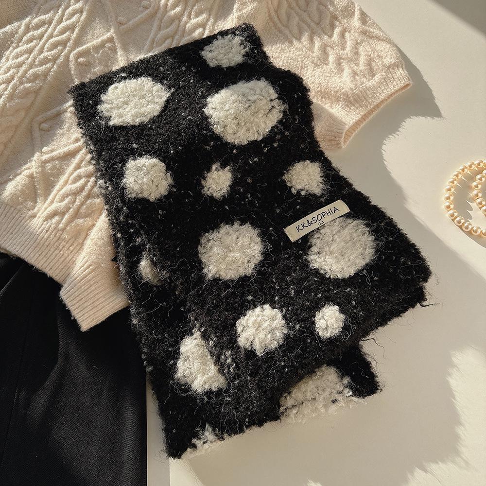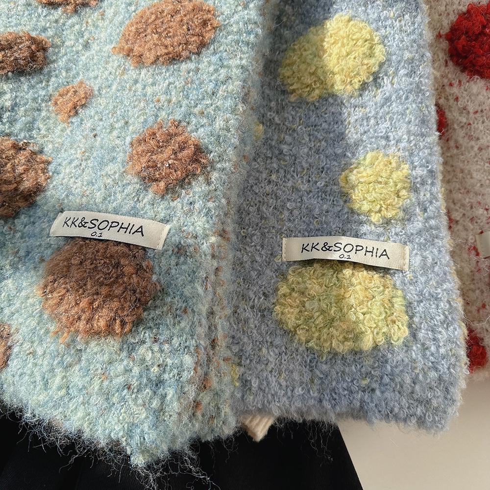 El jacquard de lunares grandes le da una sensación tridimensional completa.