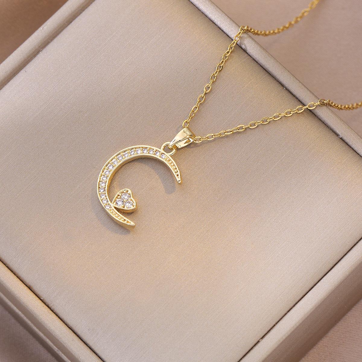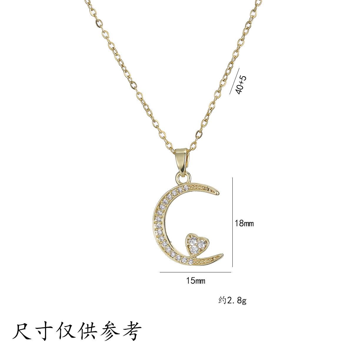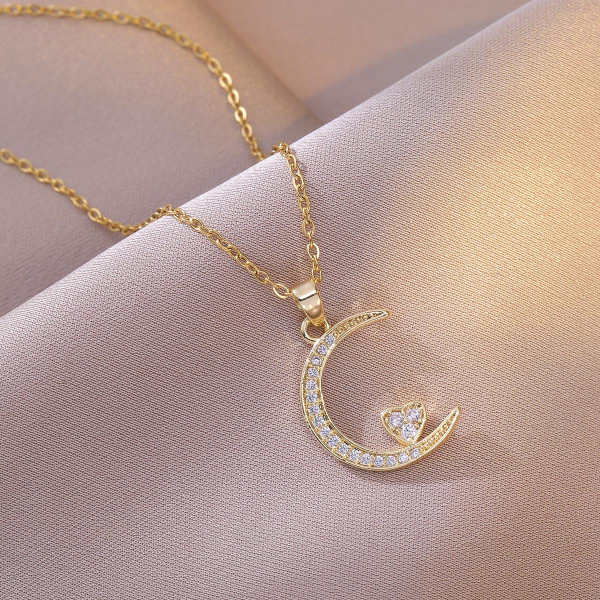 Collar para mujer, estilo japonés-coreano, elegante colgante de corazón de luna con incrustaciones de diamantes, cadena de clavícula, collar con diseño de nicho de corazón de melocotón para mujer