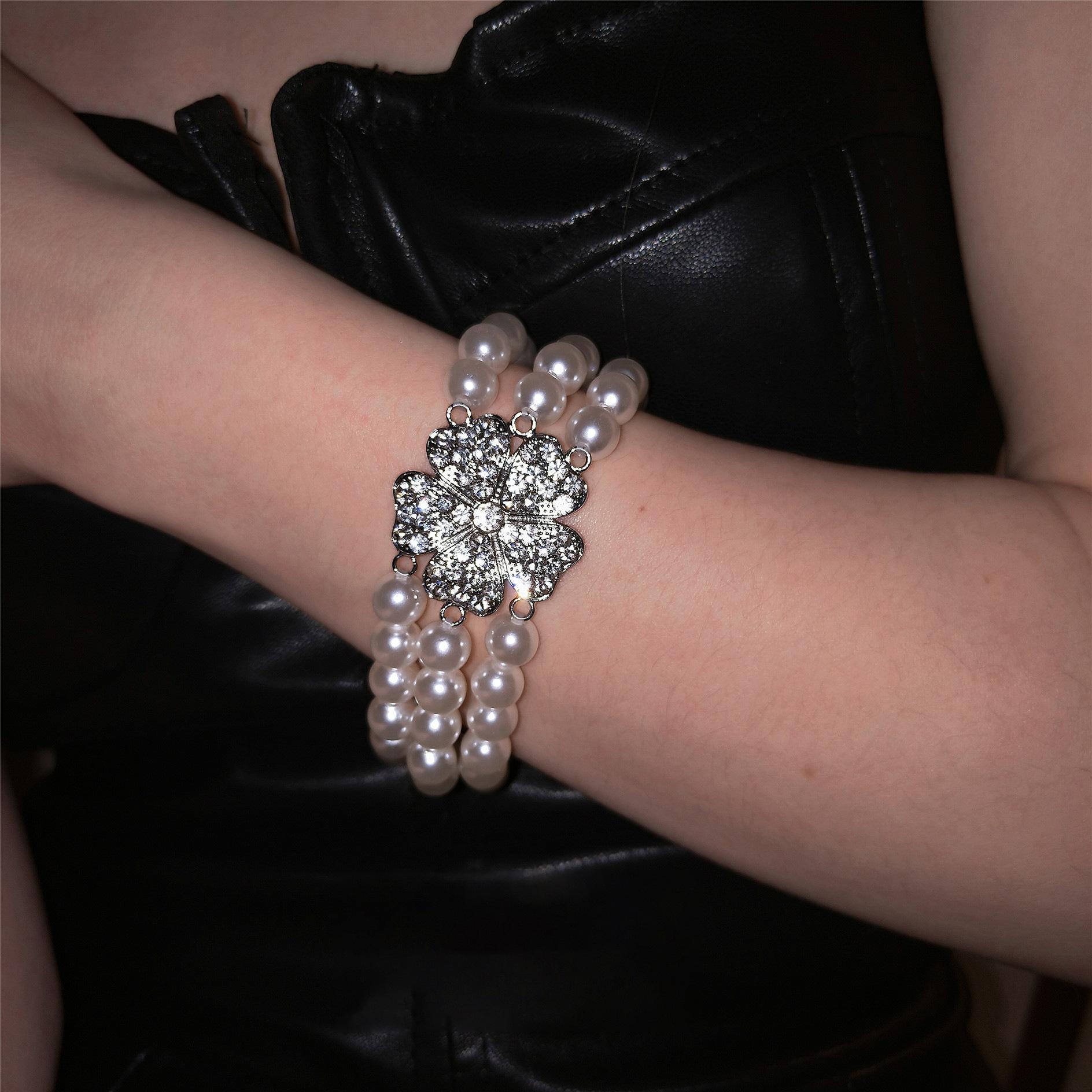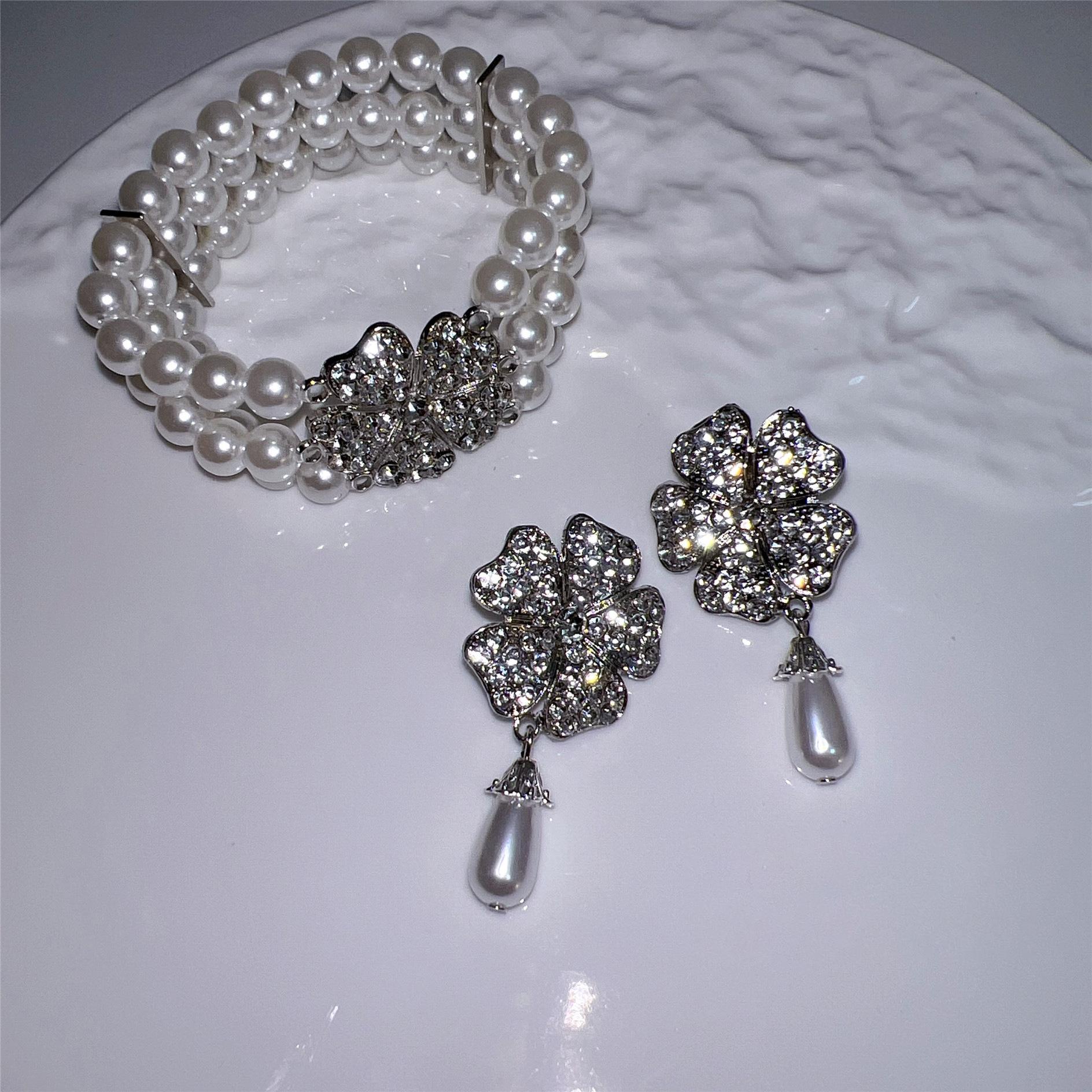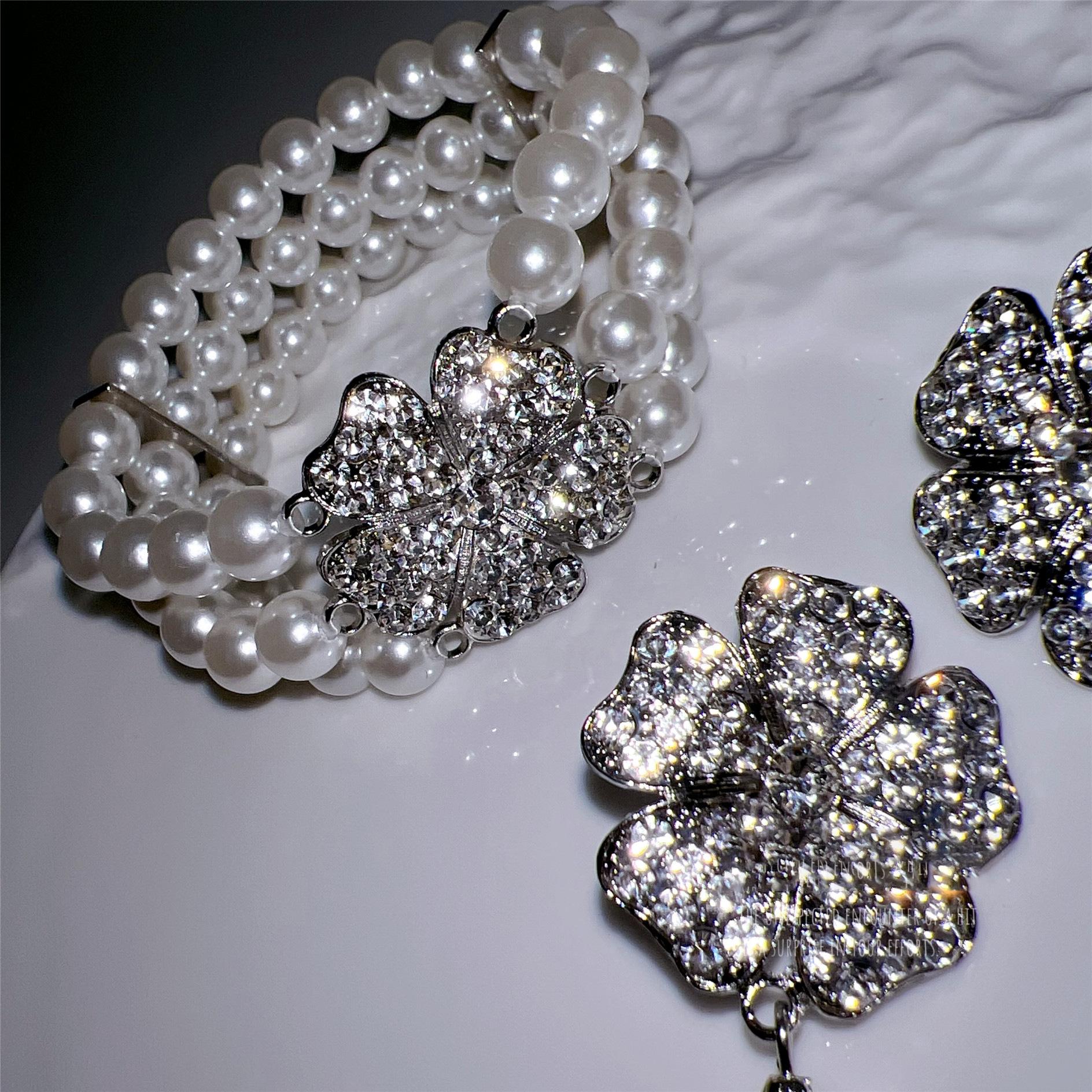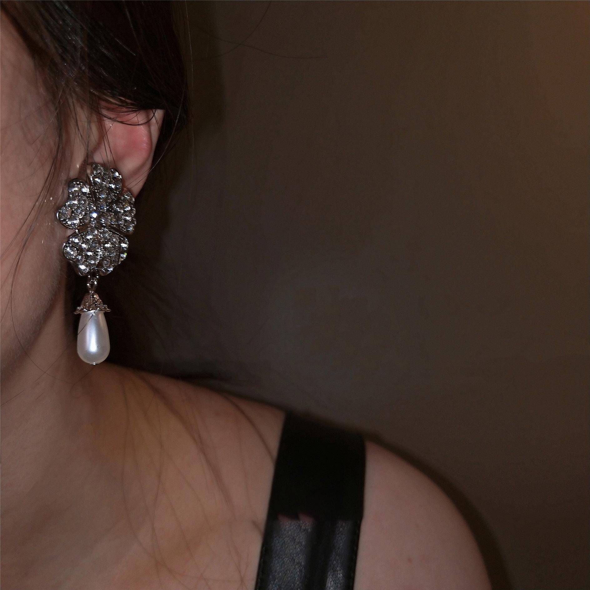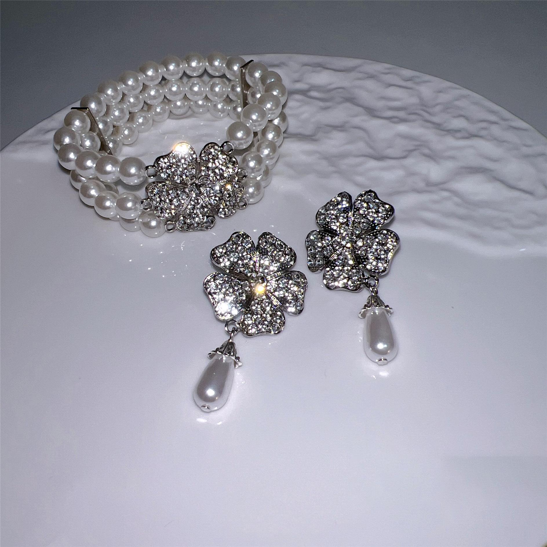 Collar multicapa de flores, diamantes completos, gotas de agua, perlas, lujo ligero francés, elegante, cadena para clavícula, moderno, elegante, collar de alto nivel