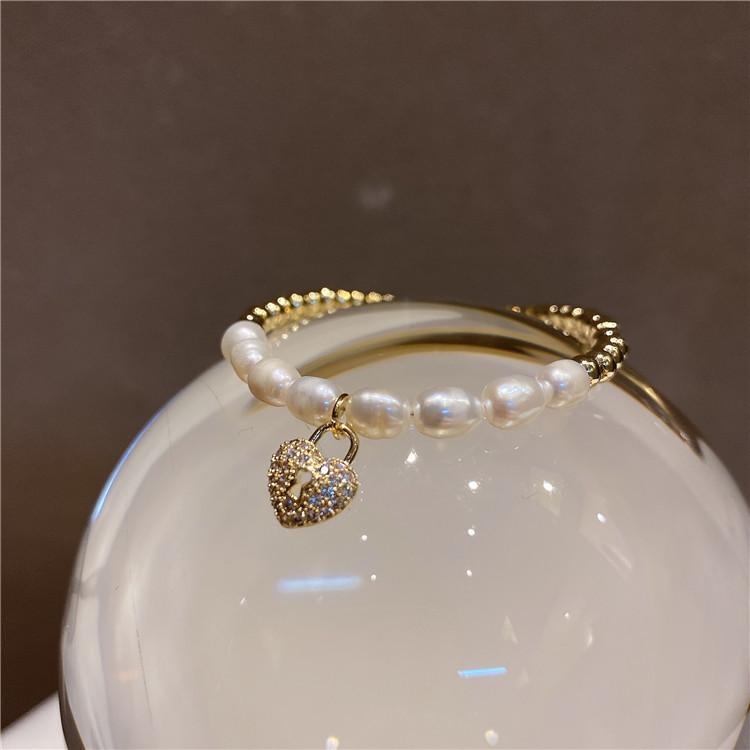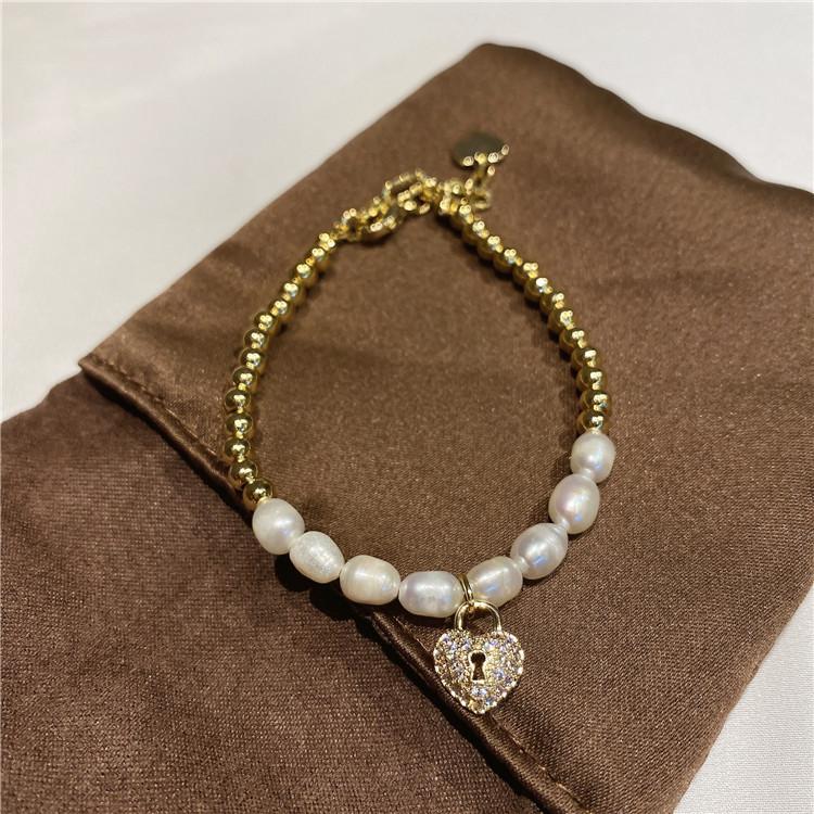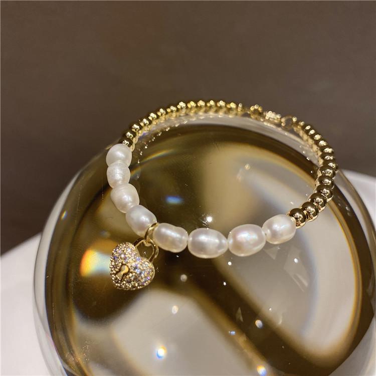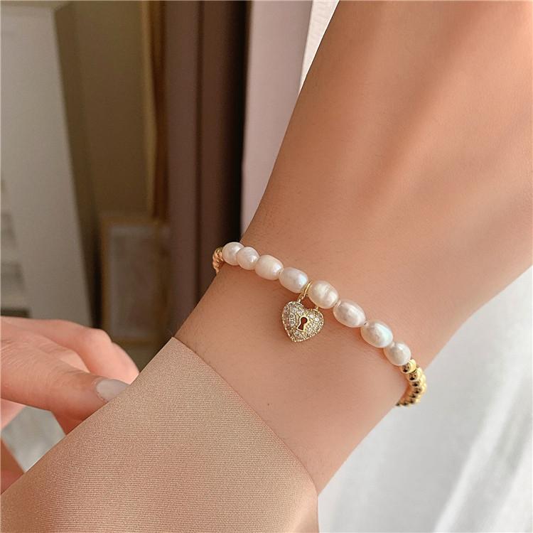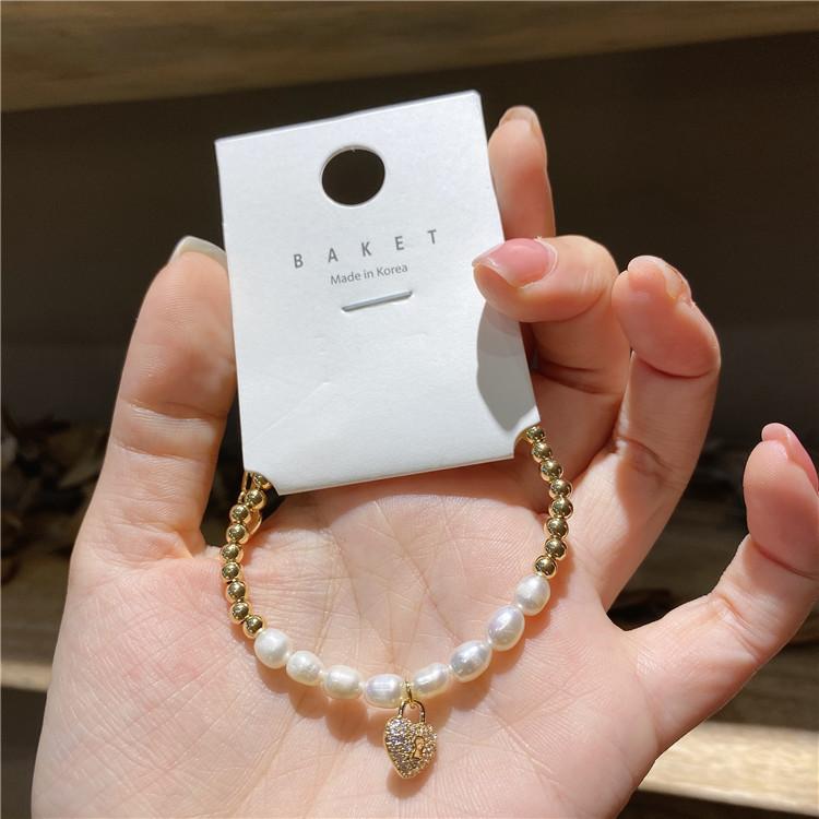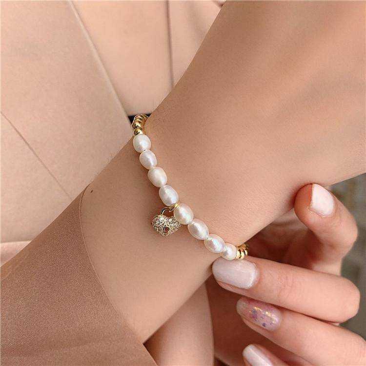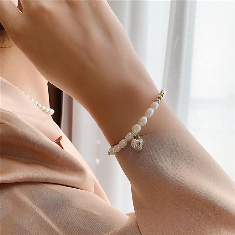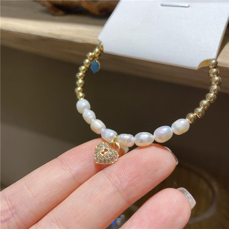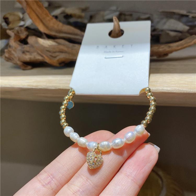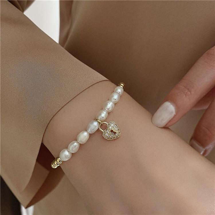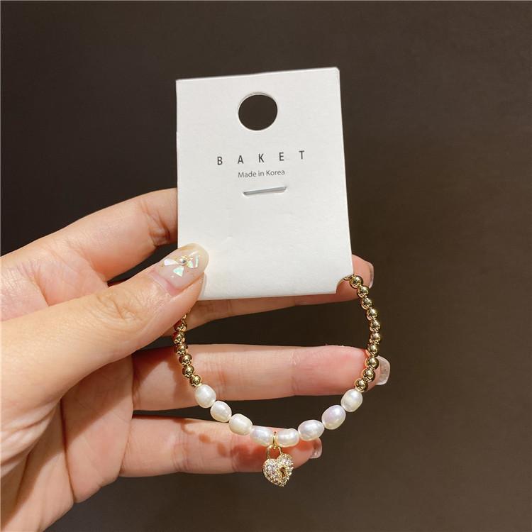 Exquisita Pulsera de Corazón Estilo Coreano para Mujer Chapada en Oro Micro-Incrustada Pulsera Simple Diseño Nicho Ins Pulsera de Perlas para Mujer