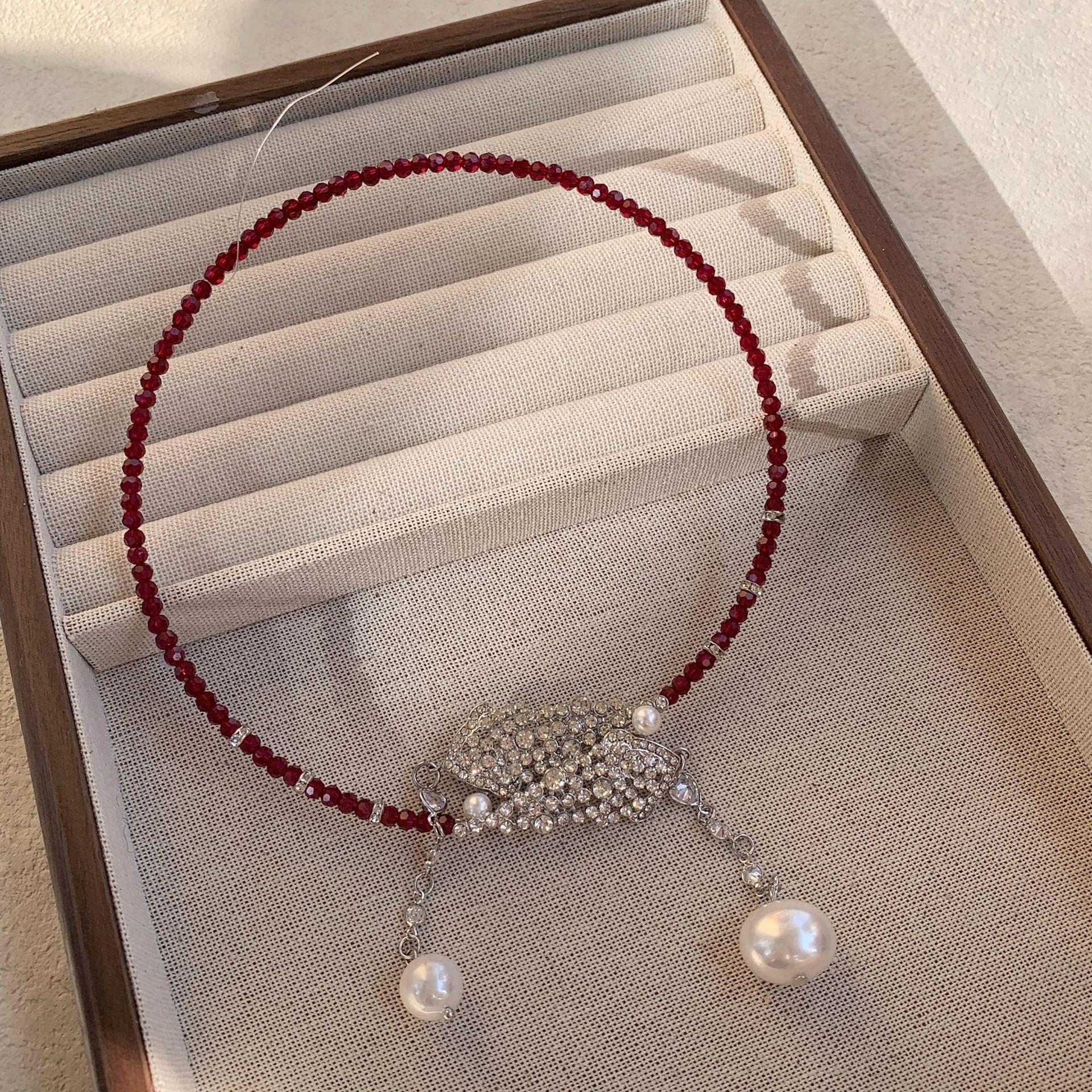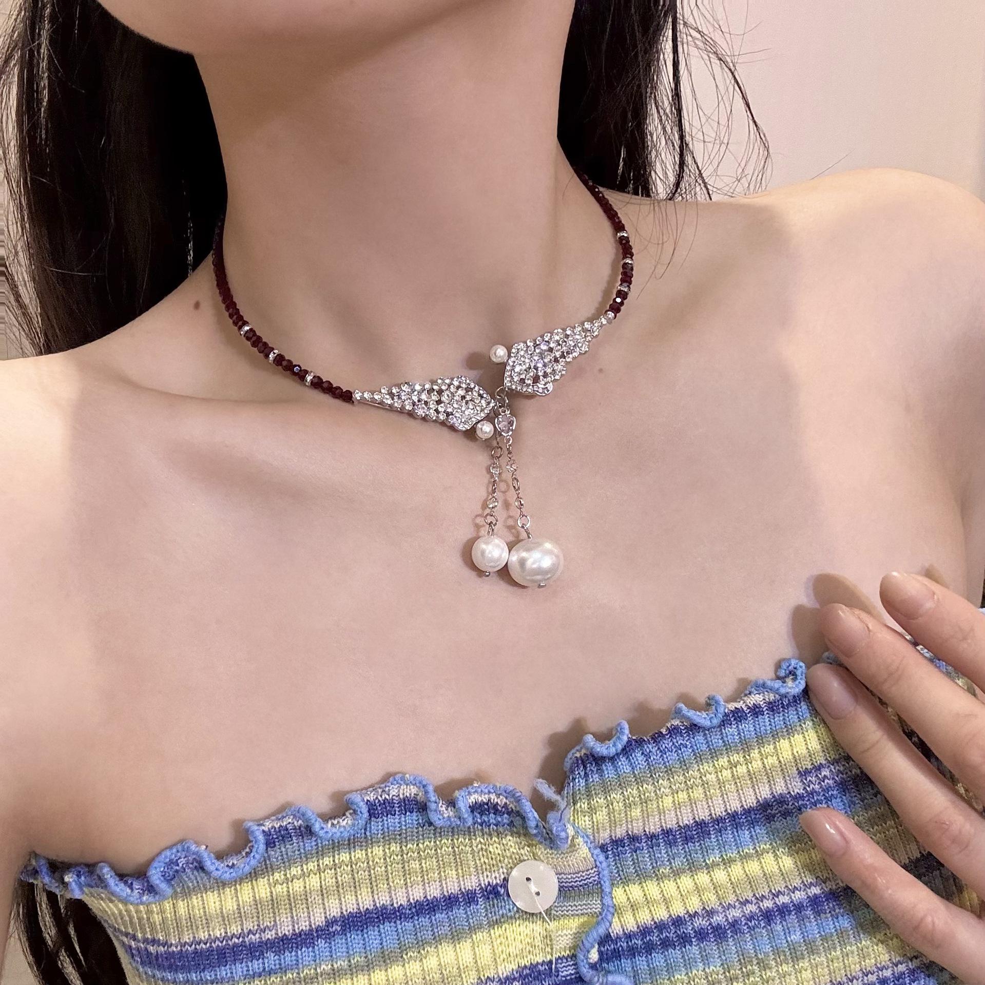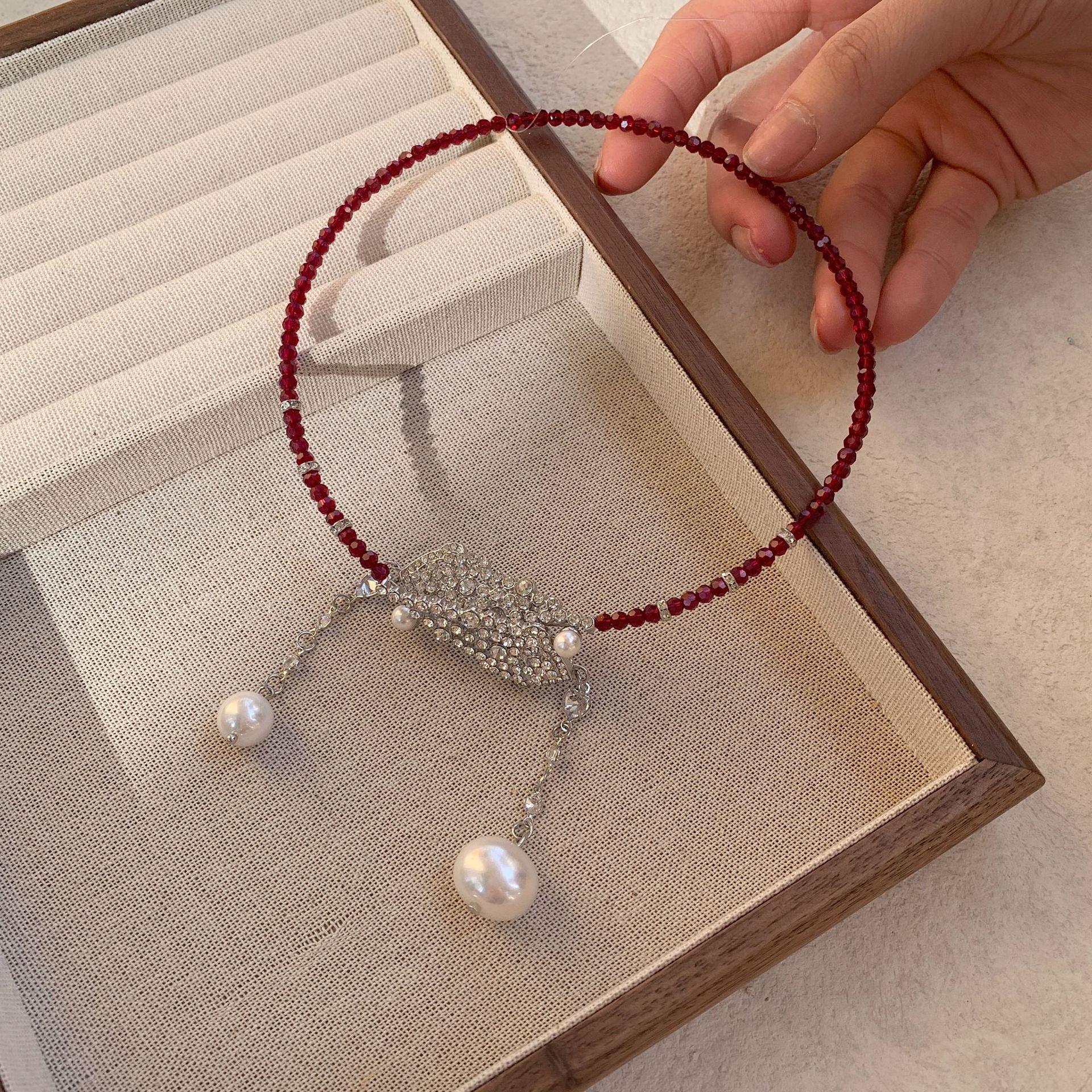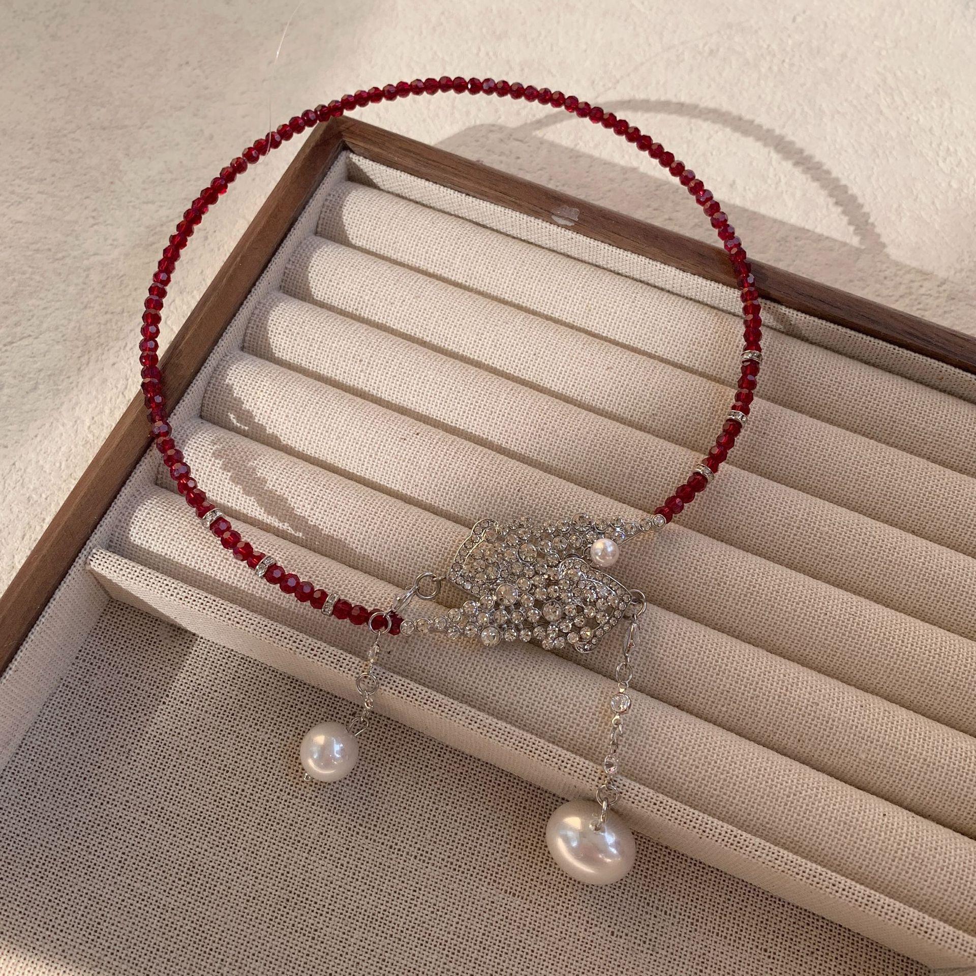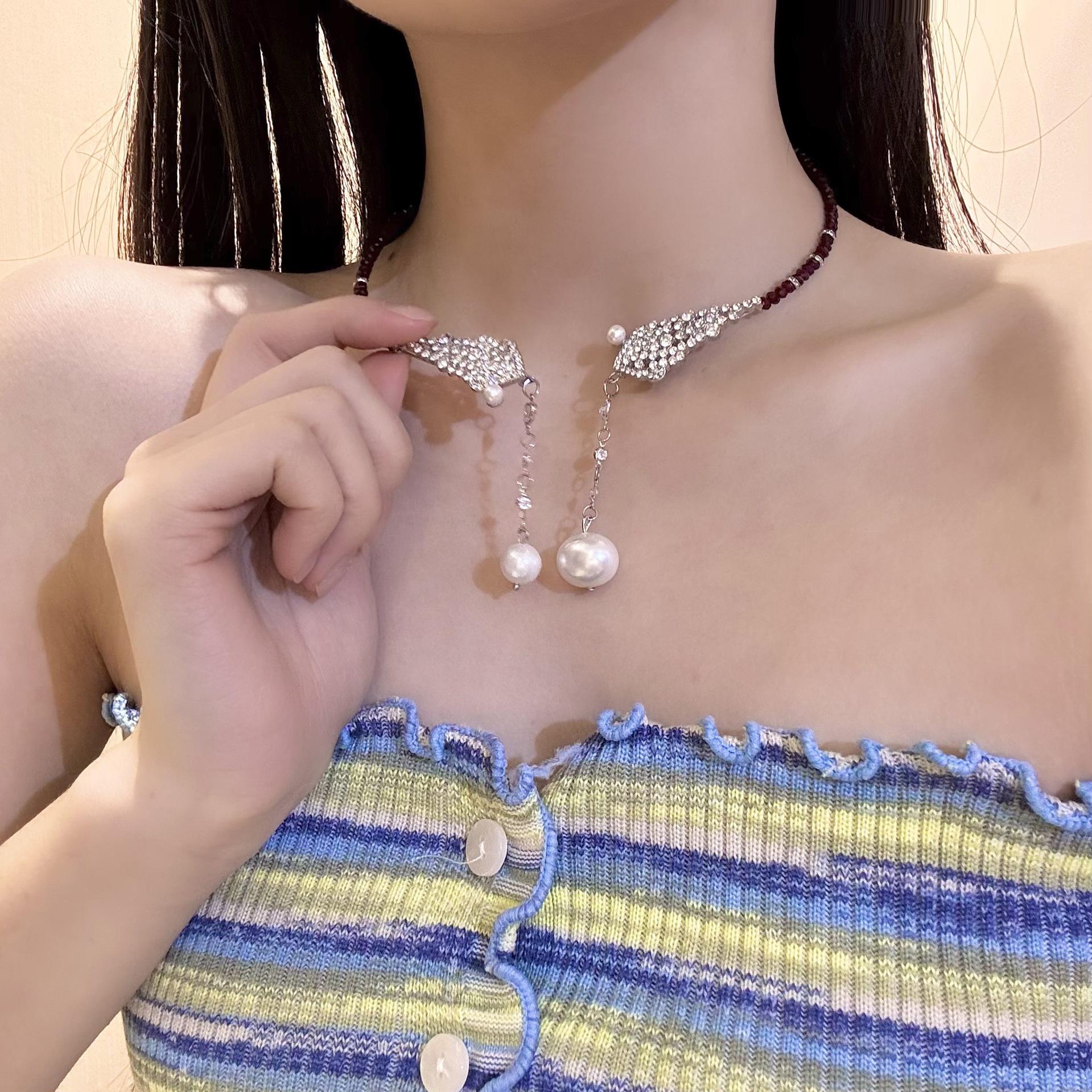 Collar con borlas de perlas y diamantes con destellos de serpiente, collar ligero de lujo con nicho, gargantilla de moda para mujer