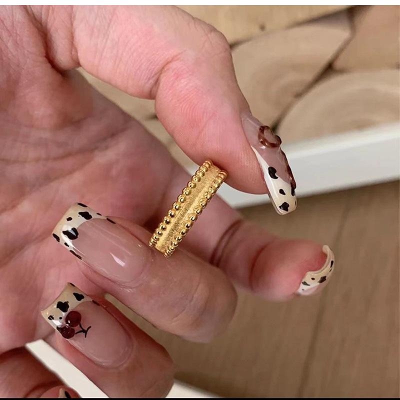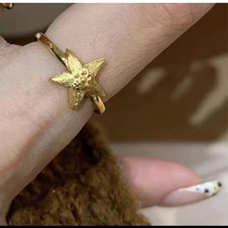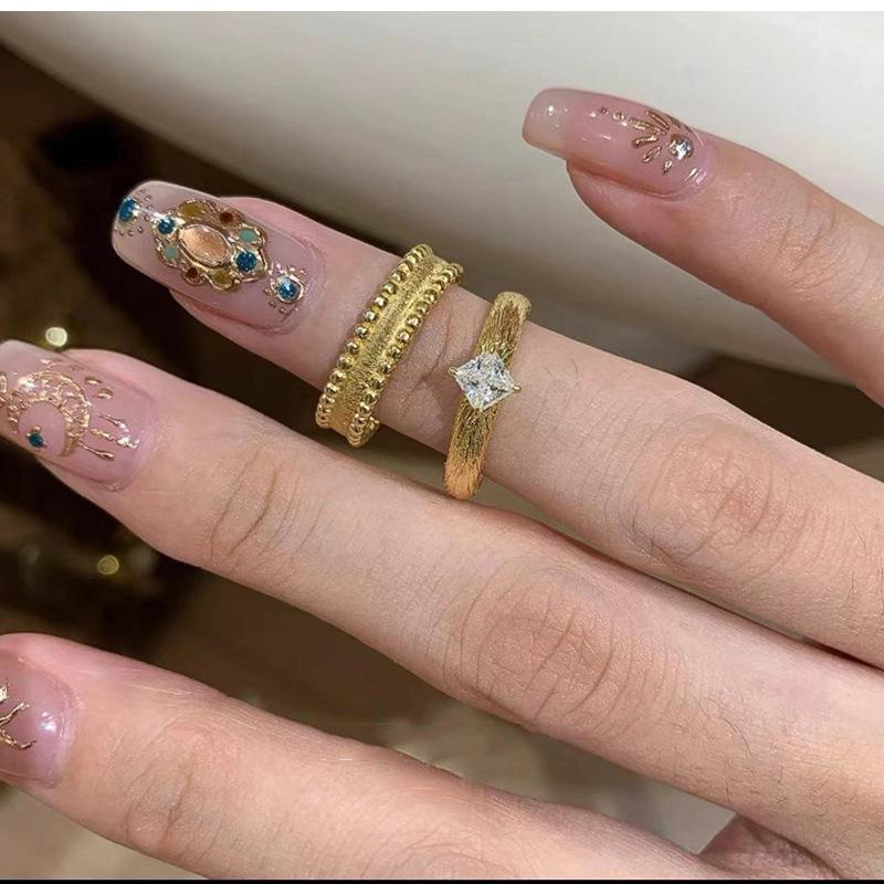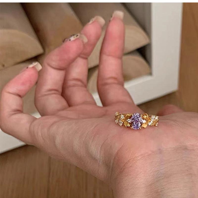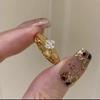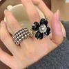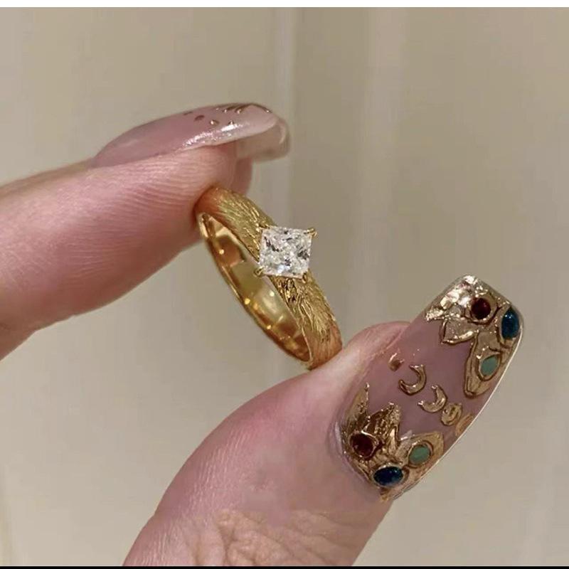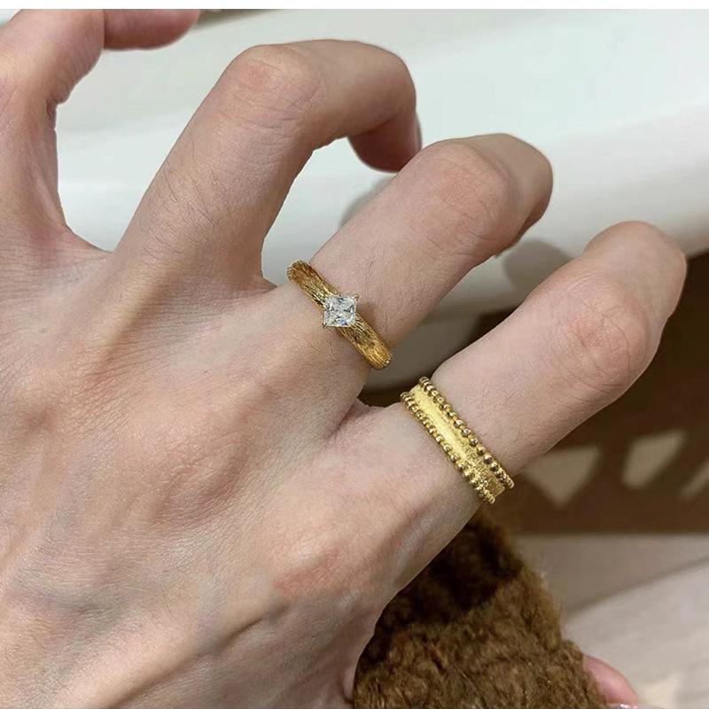 Anillo Liso de Diamante Cuadrado Pequeño Cepillado con Flor de Bauhinia Antigua para Mujer Nicho de Alta Gama Lujo Ligero Versátil Anillo de Dedo Retro