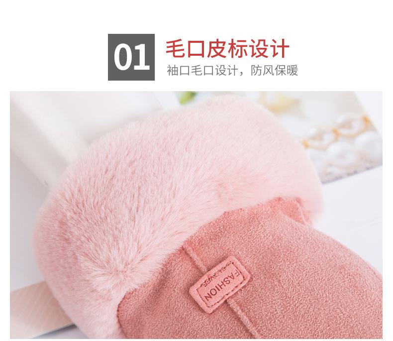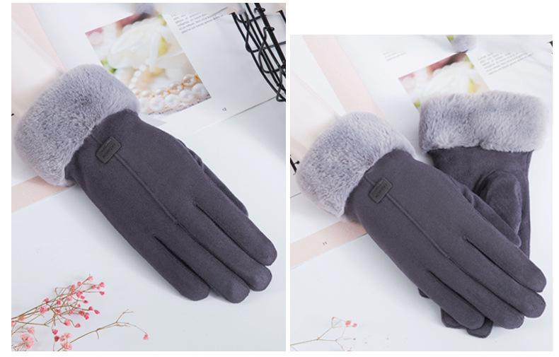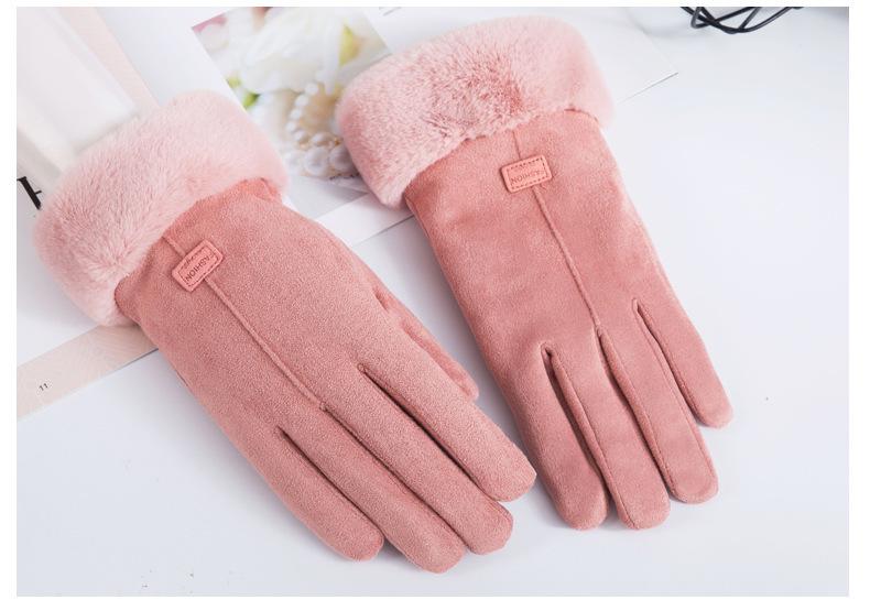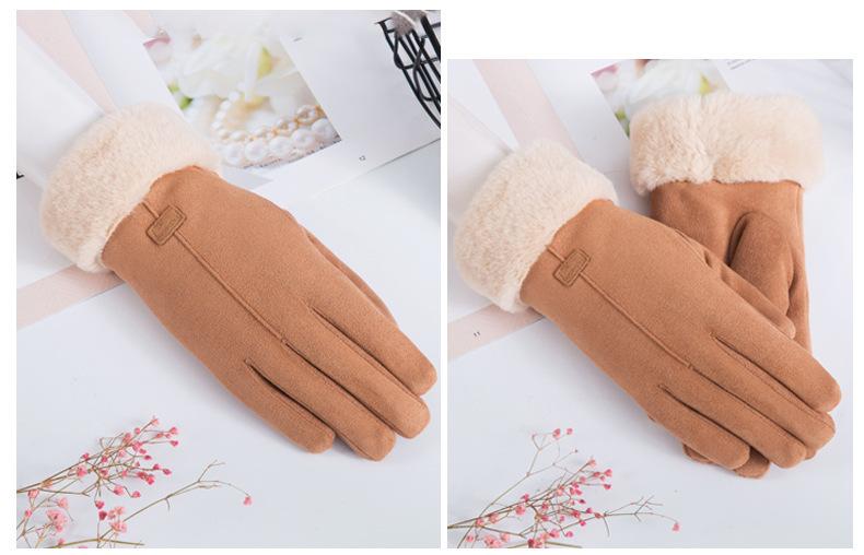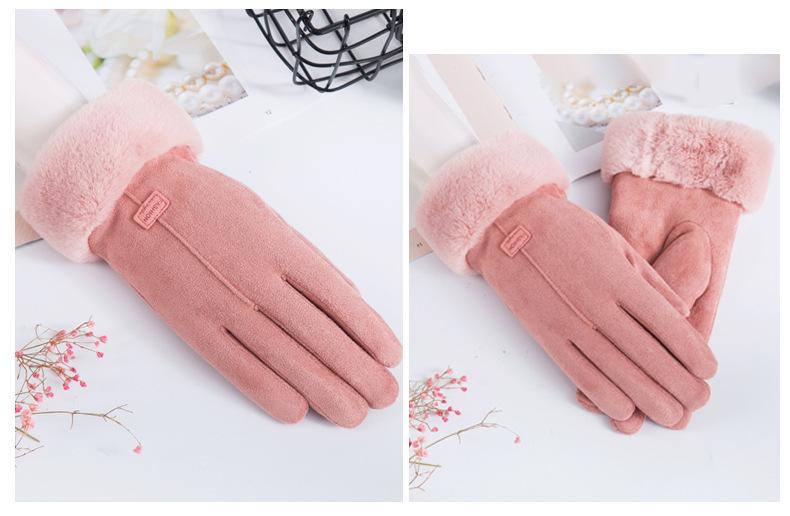 Guantes de gamuza cálidos de otoño e invierno para mujer, guantes de pantalla táctil engrosados para conducir, forrados con vellón engrosados, moda coreana