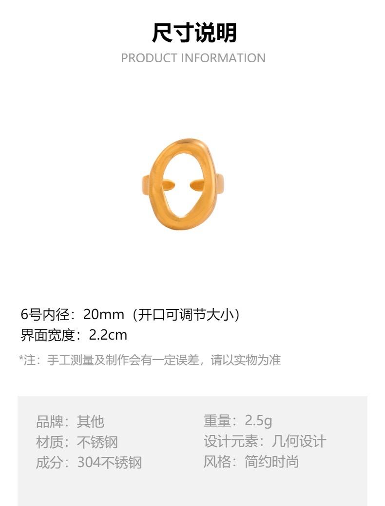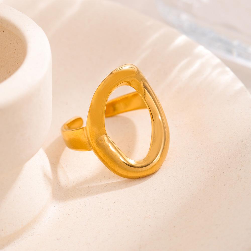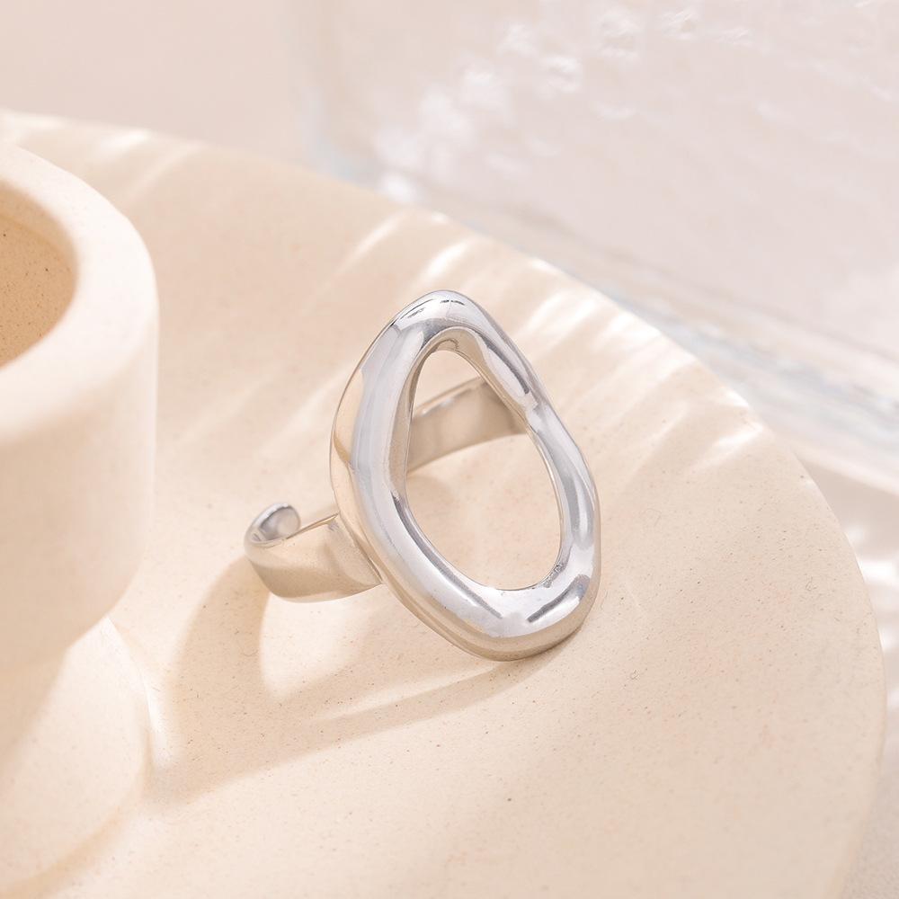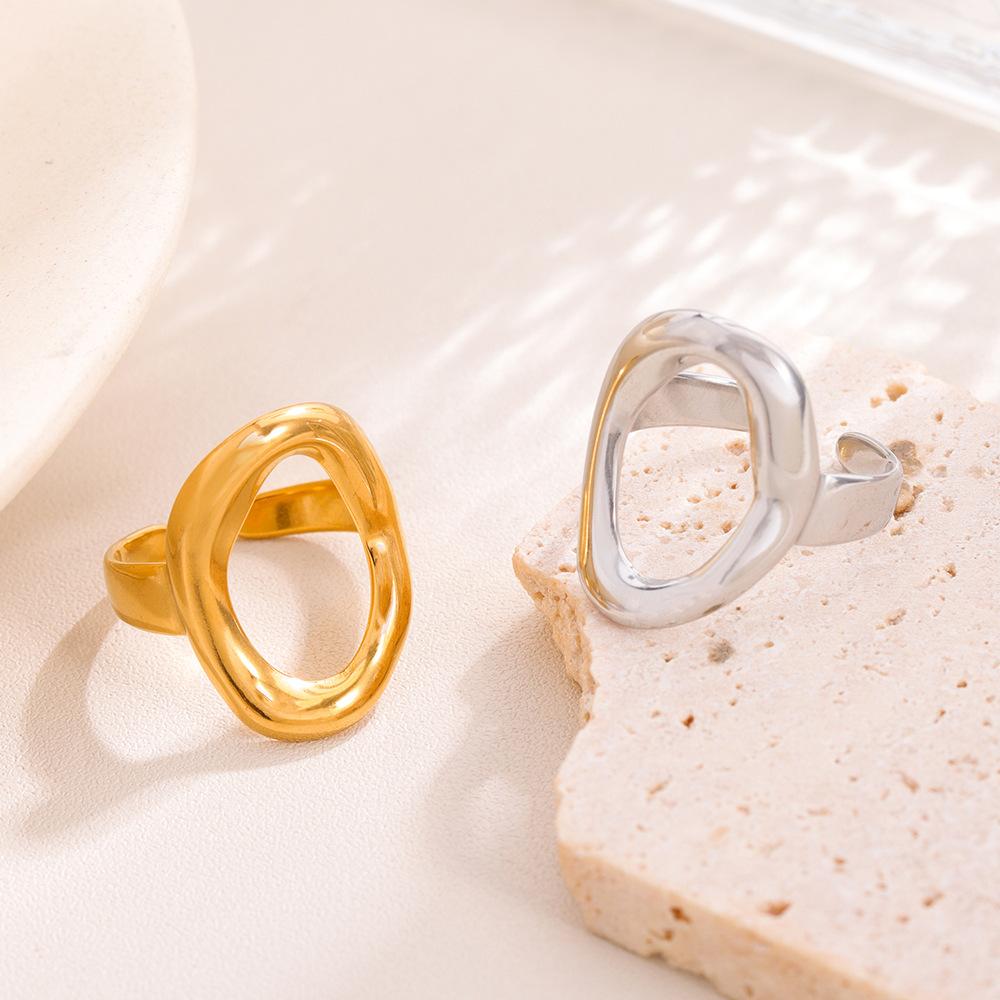 Anillo de acero inoxidable de estilo europeo y americano con diseño de nicho ovalado irregular de estilo simple y titanio.