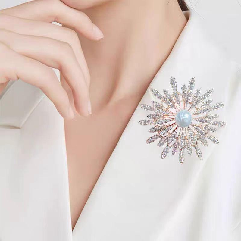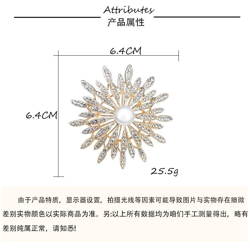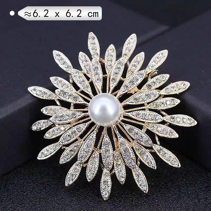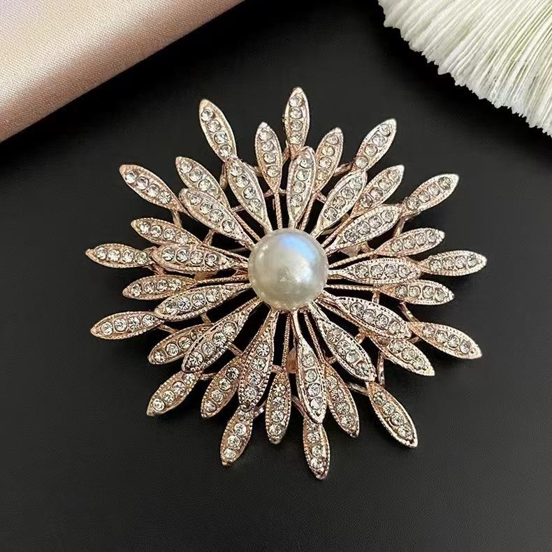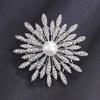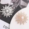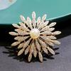 Broche de estilo coreano con diseño de flor de sol dorada, aleación de diamantes y perlas, accesorio para abrigo personalizado sencillo.