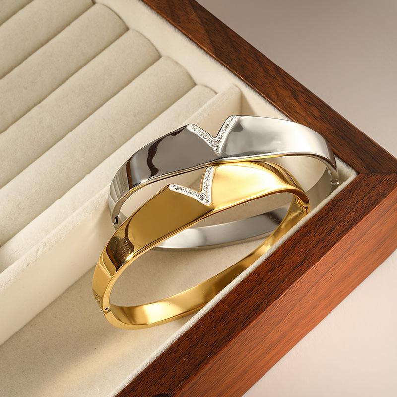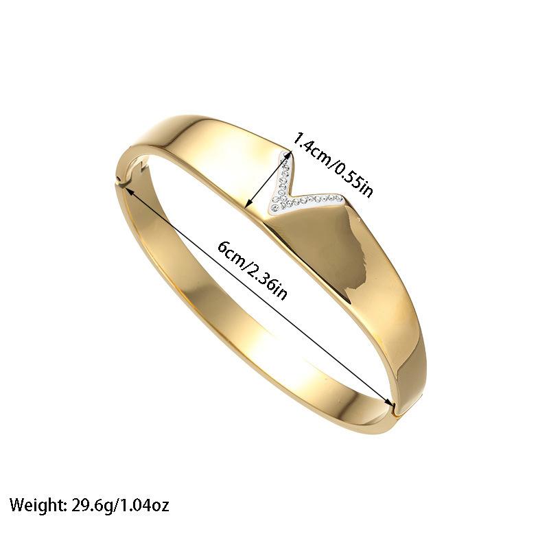 Amazon Nuevo Pulsera Transfronteriza con Hebilla de Acero al Titanio en Forma de V Pulsera de Moda de Alta Gama Diamante Geométrico Simple
