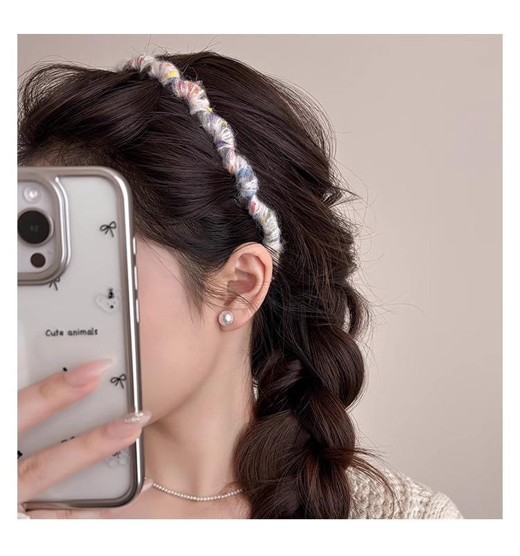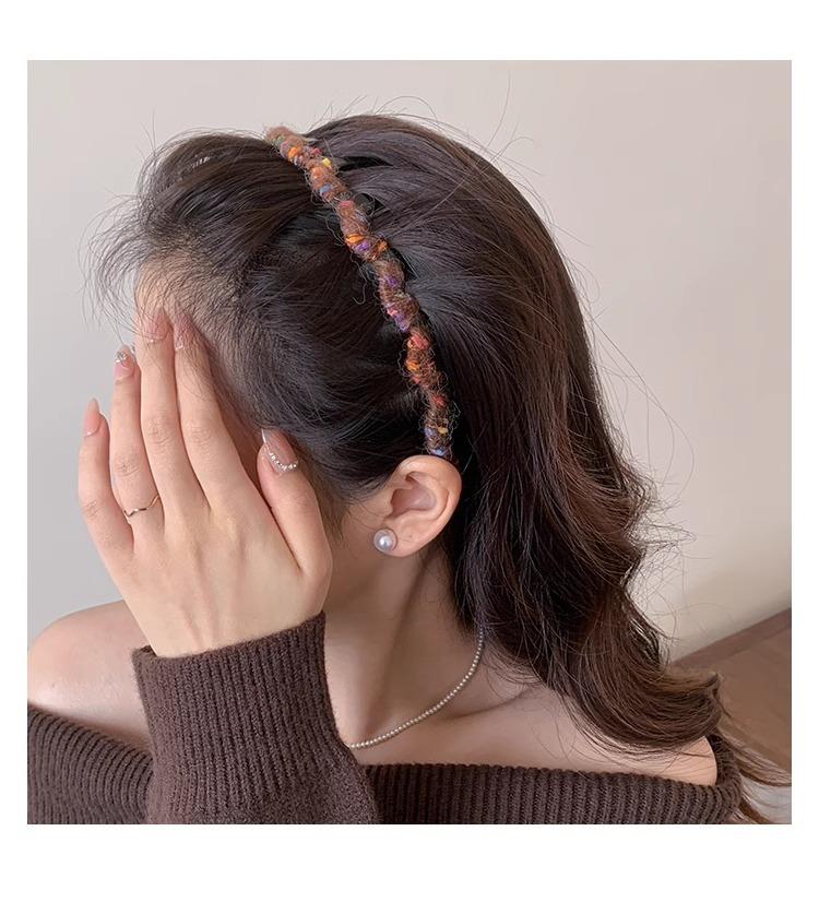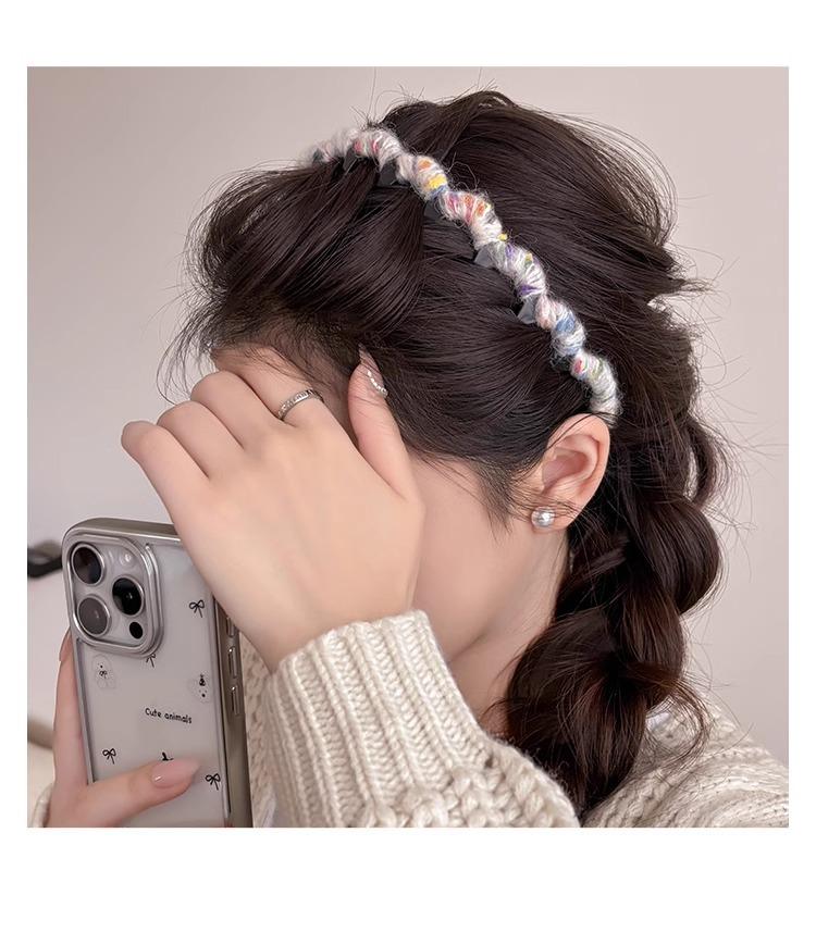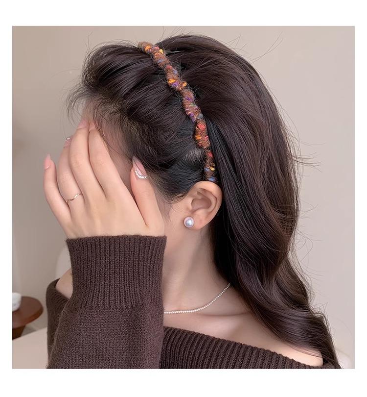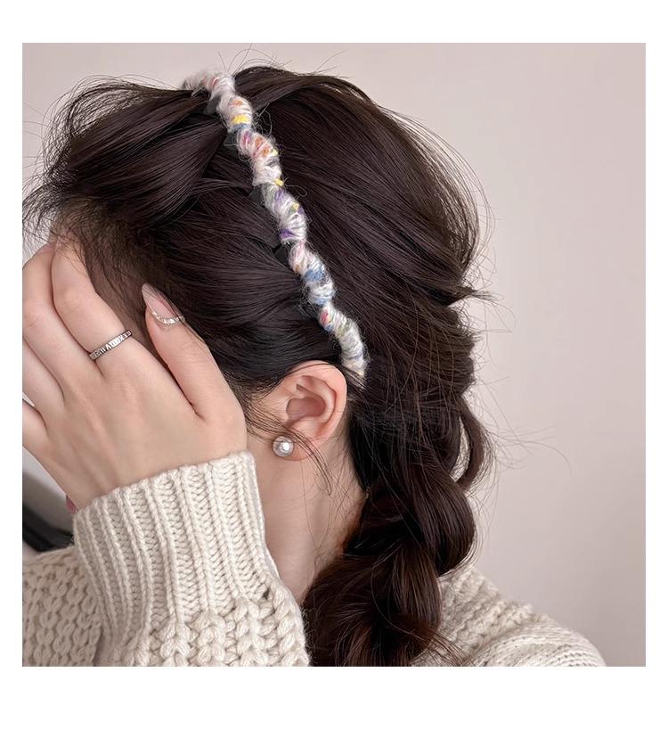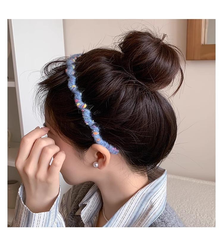 Diadema Coreana de Lana de Color para el Cabello Esponjosa Fija Parte Superior Craneal Alta Otoño e Invierno Dulce Versátil Accesorios para el Cabello para Mujer