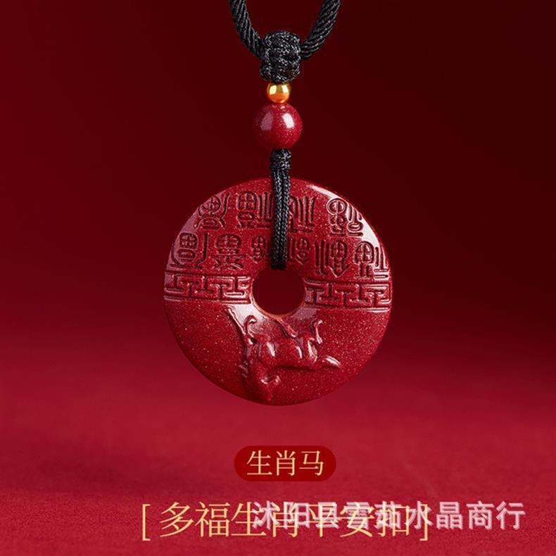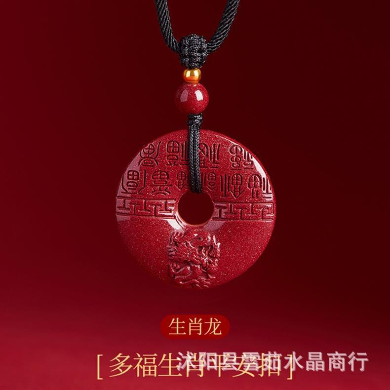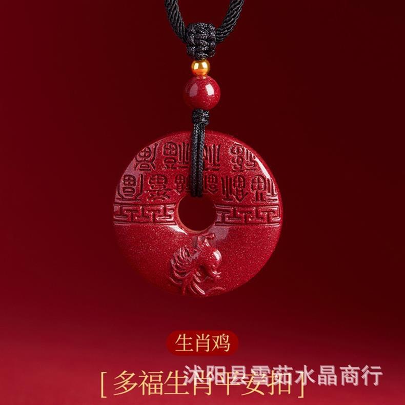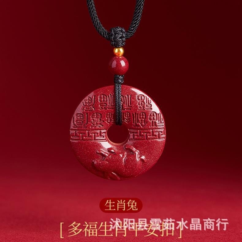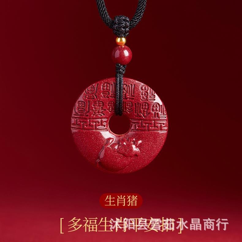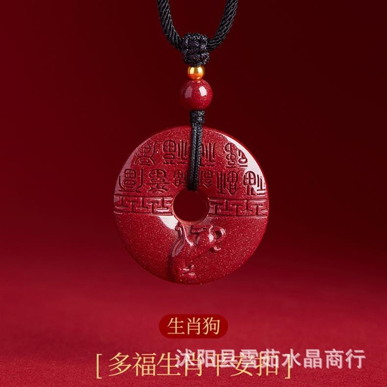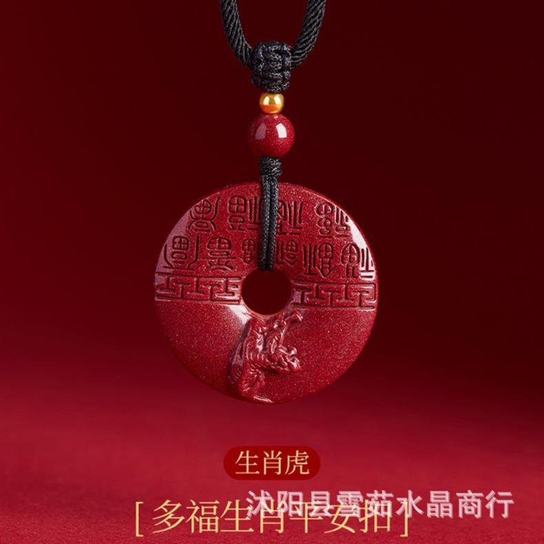 Collar con colgante de hebilla de cinabrio Ping An, colgante de oro púrpura de alto contenido, arena Duofu, colgante de doce años del zodíaco