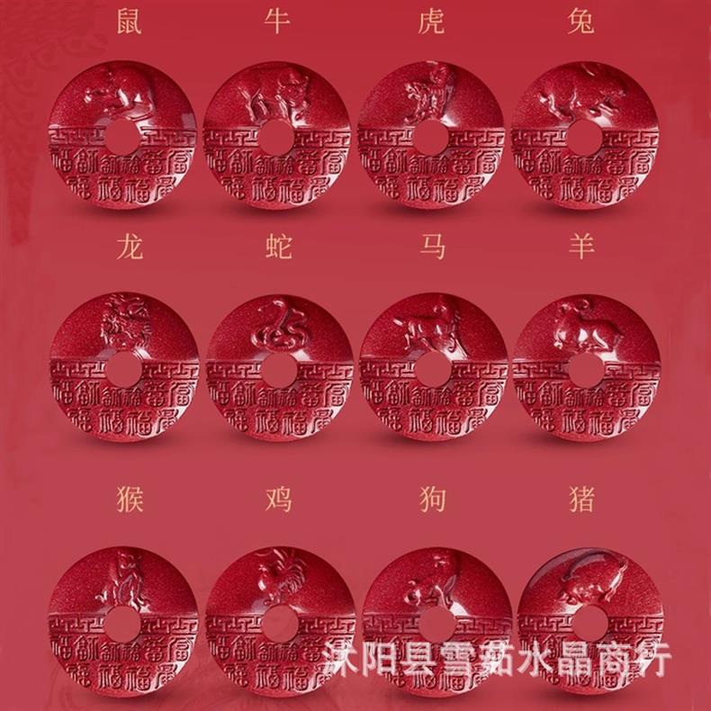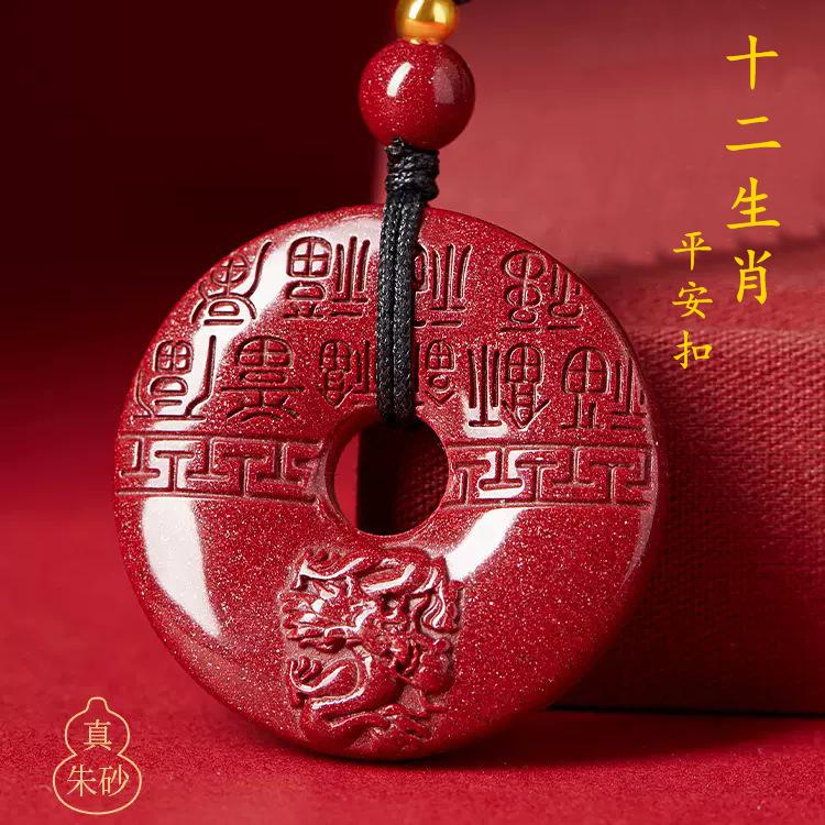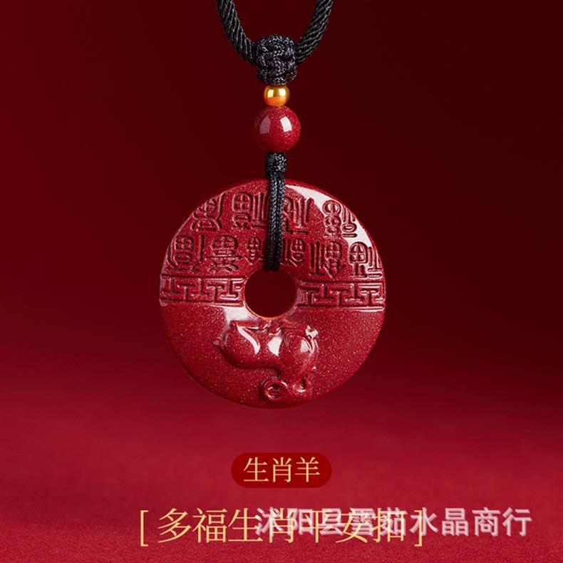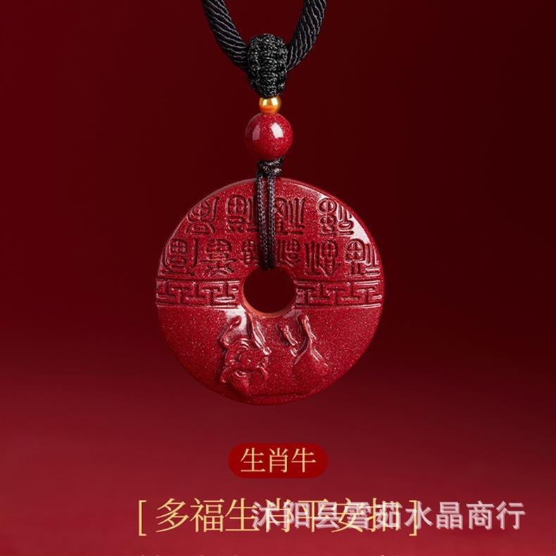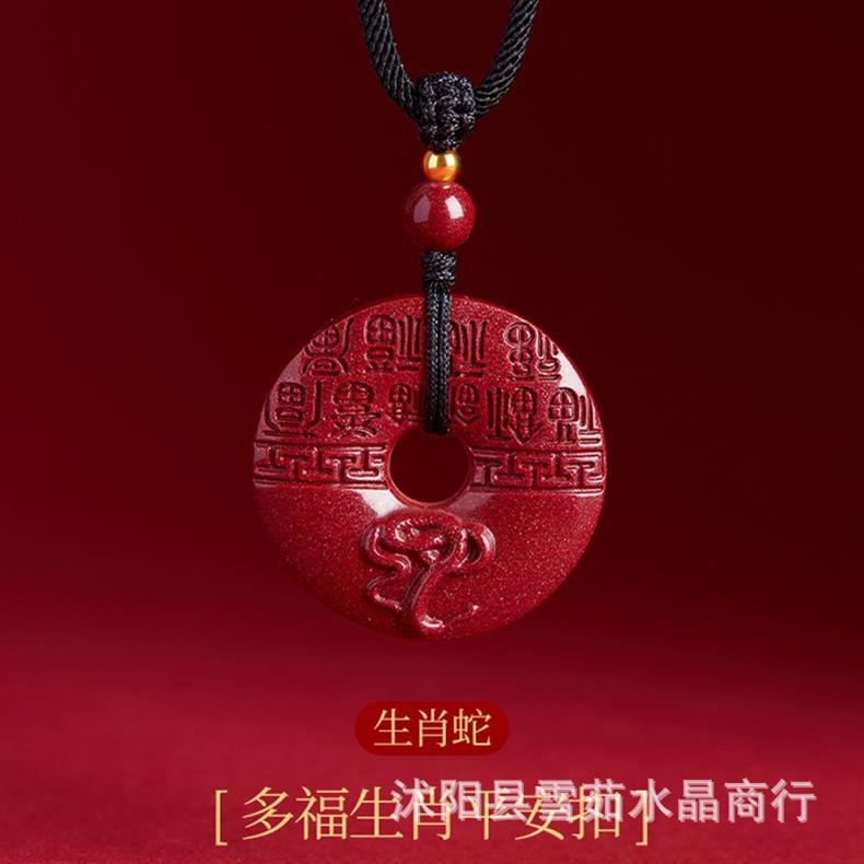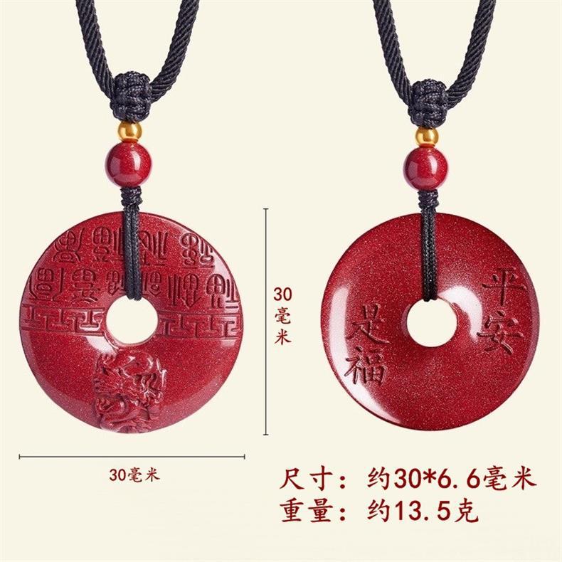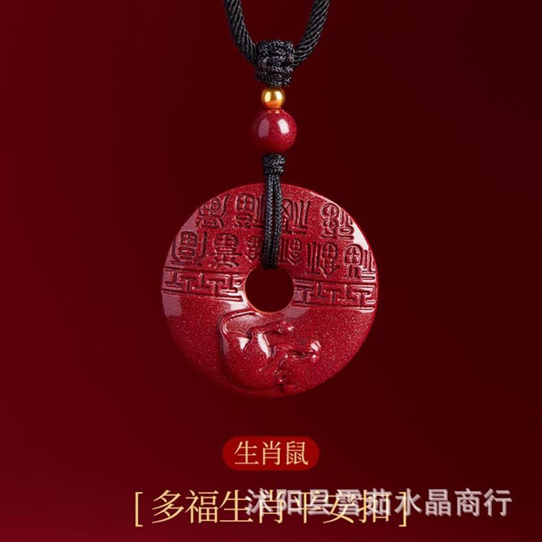 Collar con colgante de hebilla de cinabrio Ping An, colgante de oro púrpura de alto contenido, arena Duofu, colgante de doce años del zodíaco