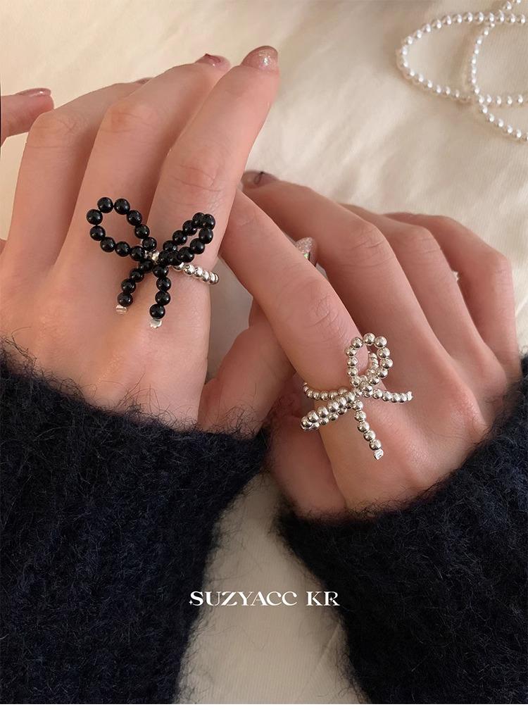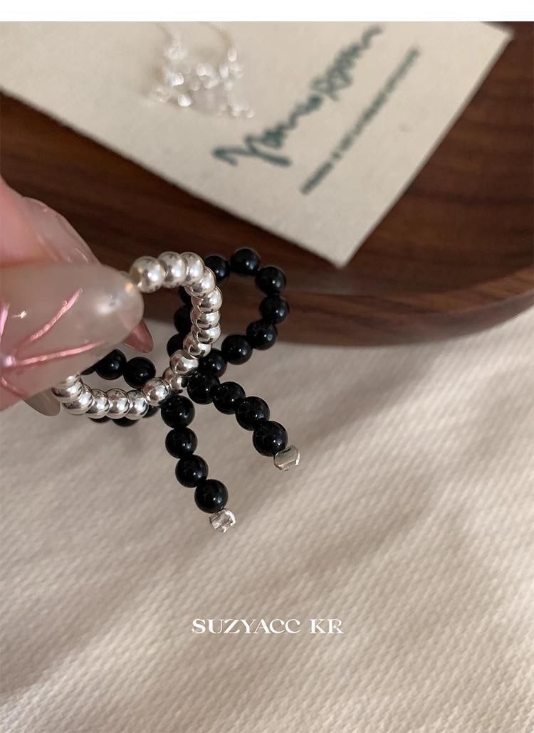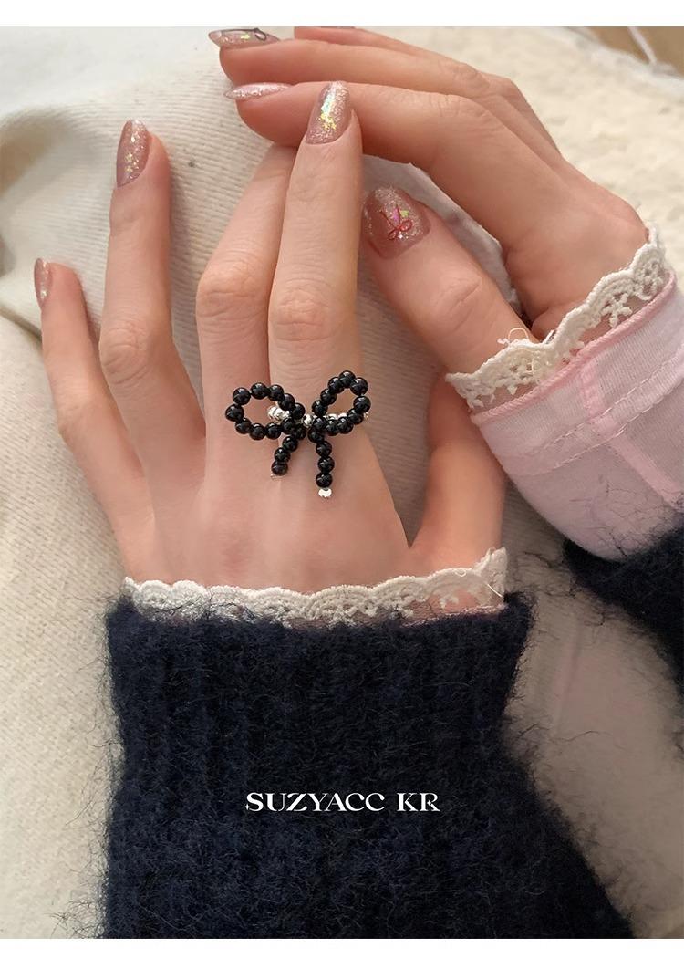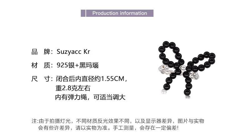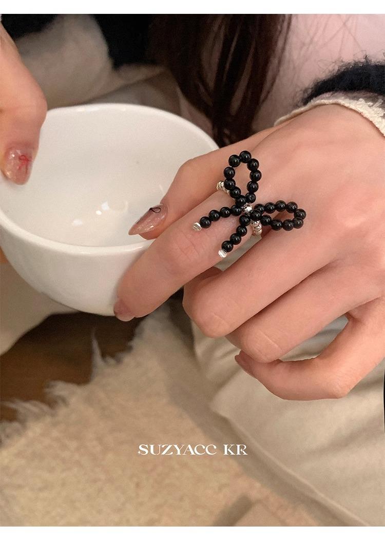 Anillo de ágata negra con lazo, ligero y de lujo, de alta gama, hecho a mano, con diseño de nicho puro.