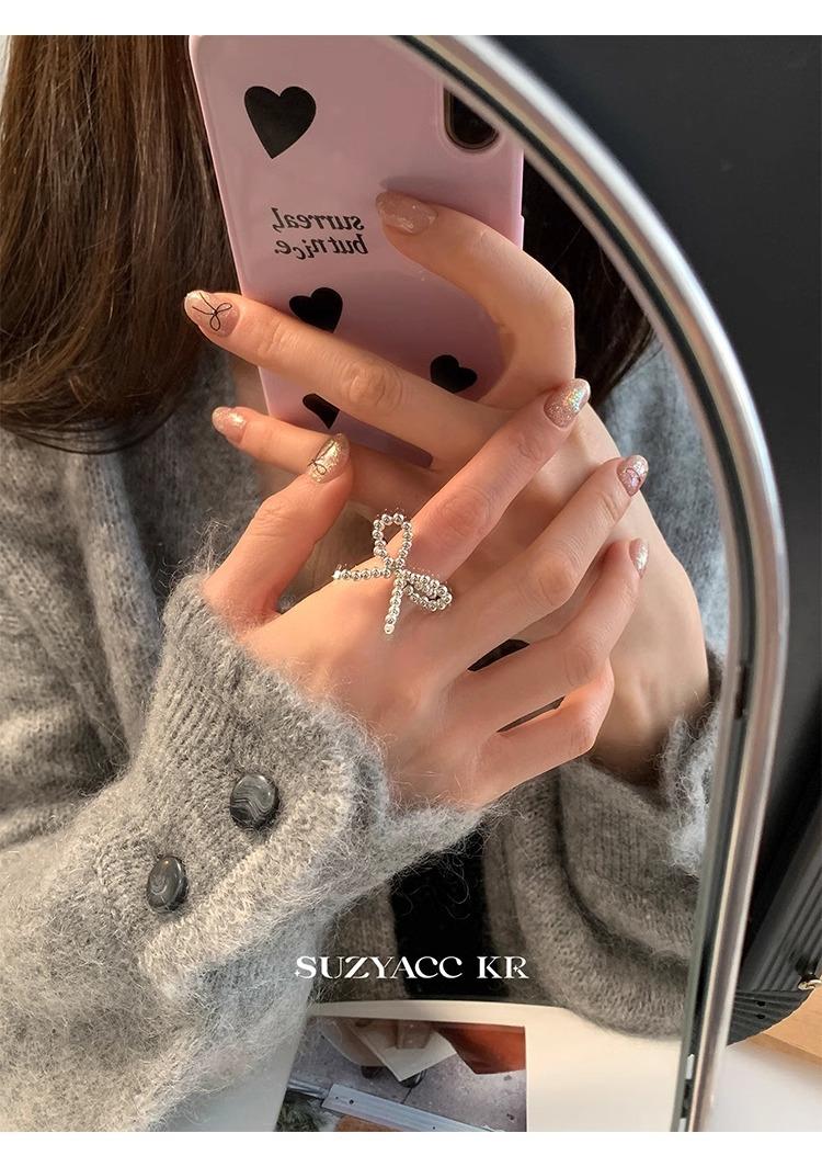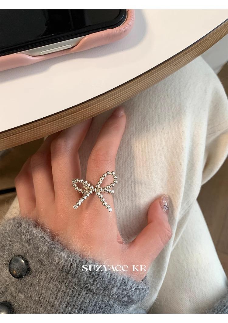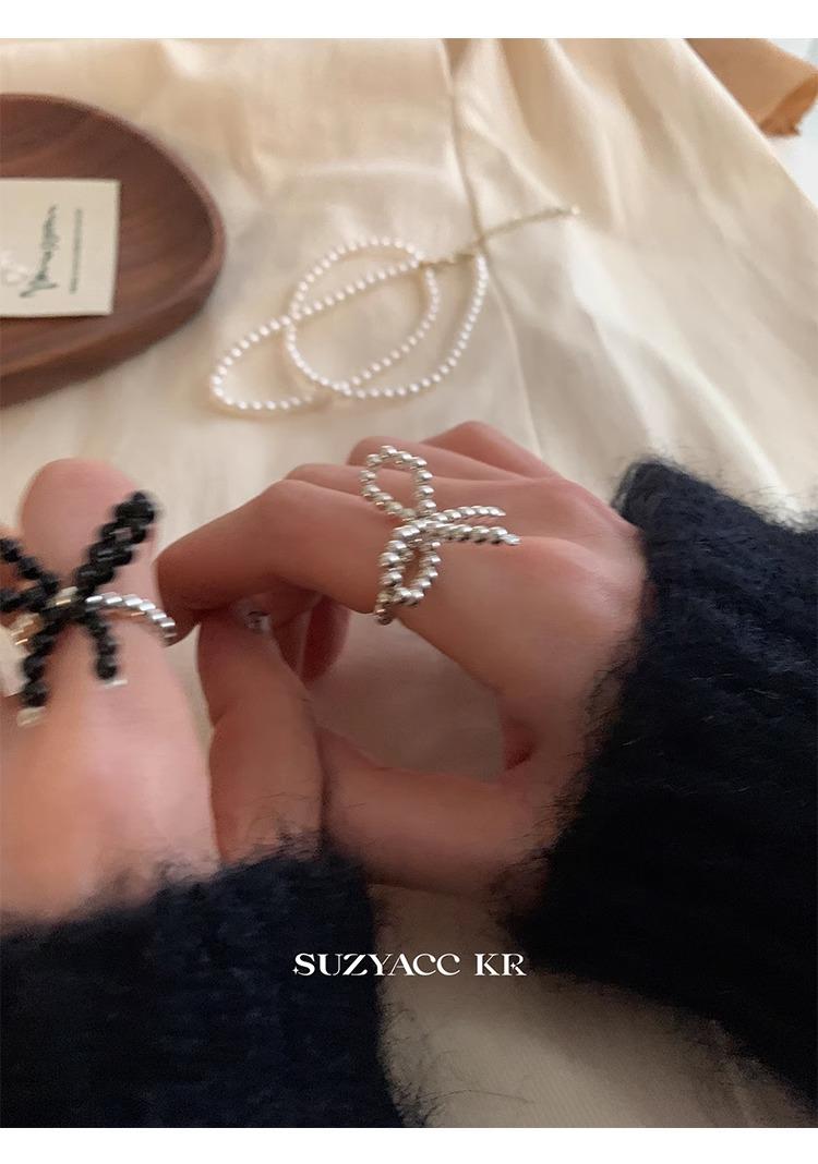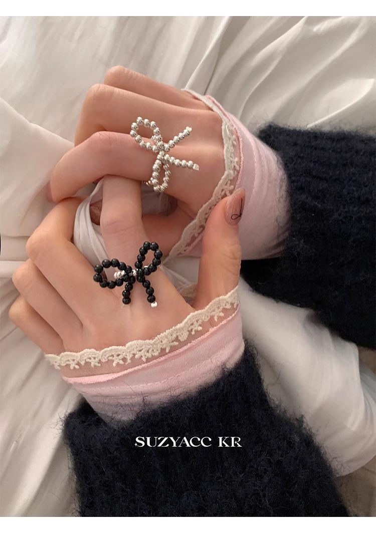 Anillo de ágata negra con lazo, ligero y de lujo, de alta gama, hecho a mano, con diseño de nicho puro.