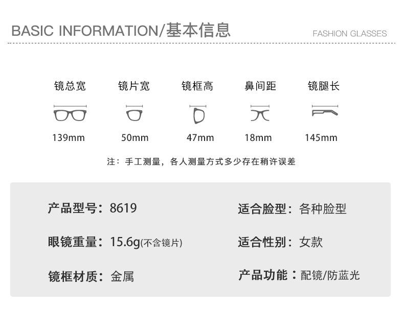 Black frame, Rose gold frame, Black silver frame, Green silver frame, Tea gold frame, Blue-green frame