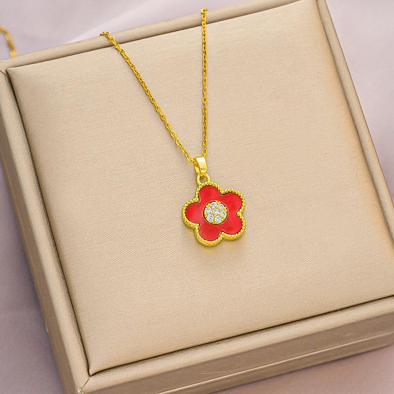 Collar retro de flores pequeñas con baño de cobre dorado y cadena Joker de lujo, estilo celebridad de Internet europea y americana, venta al por mayor.