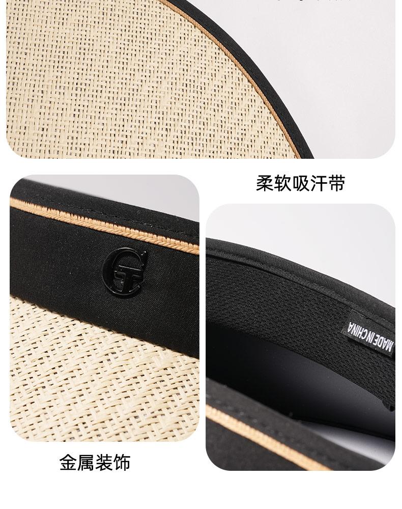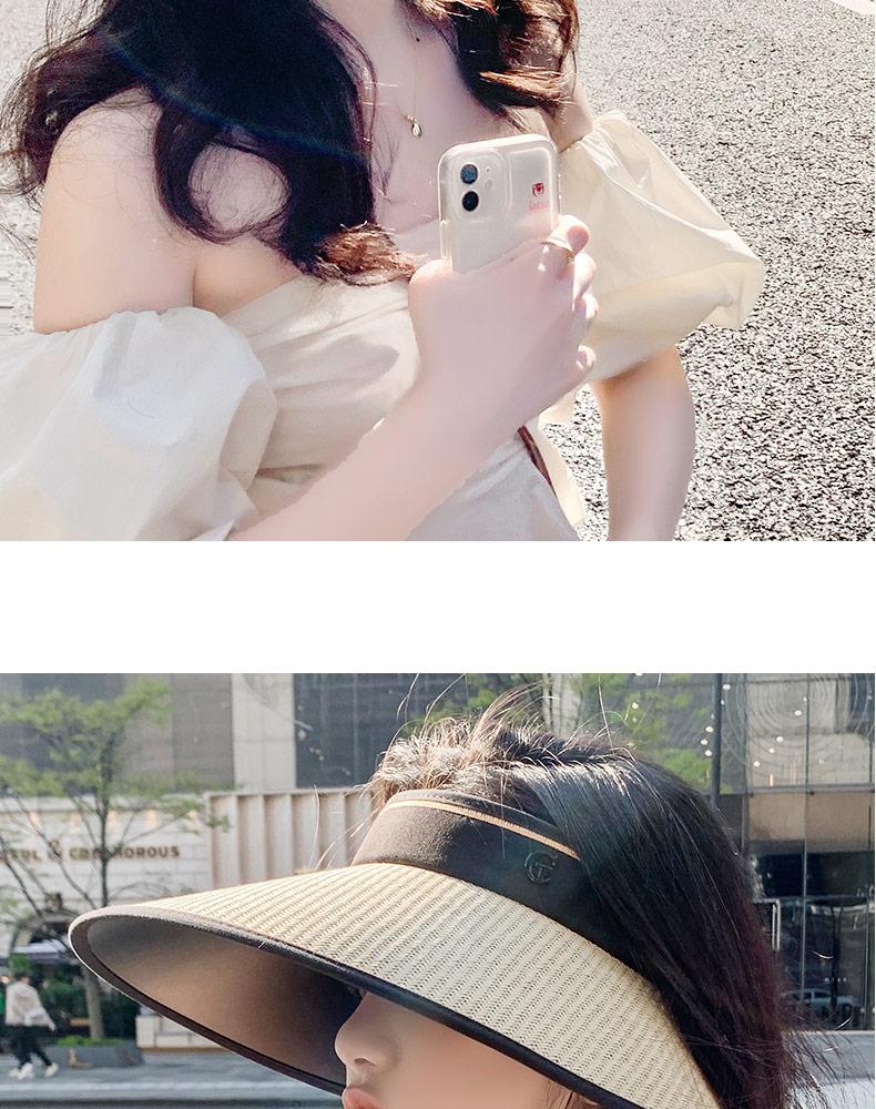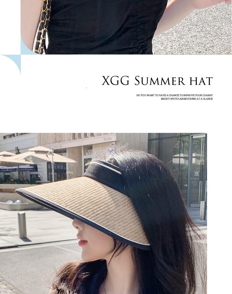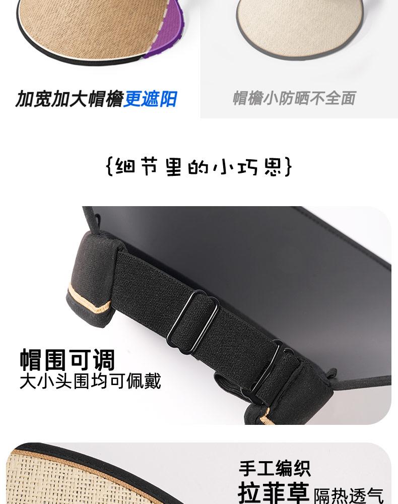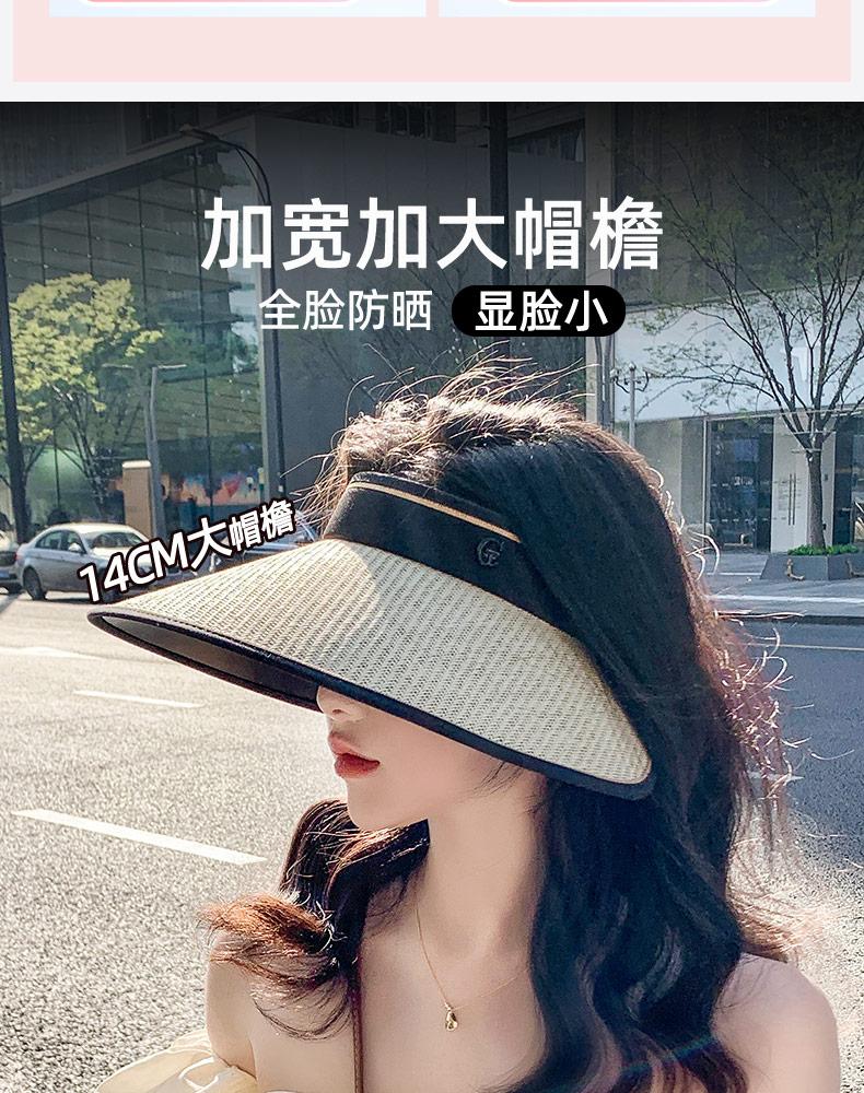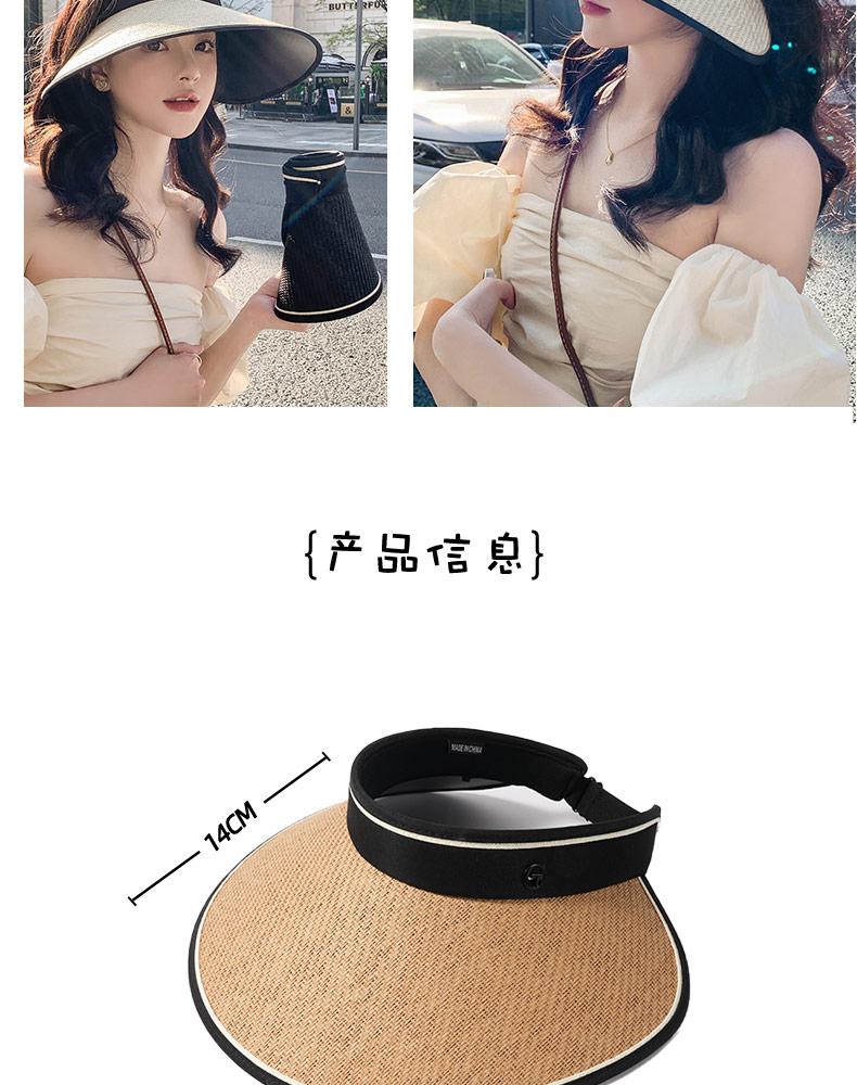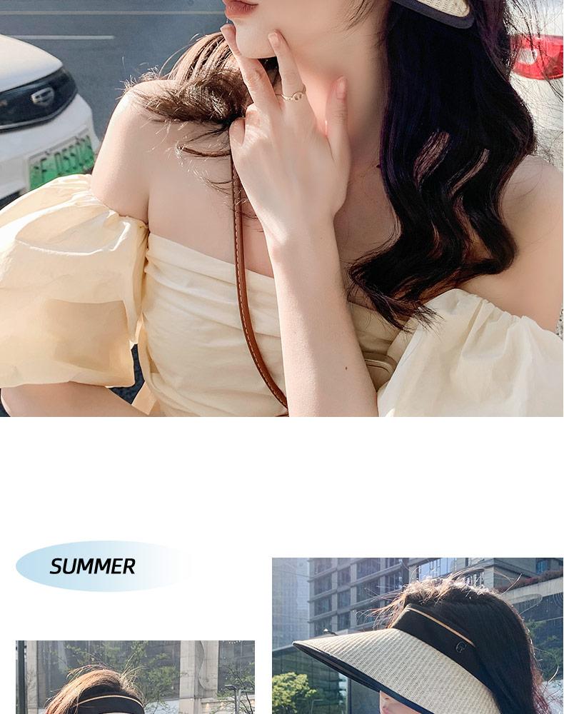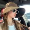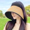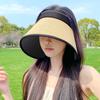 Sombrero de Sol de Verano de Ala Ancha Anti-UV de Copa Vacía para Mujer Sombrero de Sol Sombrero de Paja Sombra Facial Paja Plegable