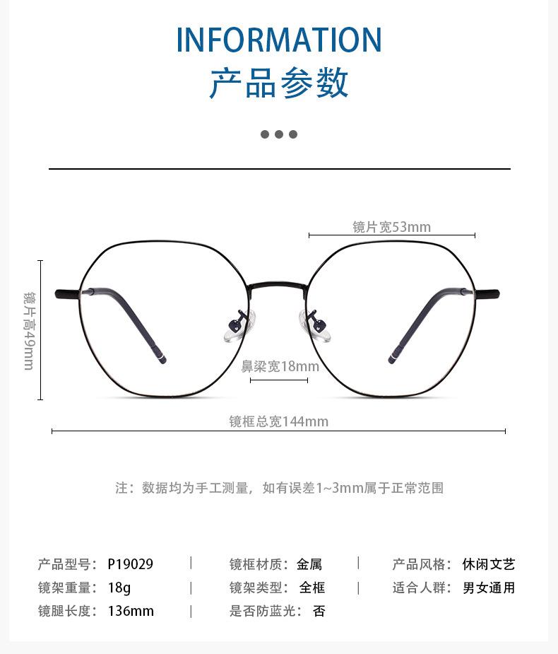 Nuevas gafas de montura metálica ultraligeras para hombre y mujer 19029, montura moderna y versátil con gafas para miopía.