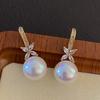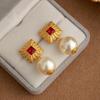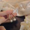 Aretes de perlas con textura metálica aretes de nicho de lujo ligero de alta gama aretes de aguja de plata 925 joyería de estilo frío para mujer suministro al por mayor
