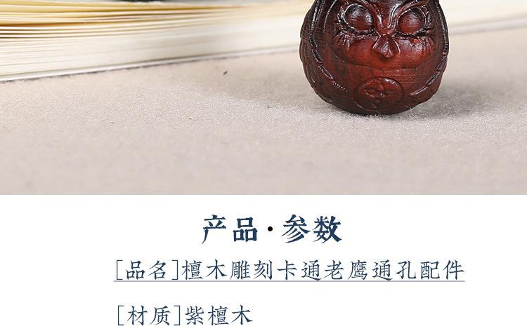 Venta al por mayor de fábrica de búho tallado en sándalo rojo, colgante creativo DIY con texto, juego de pulsera, accesorios para bolso de teléfono móvil