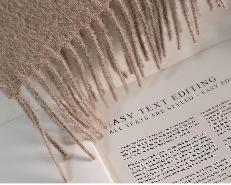 Bufanda de lana al por mayor, bufanda de color liso para mujer, bufanda para todo tipo de ocasiones, otoño e invierno, chal grueso y cálido, bufanda roja con borlas sencillas