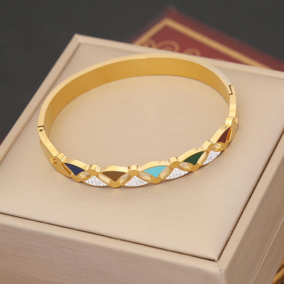Pulsera de acero inoxidable estilo retro con ojo de diablo y diamantes de imitación, B440