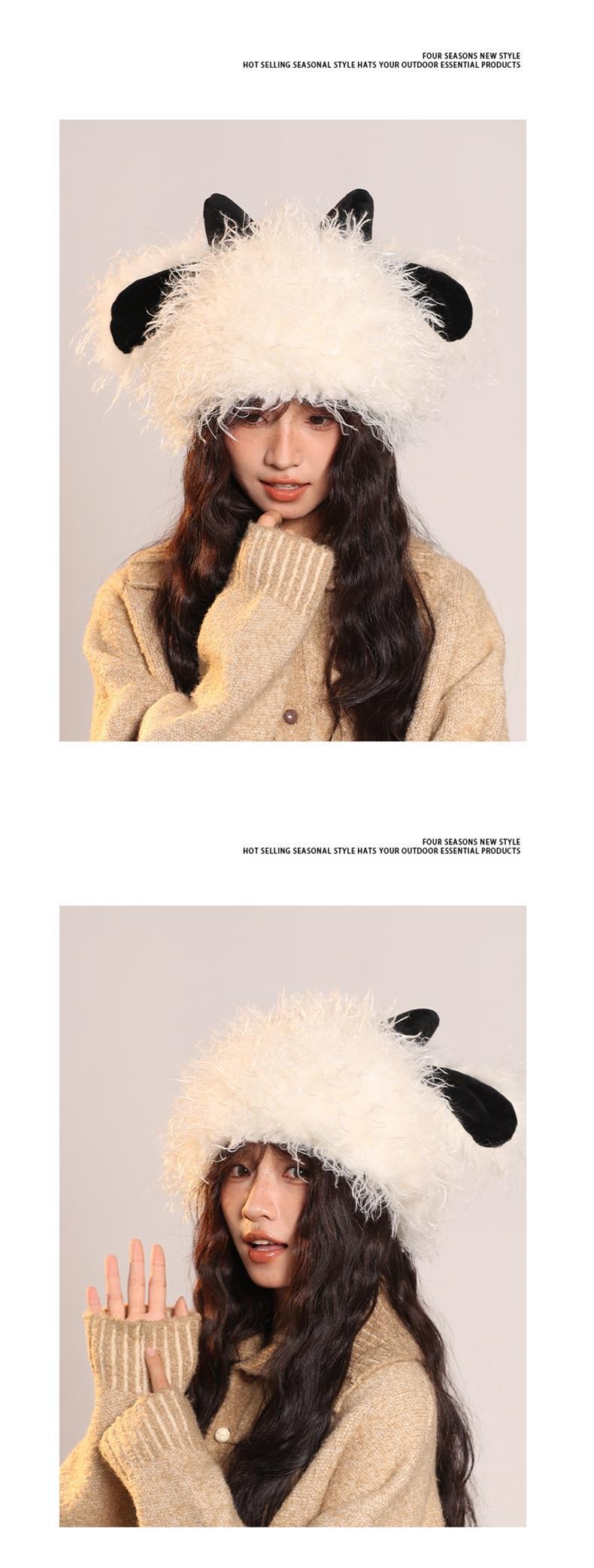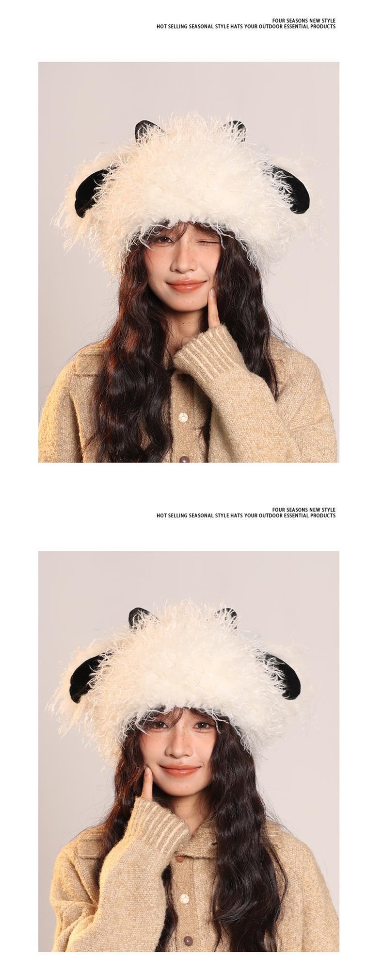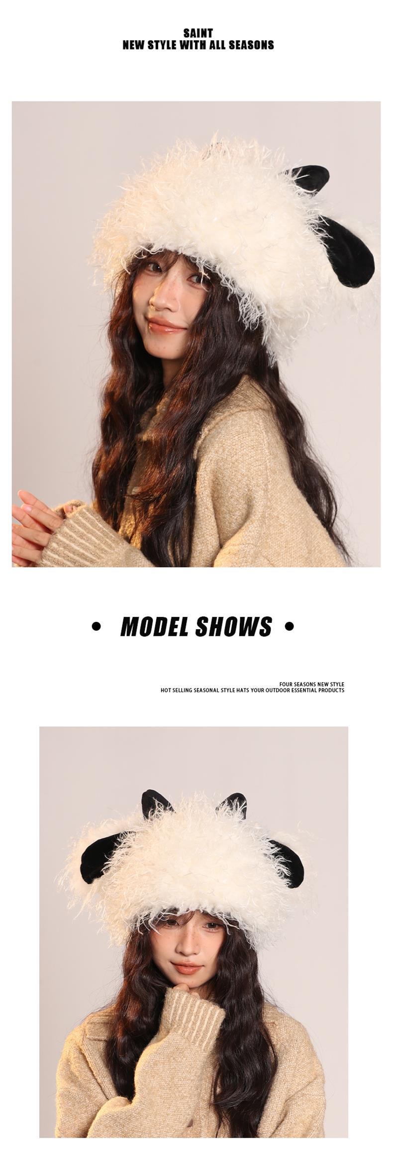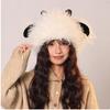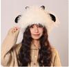 Lindo Gorro Pulóver de Felpa Frita con Cuernitos para Mujer Otoño e Invierno con Forro Polar Engrosado para Esquí Cálido con Protección para las Orejas Gorro Lei Feng Trendy