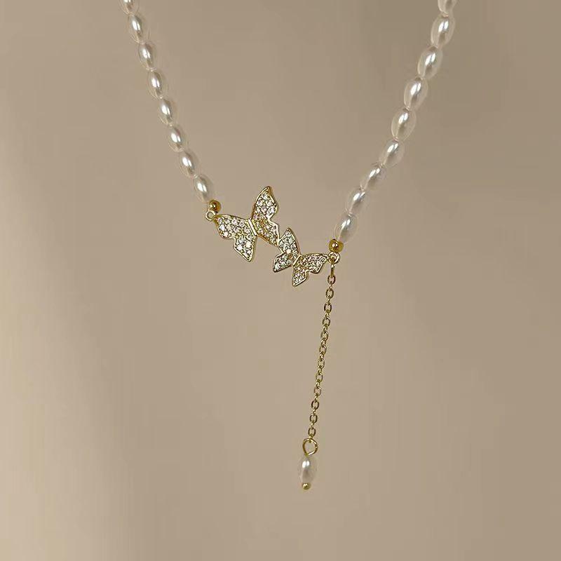 Collar de lujo ligero y moderno para mujer, diseño de nicho de verano, cadena de clavícula de acero de titanio de alta calidad, joyería de perlas al por mayor