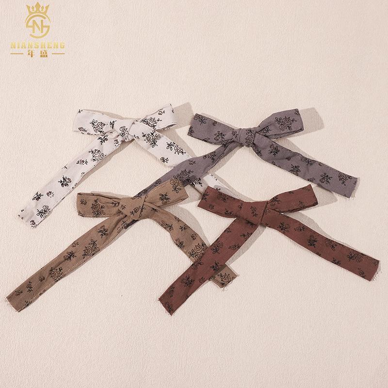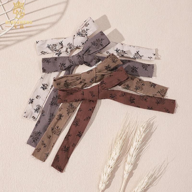 Nuevo y lindo accesorio para el cabello con lazo estilo coreano Ins, con estampado de flores para bebés, disponible al por mayor.