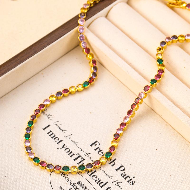 Compra Collar de dopamina con circonitas de colores, de gran venta transfronteriza, de alta calidad y combinable, para mujer, con cadena de clavícula. al por mayor en Joom.pro