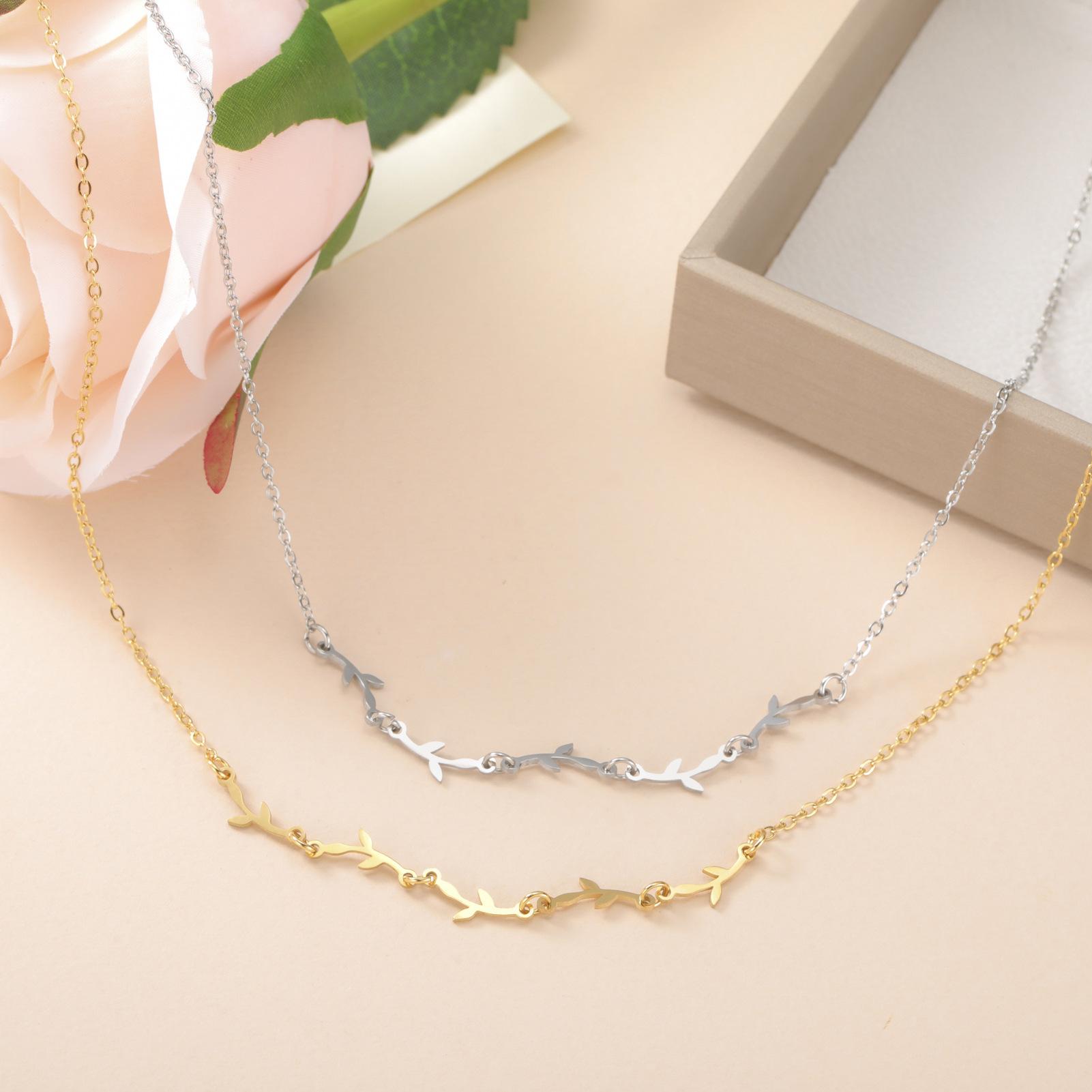 Collar de cadena clavicular de acero de titanio de corte caliente para comercio exterior 5 colgante de hierba de doble agujero para damas collar de acero inoxidable 304