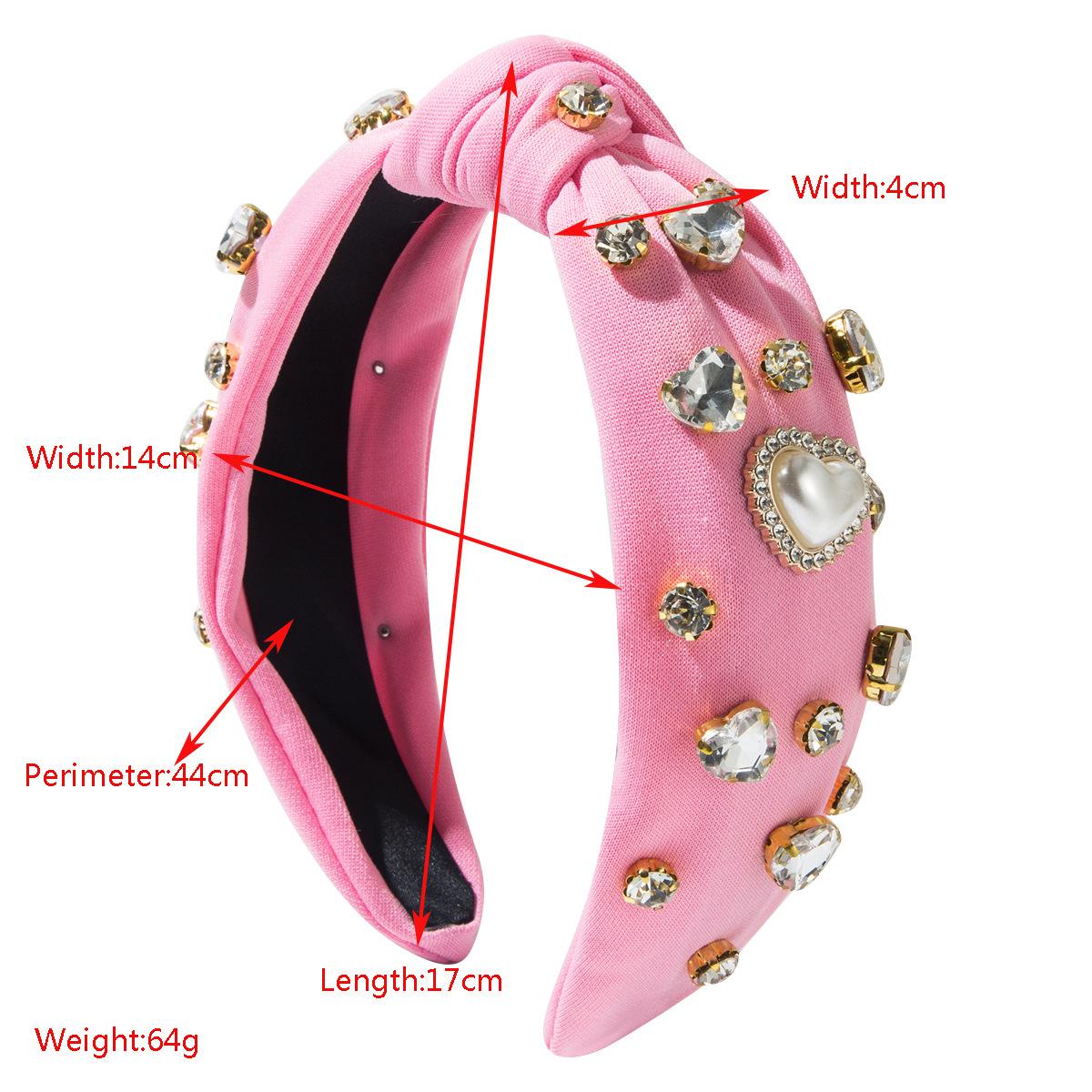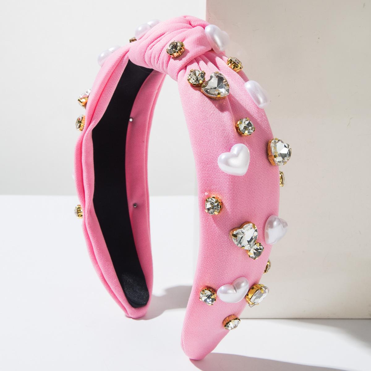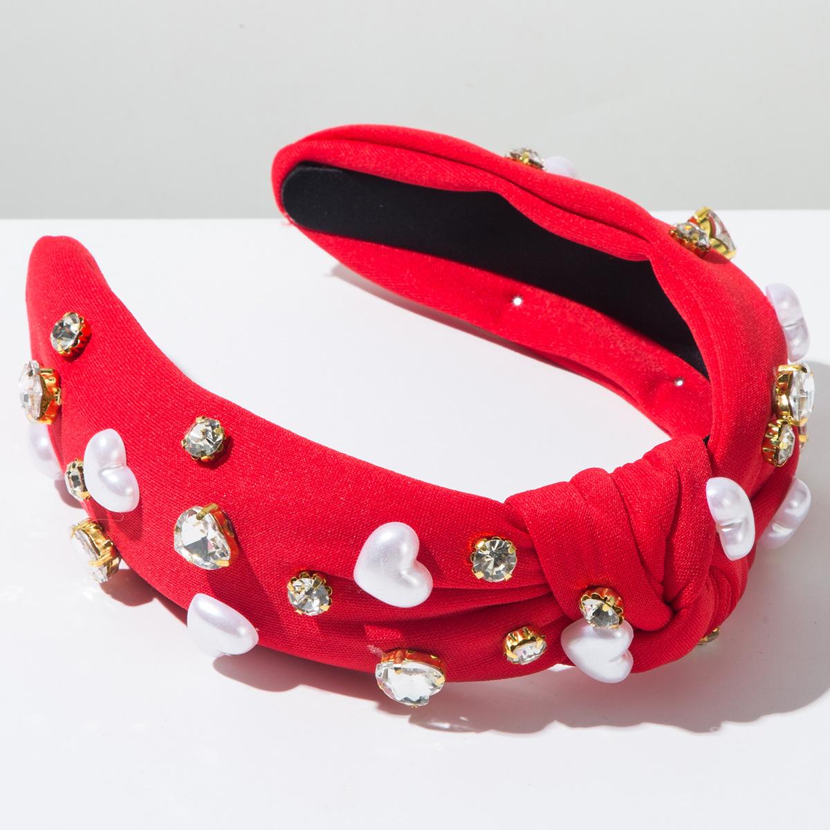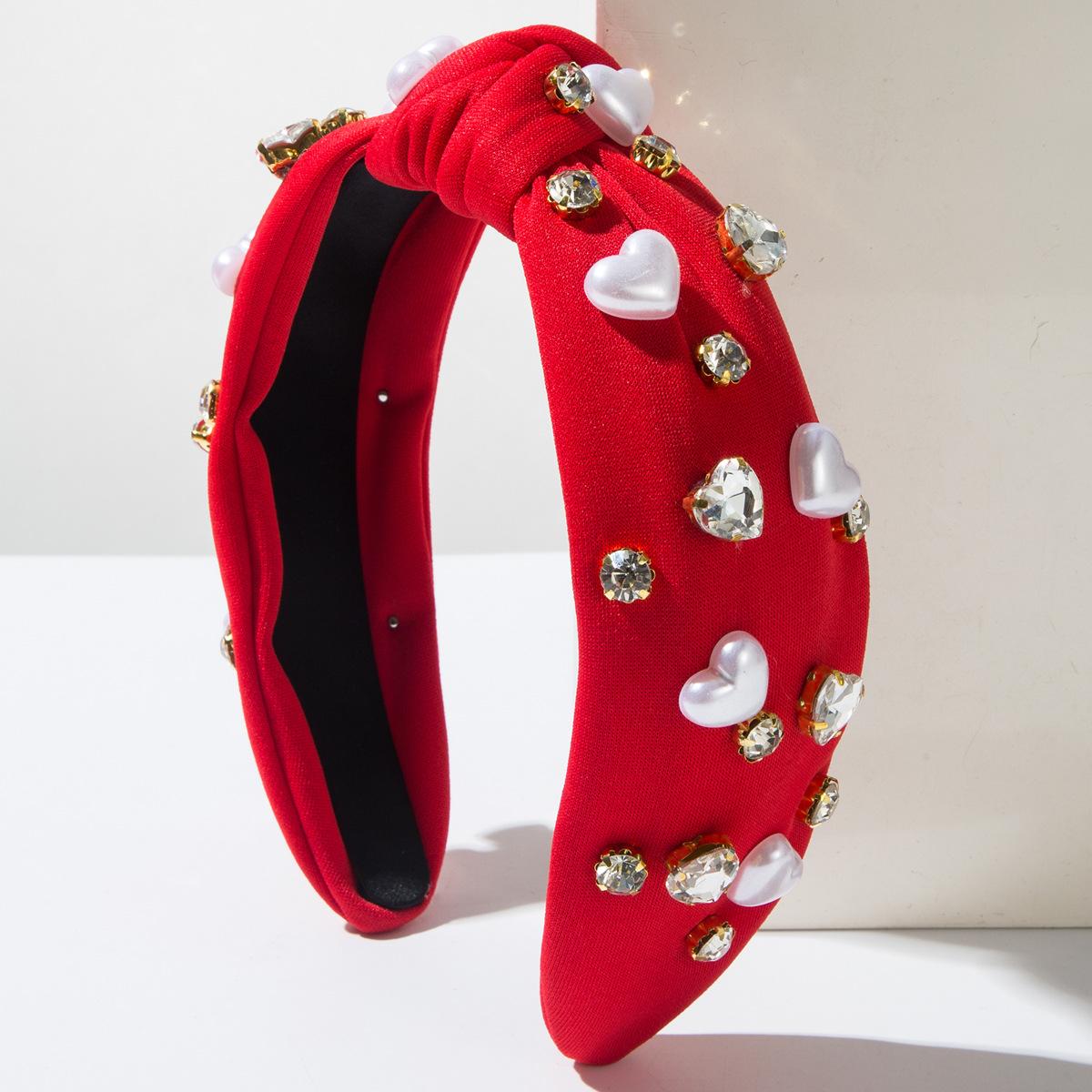 Diadema con accesorios de amor nuevos de estilo europeo y americano con incrustaciones de diamantes y perlas, con calavera alta anudada en la parte superior, versátil, para el día de San Valentín, accesorios para el cabello al por mayor ¥13.50 |