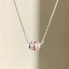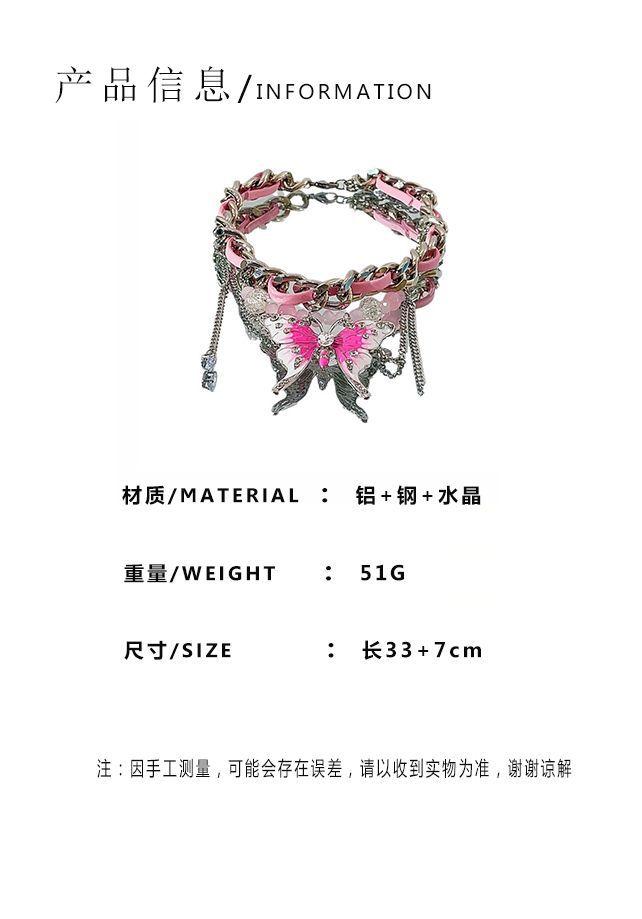 Pink butterfly leather necklace [chain length 33cm+7cm]