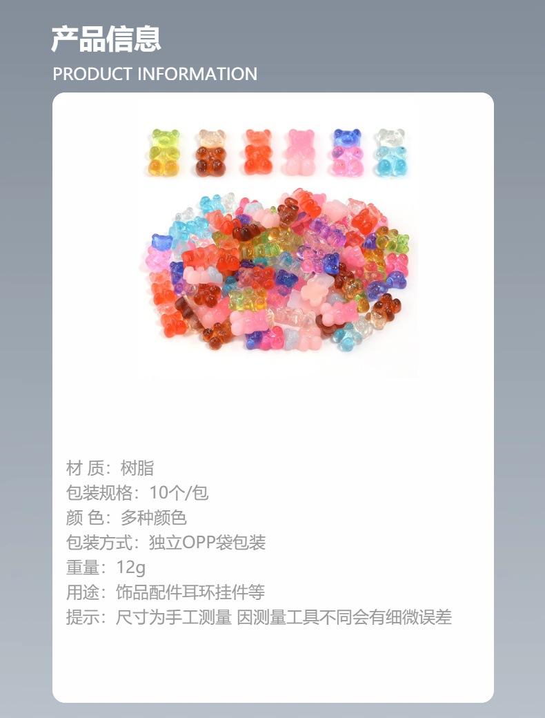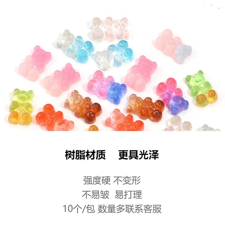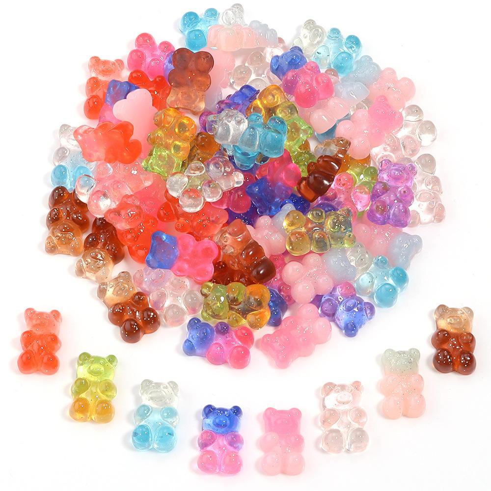 Pendientes de oso de gelatina de color caramelo de resina con purpurina de dos colores, colgantes de moda hechos a mano, pendientes de bricolaje, colgante de joyería