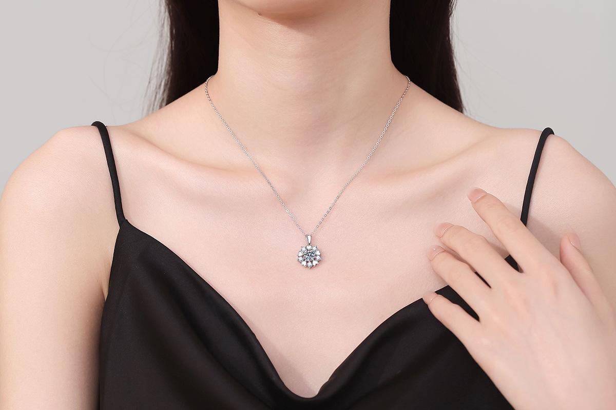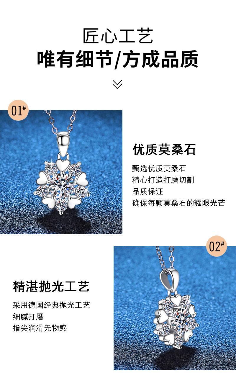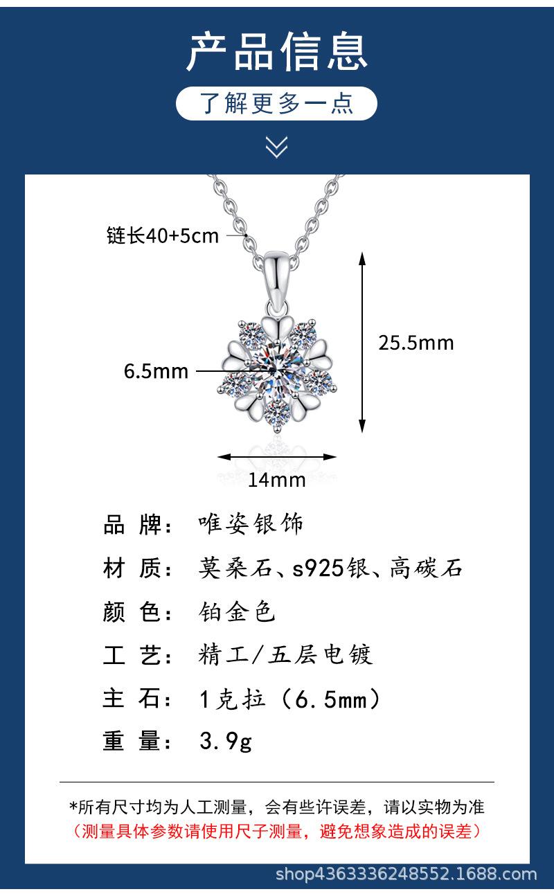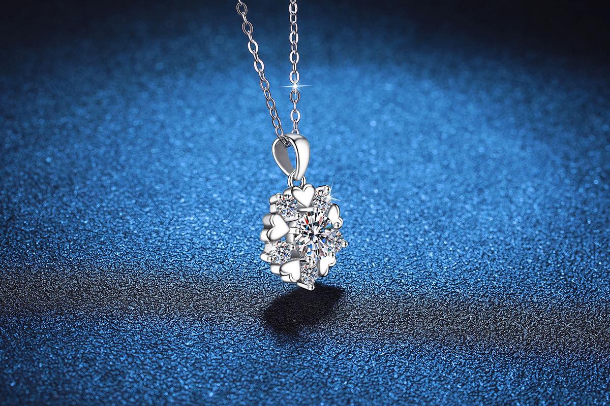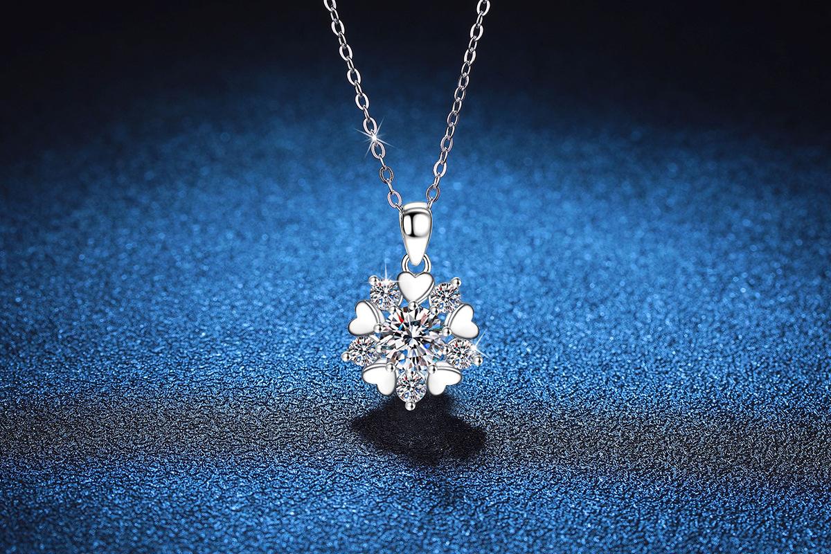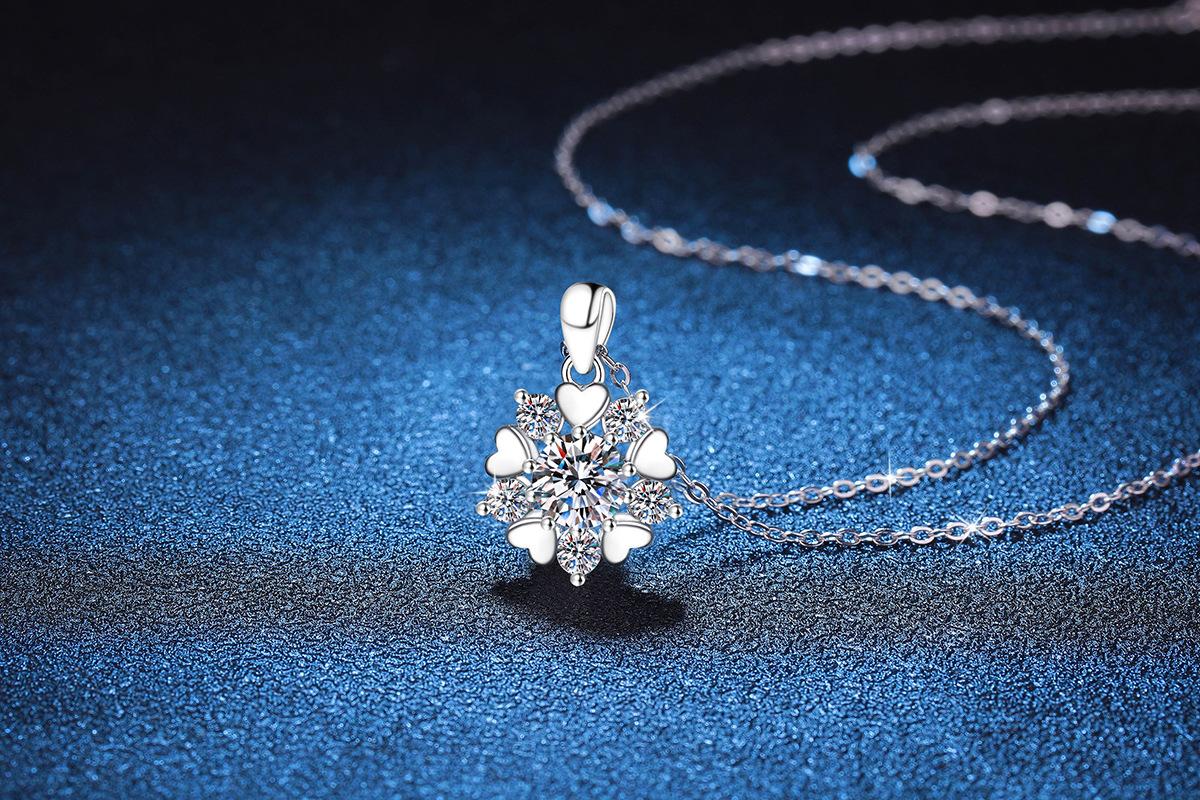 Collar de plata de ley s925 con colgante de moissanita, regalo de Navidad, collar de copo de nieve de amor, collar de moissanita de color D de 1 quilate.
