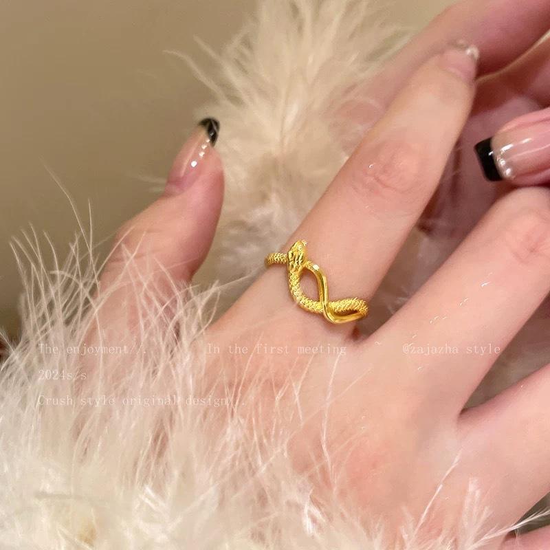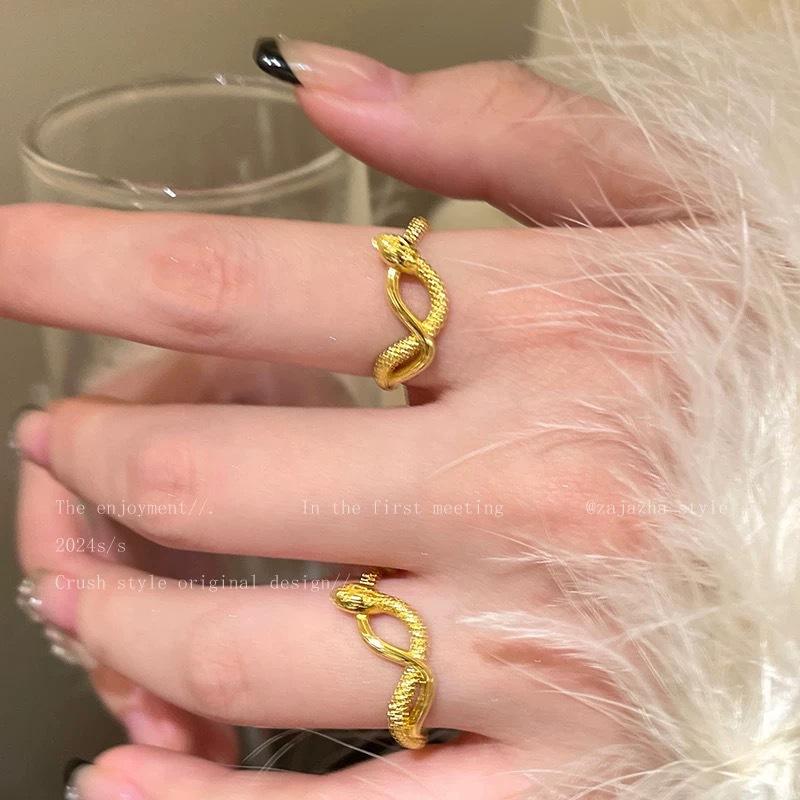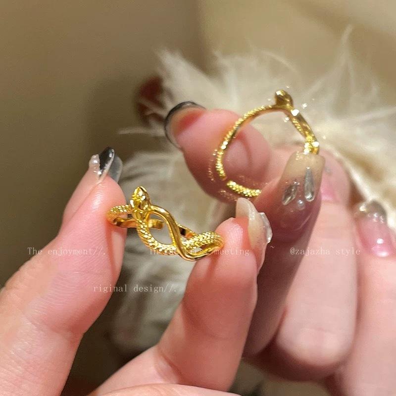Anillo Abierto Enroscado de Serpiente Dorada para Mujer Año Nuevo del Zodíaco de la Serpiente Anillo de Cumpleaños Anillo de Dedo de Moda de Alta Gama