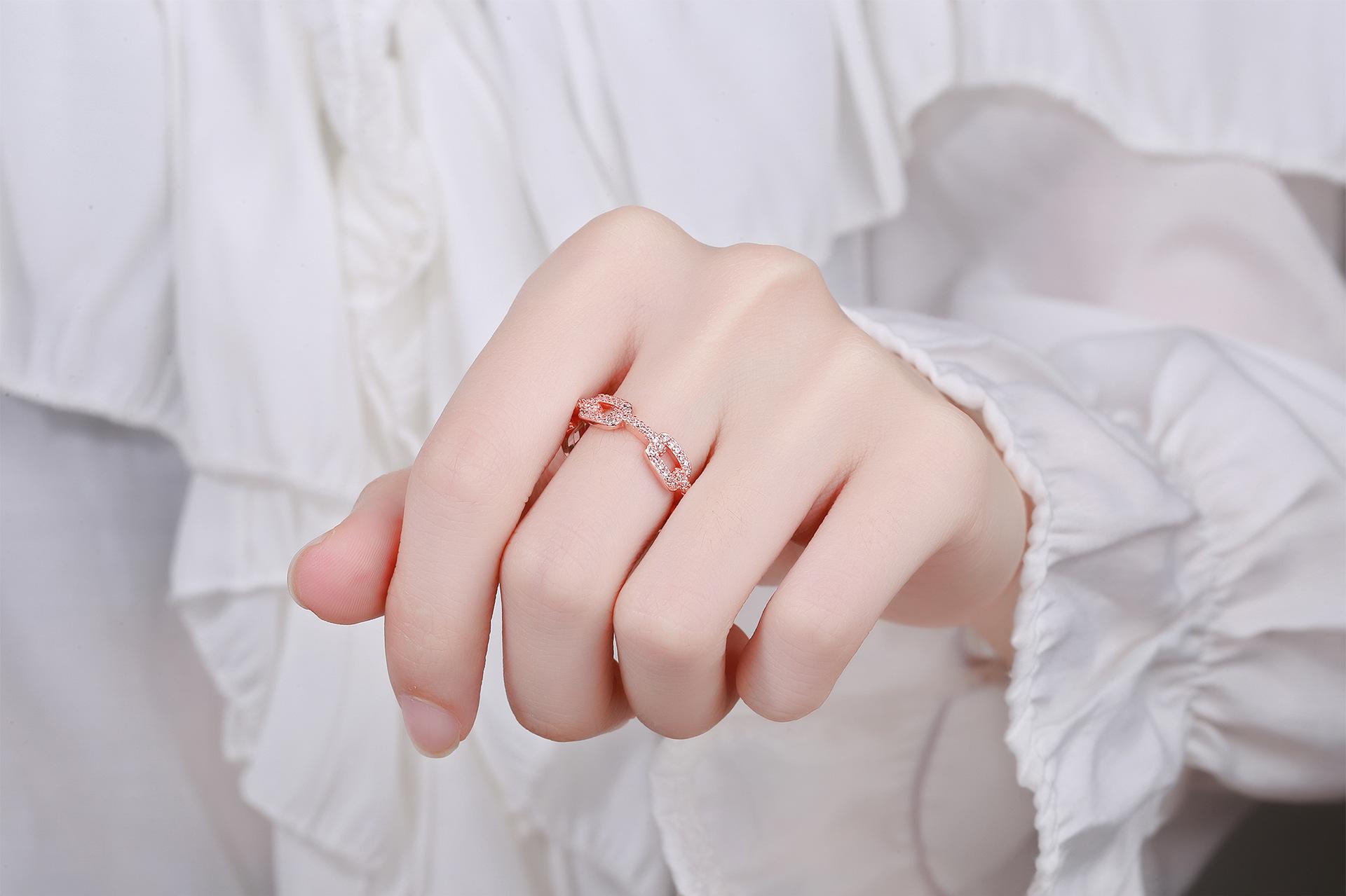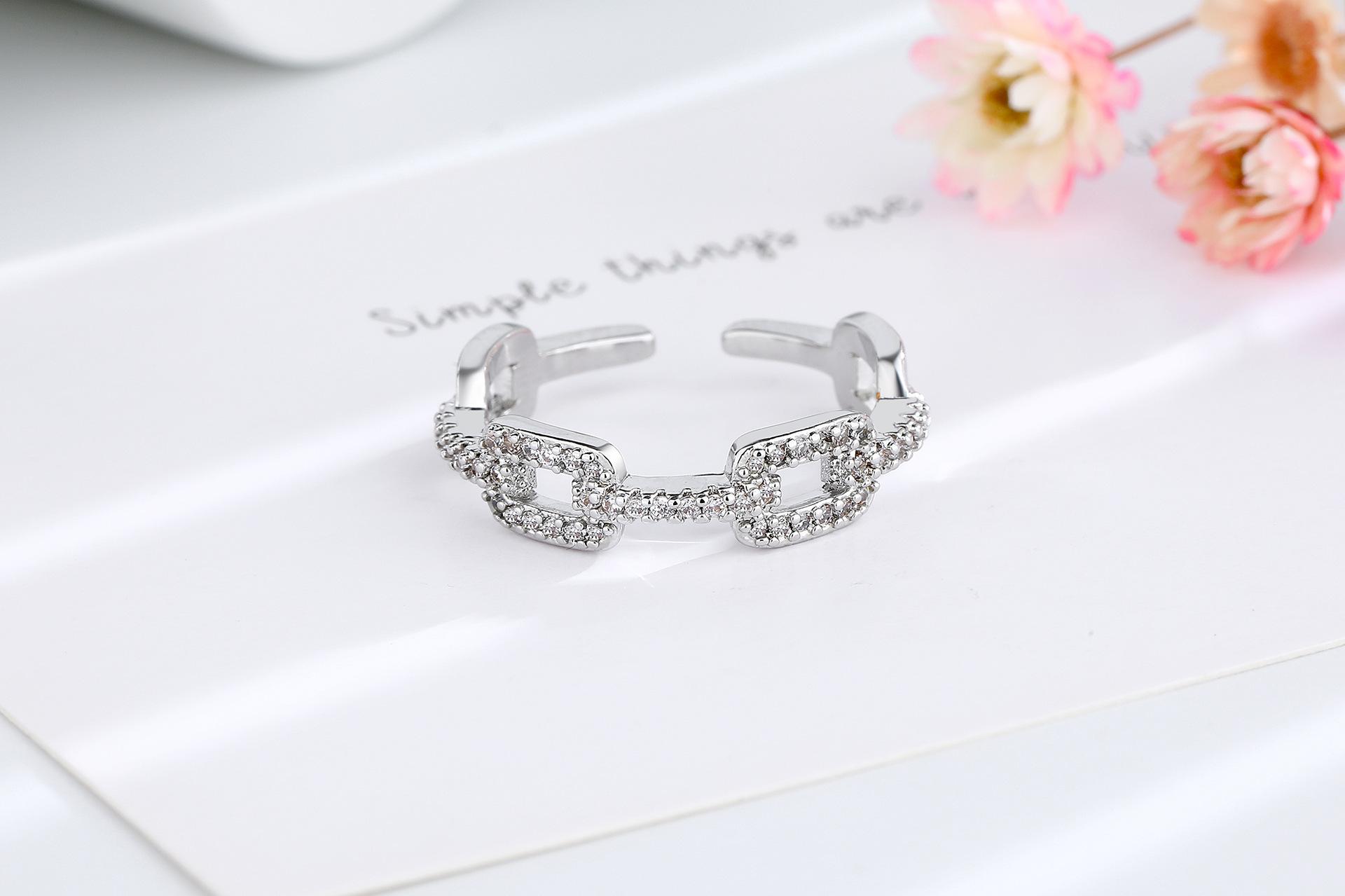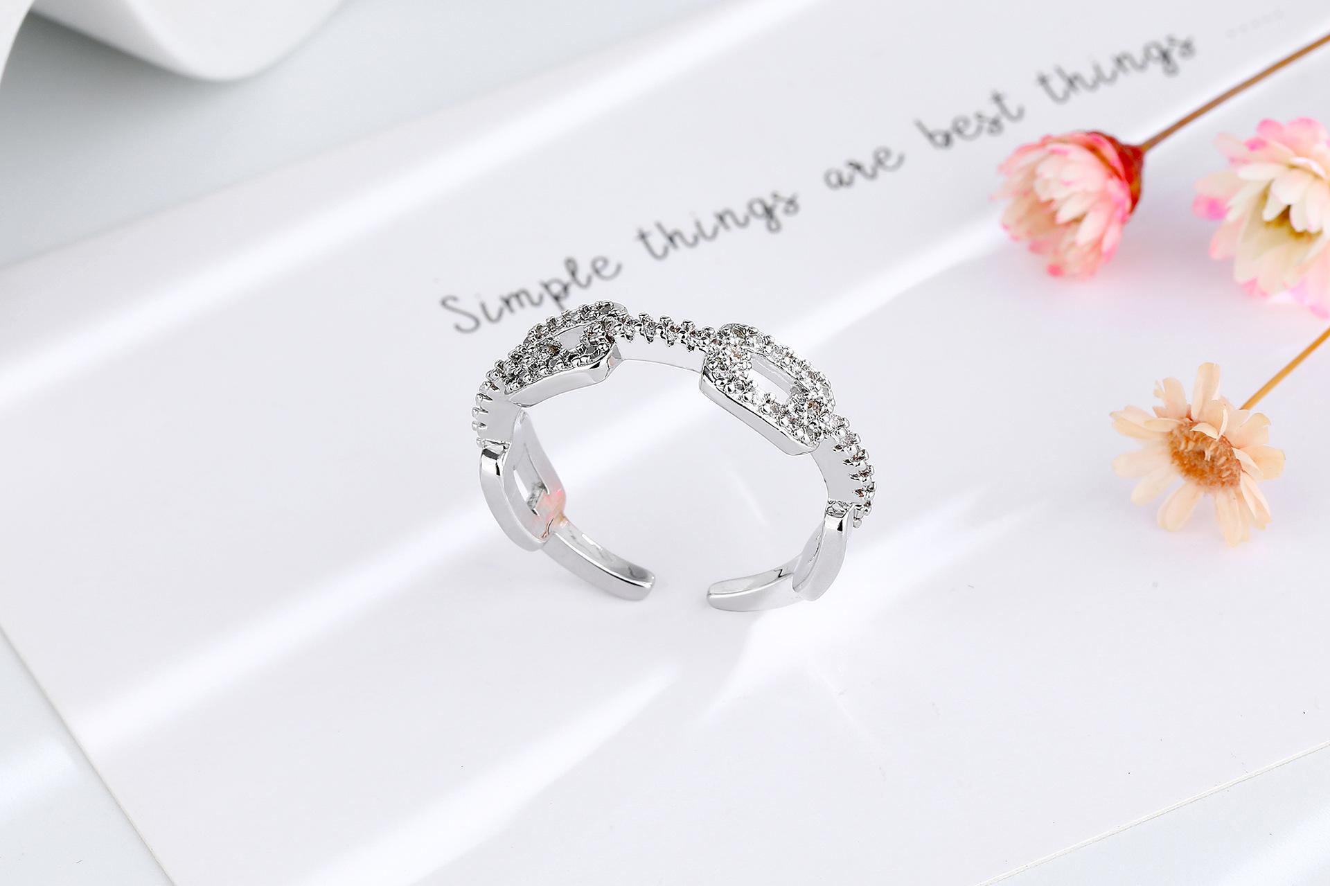 Anillo de Cadena de Venta Caliente Transfronterizo para Mujer con Circonita Incrustada de Diamantes, Abertura Ajustable, Elegante, Celebridad de Internet, Anillo de Joyería con Viento Ins