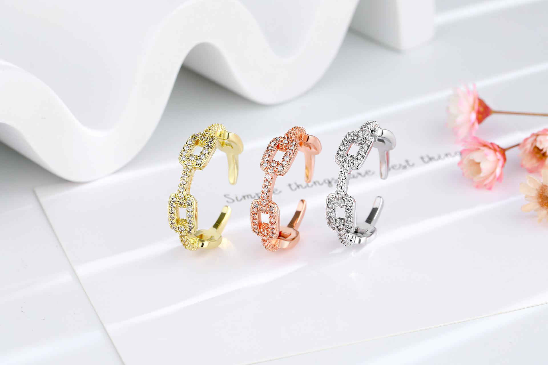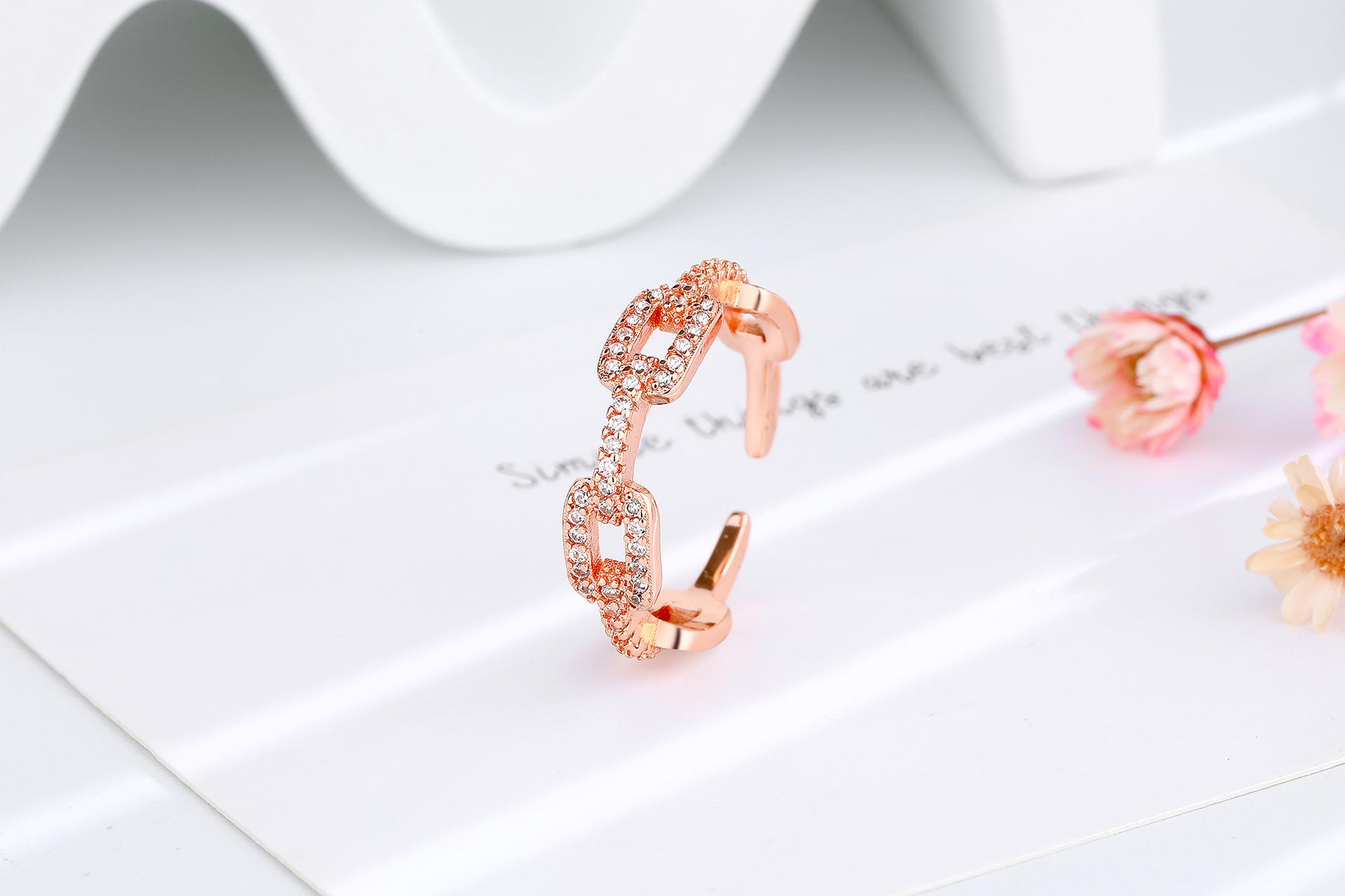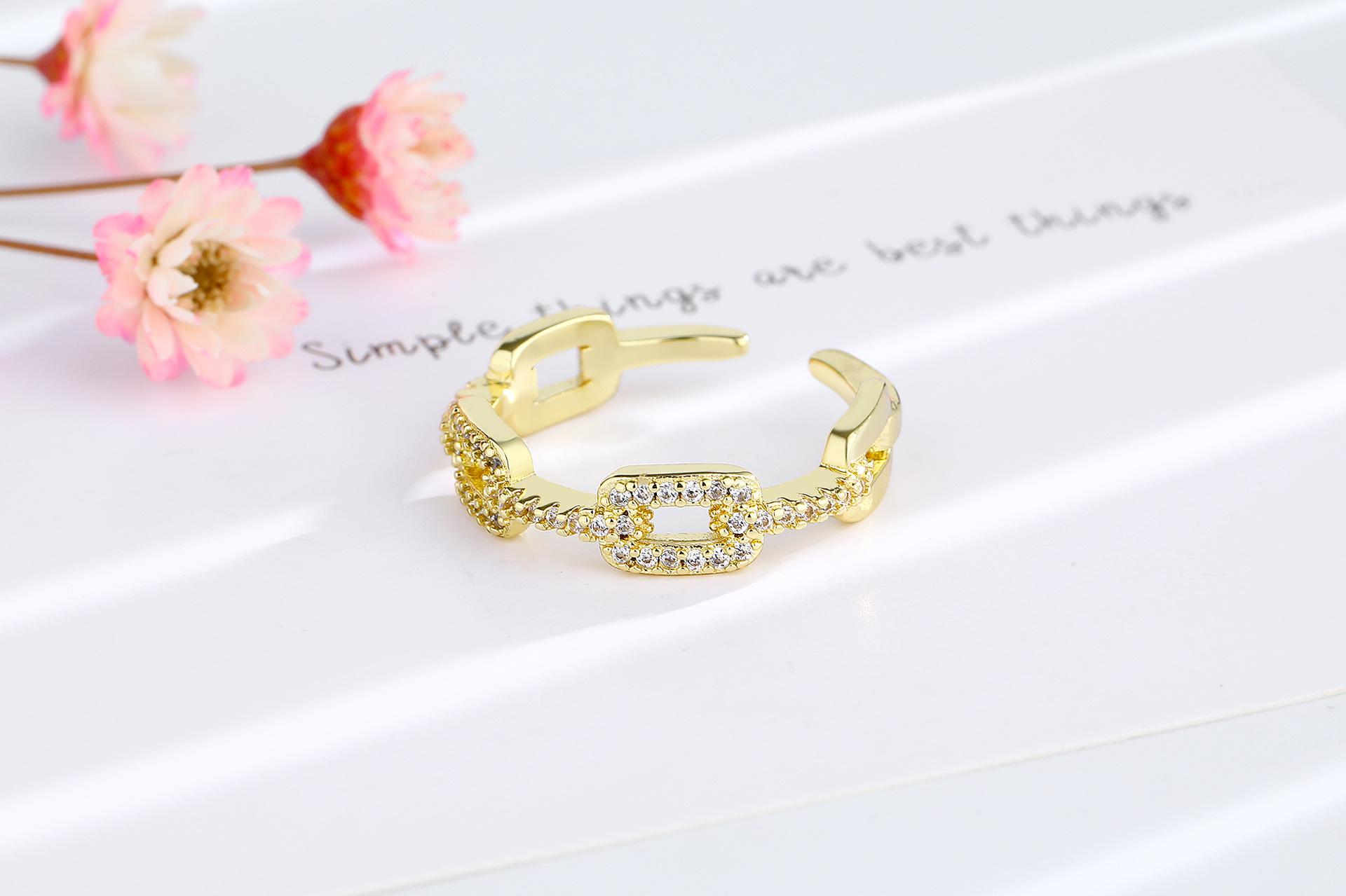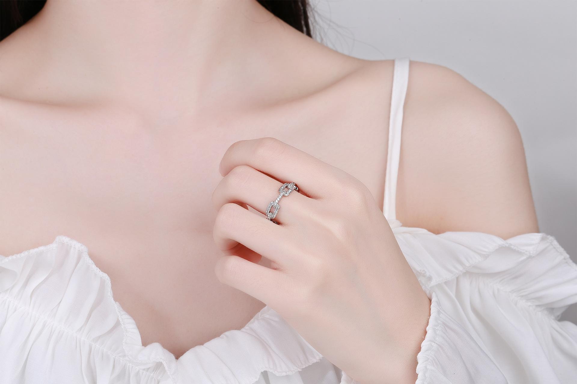 Anillo de Cadena de Venta Caliente Transfronterizo para Mujer con Circonita Incrustada de Diamantes, Abertura Ajustable, Elegante, Celebridad de Internet, Anillo de Joyería con Viento Ins
