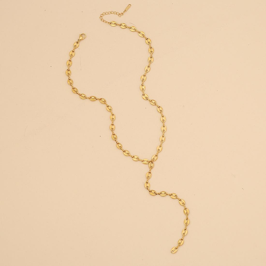 [Ice Meng] Collar de acero inoxidable en forma de Y con forma de nariz de cerdo, cadena de cuello con personalidad, cadena de clavícula cruzada N1475
