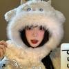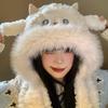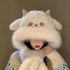 Gorro de oveja esponjoso para mujer, bonito gorro de invierno, cálido, resistente al frío, bufanda de una pieza, grueso, con protección para las orejas, gorro Lei Feng.