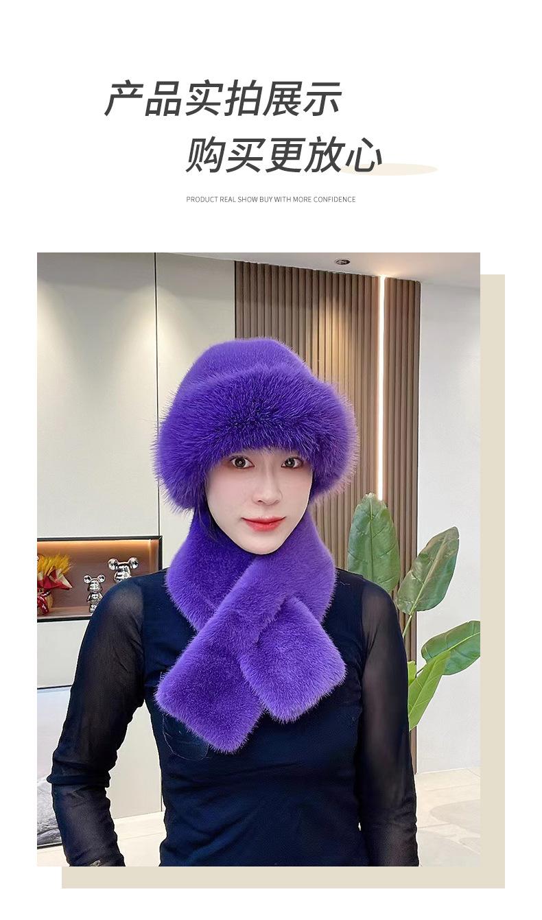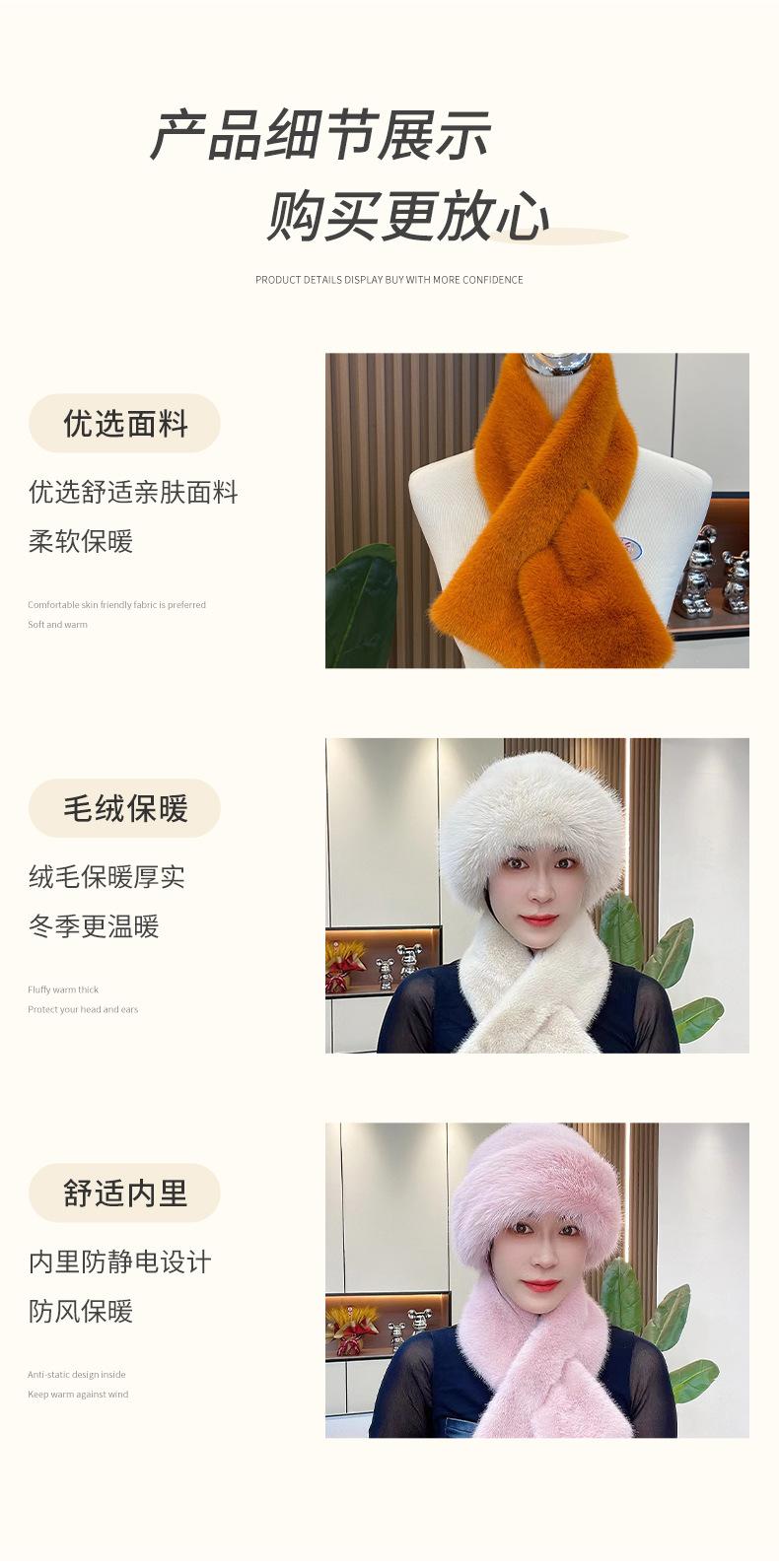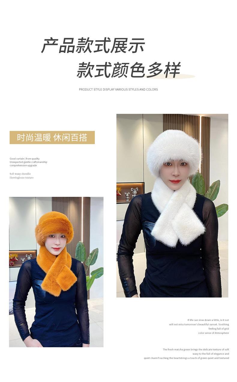 Bufanda de Invierno Sombrero Mongol Sombrero de Felpa Traje Grueso Cálido de Moda para Mujer a Prueba de Viento de Pelo de Visón de Imitación Pequeño para la Cara