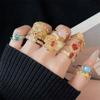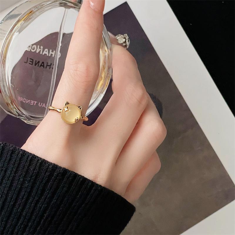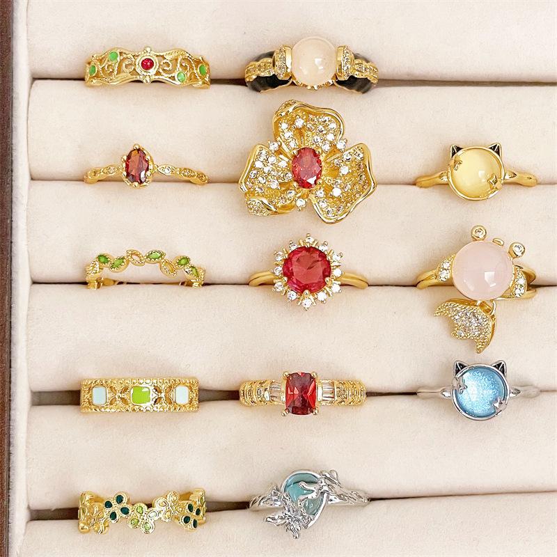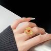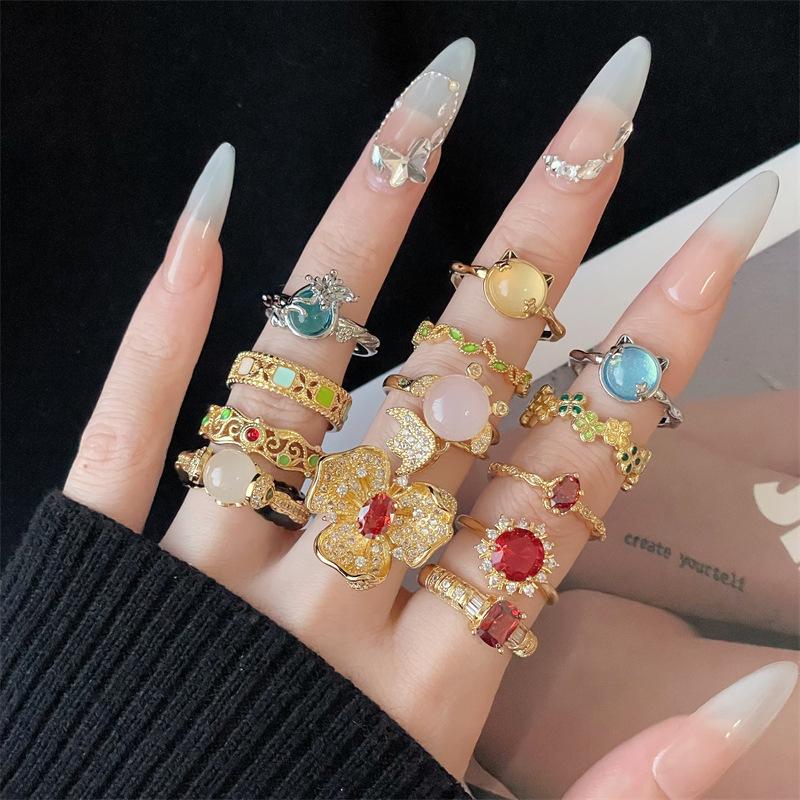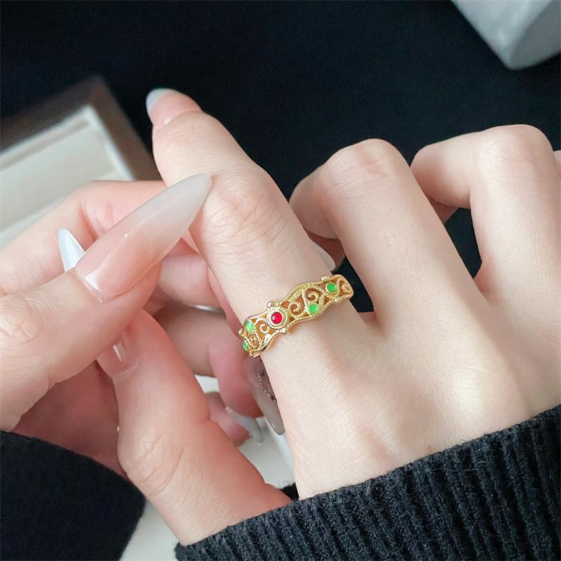 Anillo de Apertura Dorado Estilo Corte Medio Antiguo al por Mayor Hueco Elegante Lujo Ligero Sensación de Alta Gama Apilable Distintivo Anillo de Dedo para Mujer