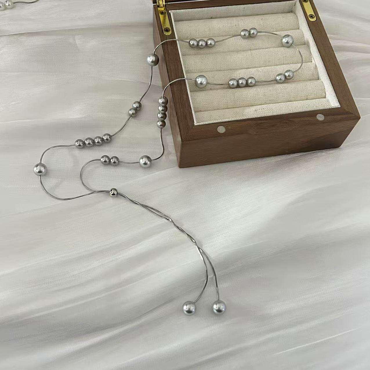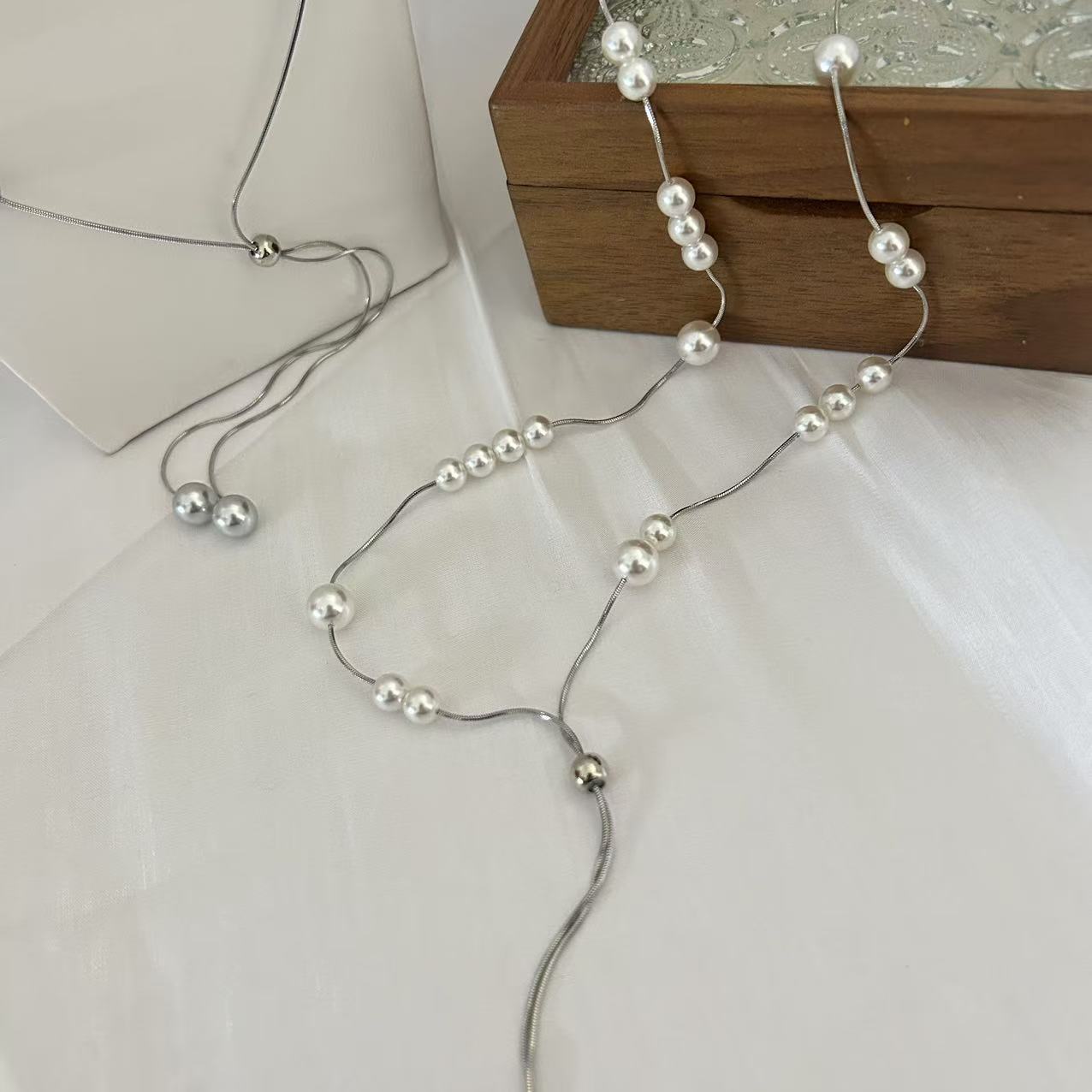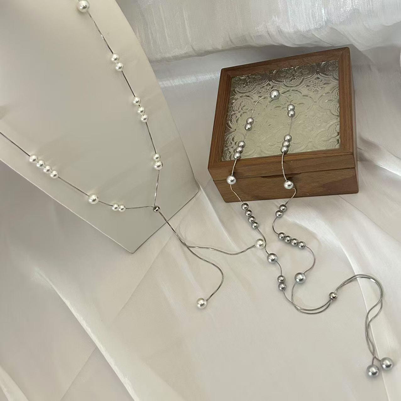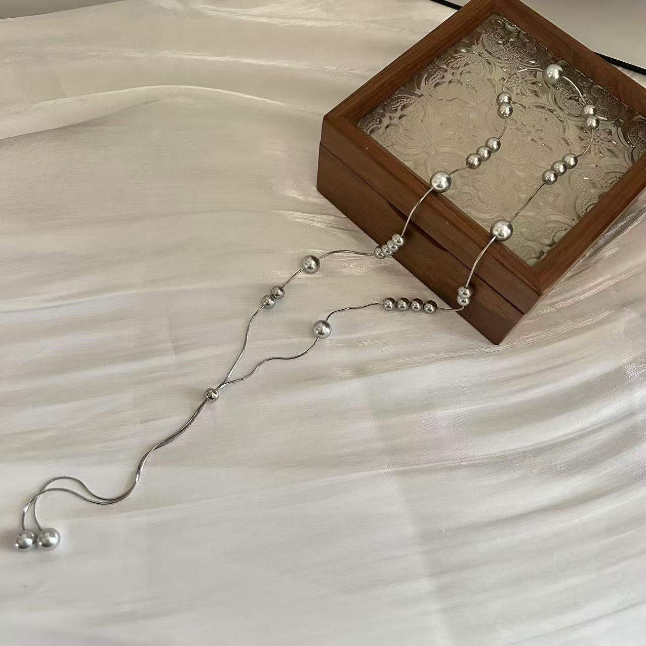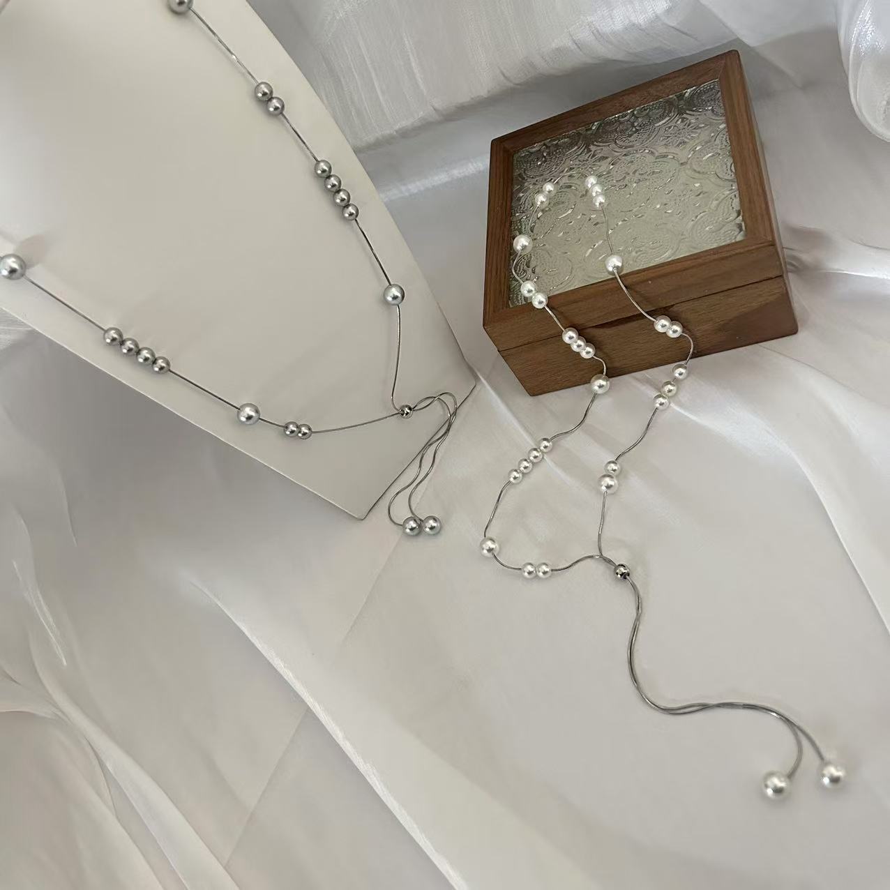 Diseño de nicho primavera y otoño sensación de alta gama cabello de bebé estrella perla ajustable borla multiuso collar cadena clavícula de acero de titanio
