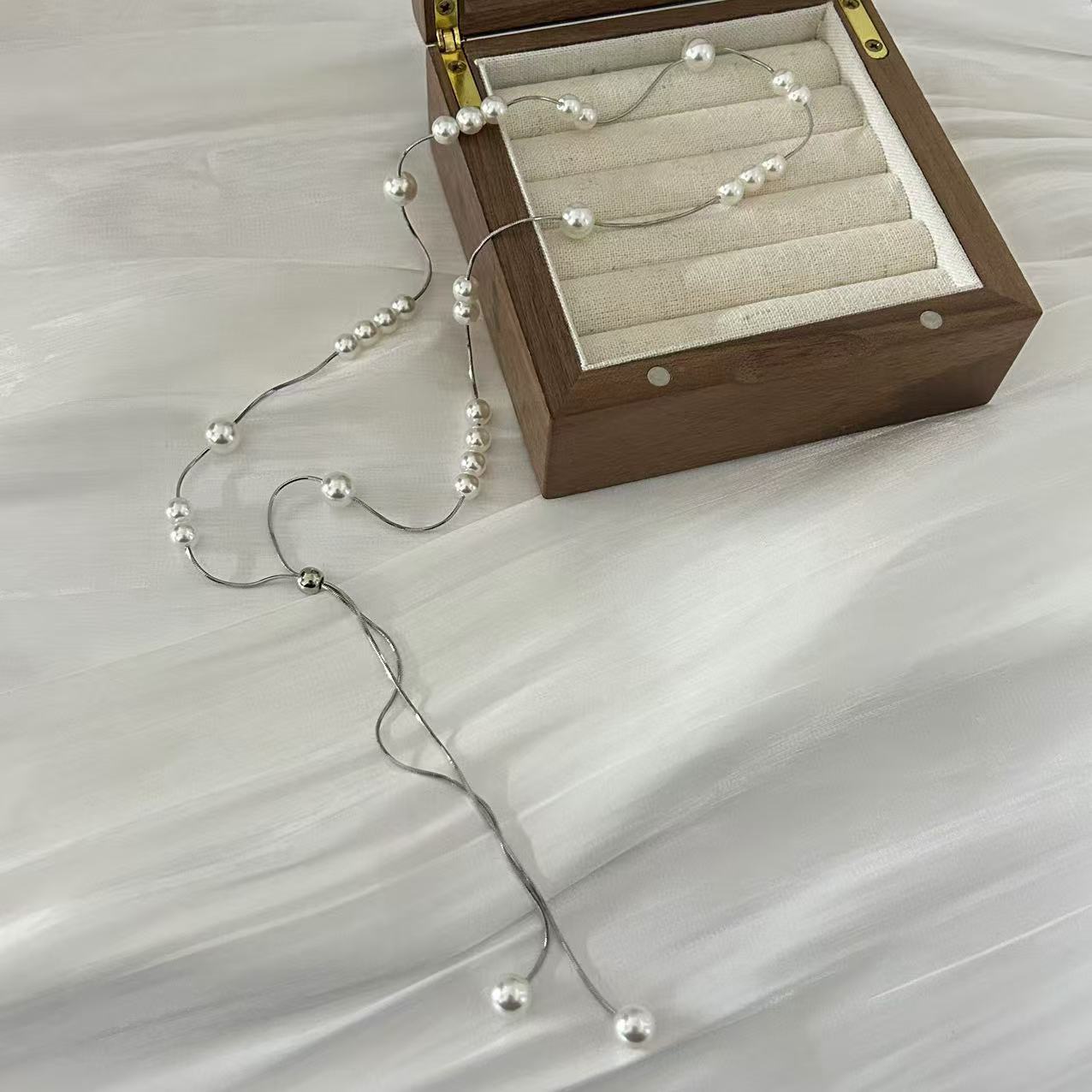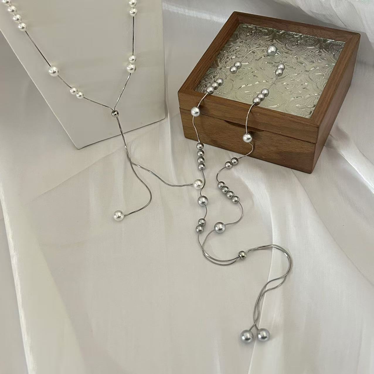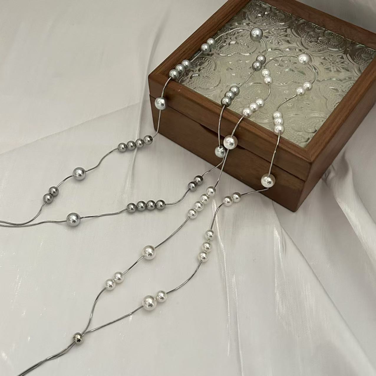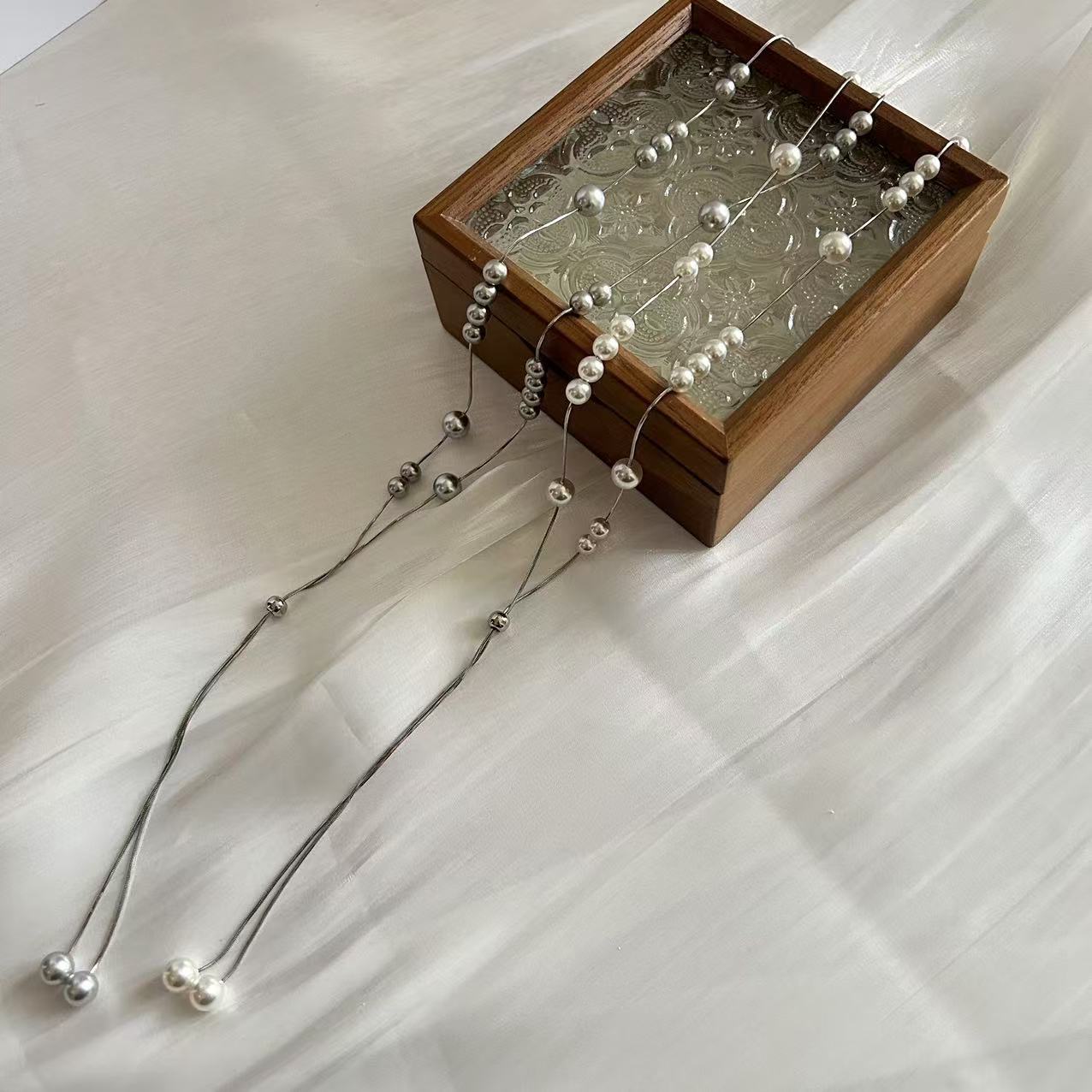 Diseño de nicho primavera y otoño sensación de alta gama cabello de bebé estrella perla ajustable borla multiuso collar cadena clavícula de acero de titanio