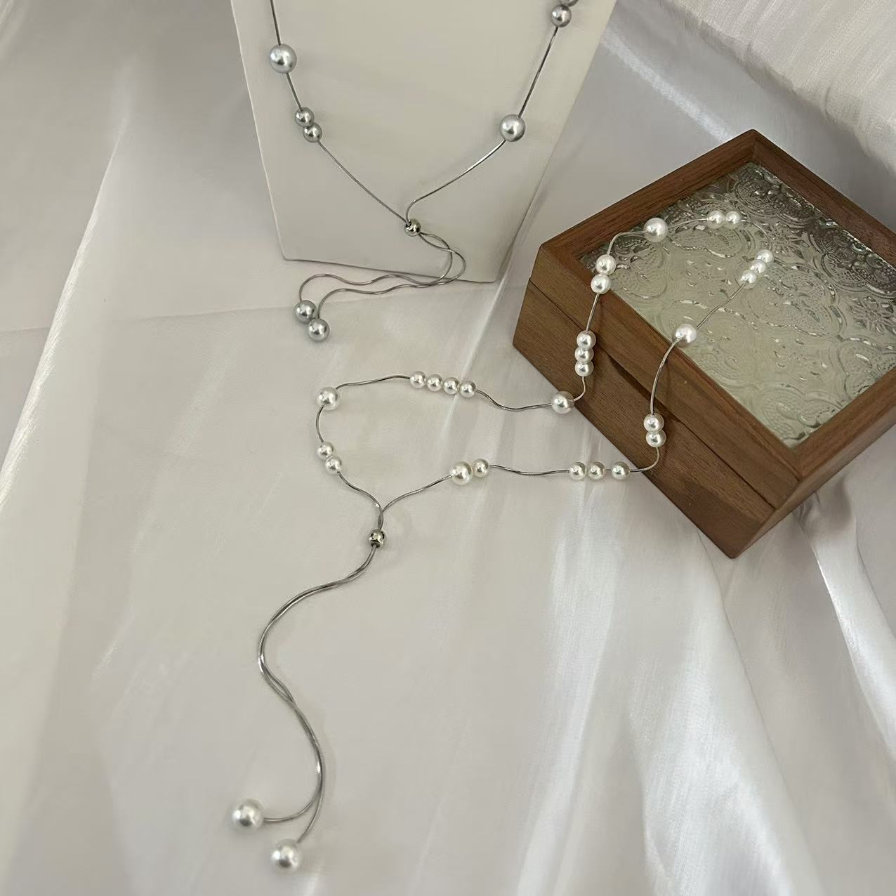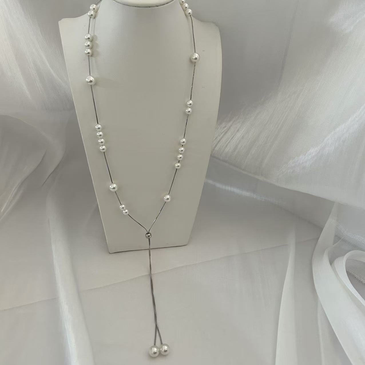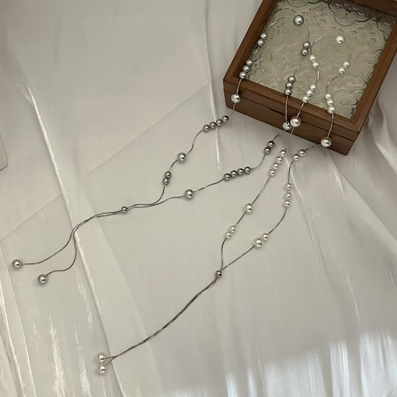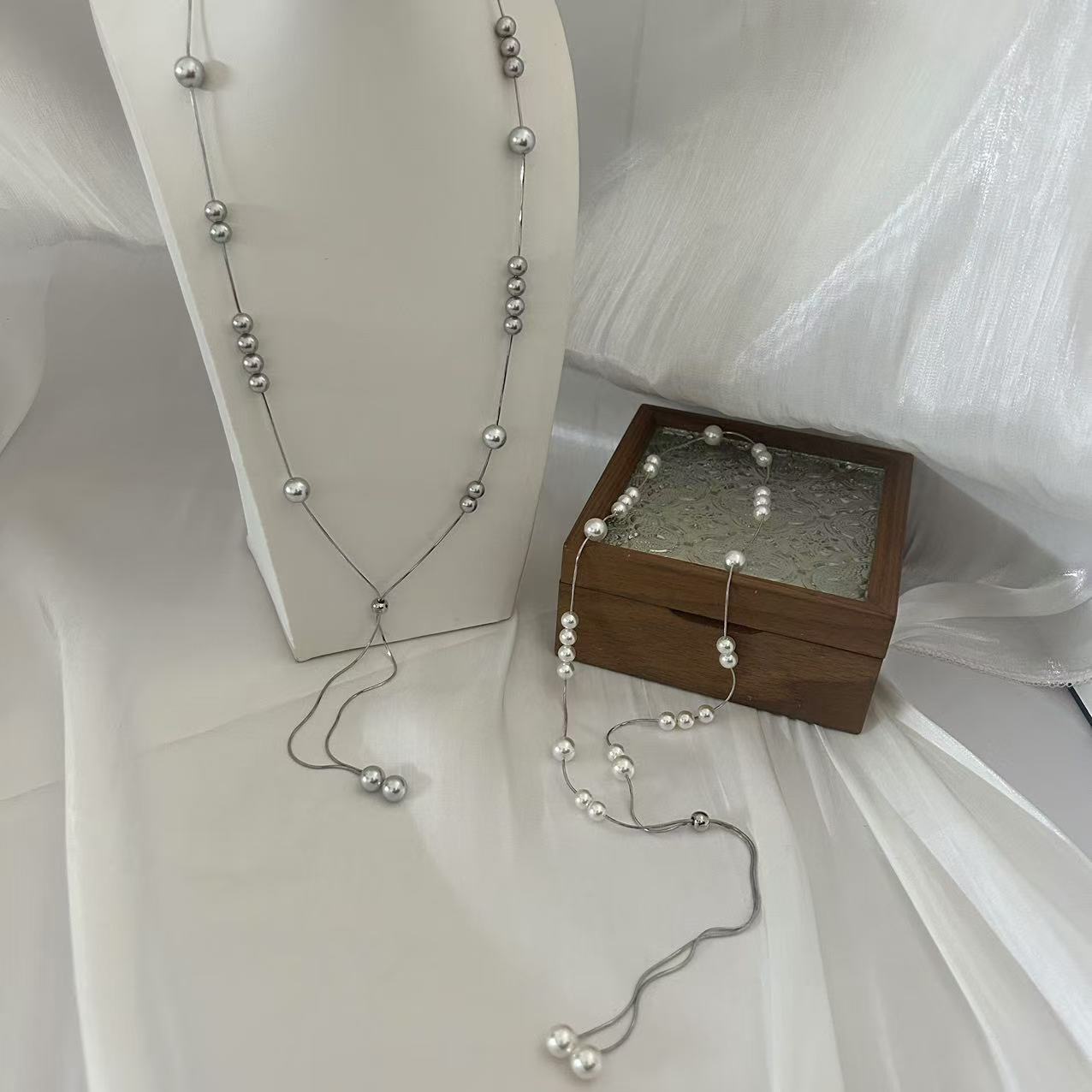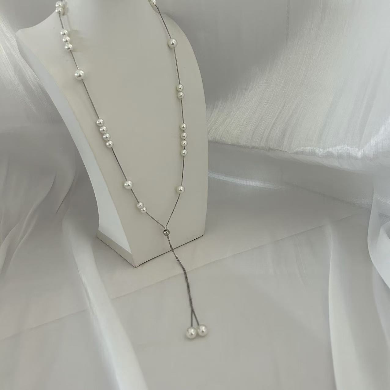 Diseño de nicho primavera y otoño sensación de alta gama cabello de bebé estrella perla ajustable borla multiuso collar cadena clavícula de acero de titanio
