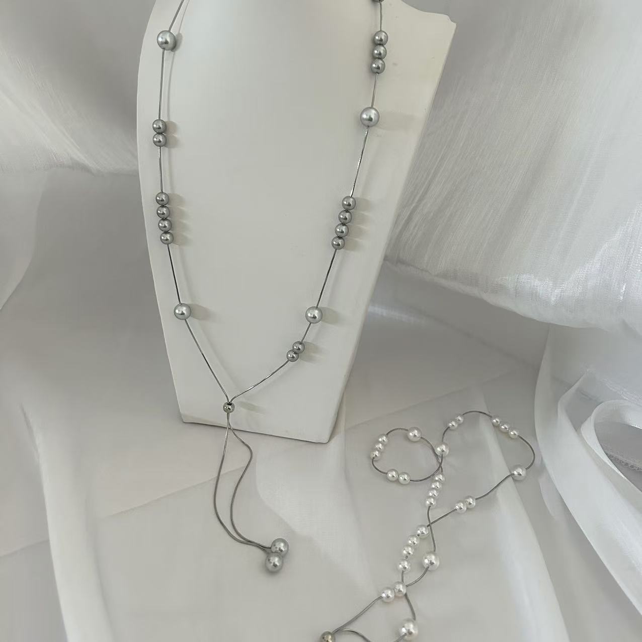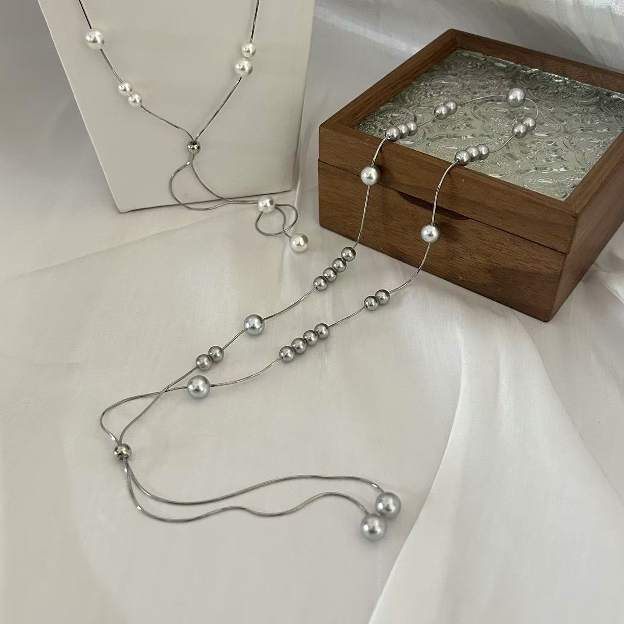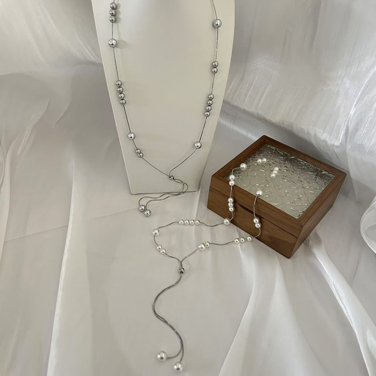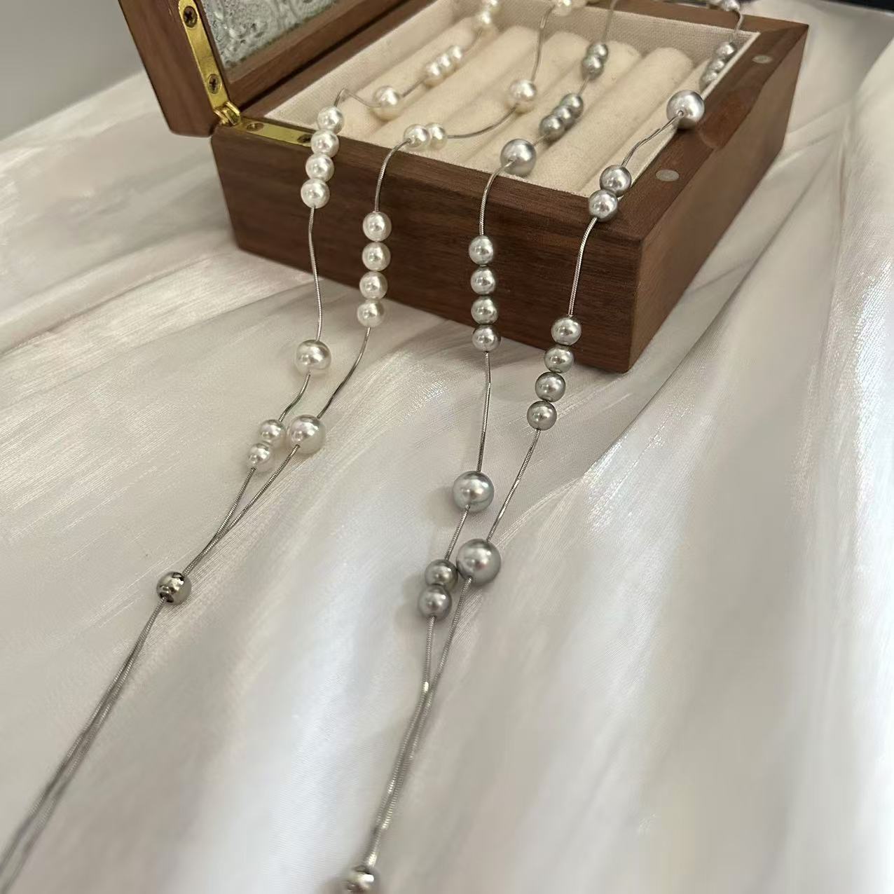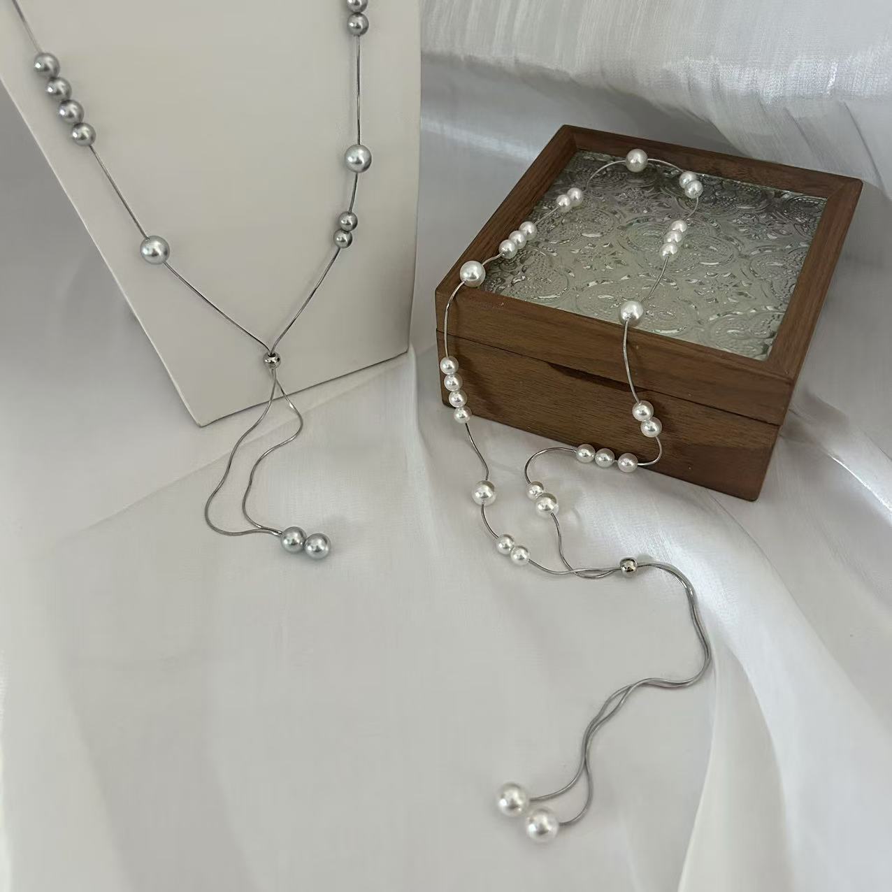 Diseño de nicho primavera y otoño sensación de alta gama cabello de bebé estrella perla ajustable borla multiuso collar cadena clavícula de acero de titanio