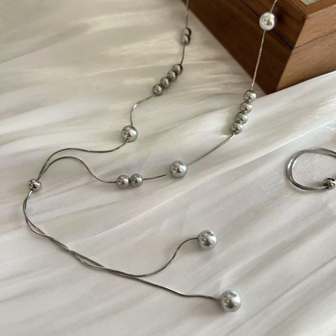 Shi Jia Pearl Ao White Titanium Steel Snake Bone Chain Baby's Pumple Star 76cm