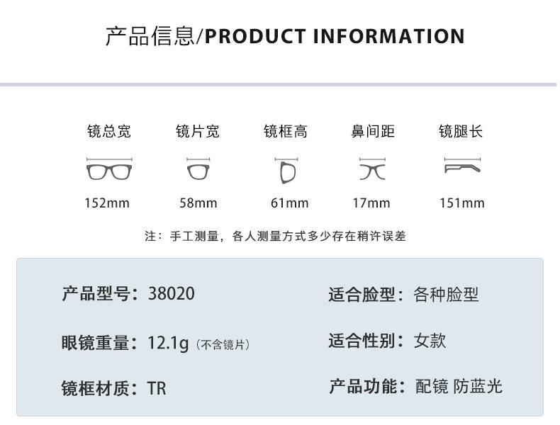 Gafas ultraligeras TR con montura negra, lisas y de gran tamaño, para miopía, antiazul, estilo coreano 38020